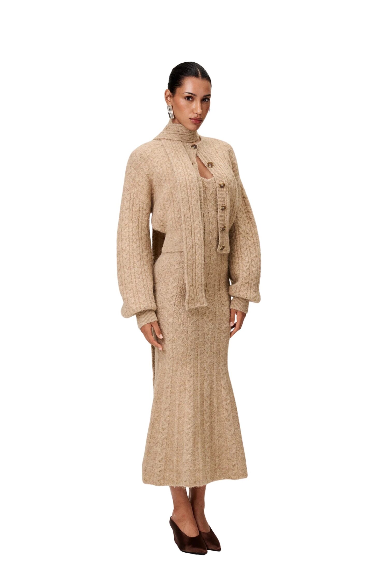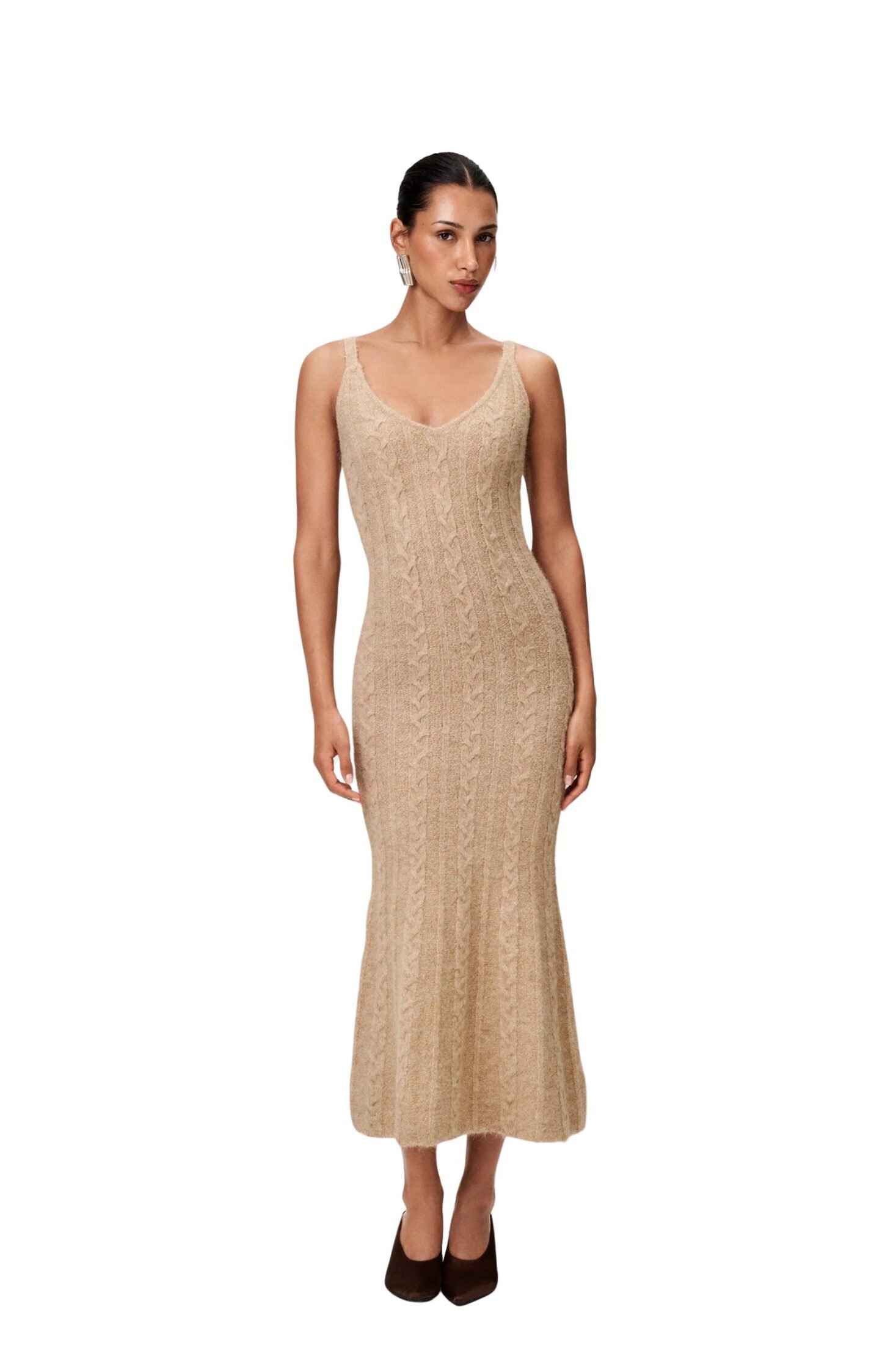 Kjole til dame fra Adoore. Elegant kjole designet for å fremheve figuren din. Med delikate singlet-stropper, en dyp V-hals og timeglass-passform. Det subtilt utsvingte skjørtet gir et snev av drama til denne minimalistiske maxikjolen. Fullfør antrekket med Merano Cardigan og Merano Scarf.