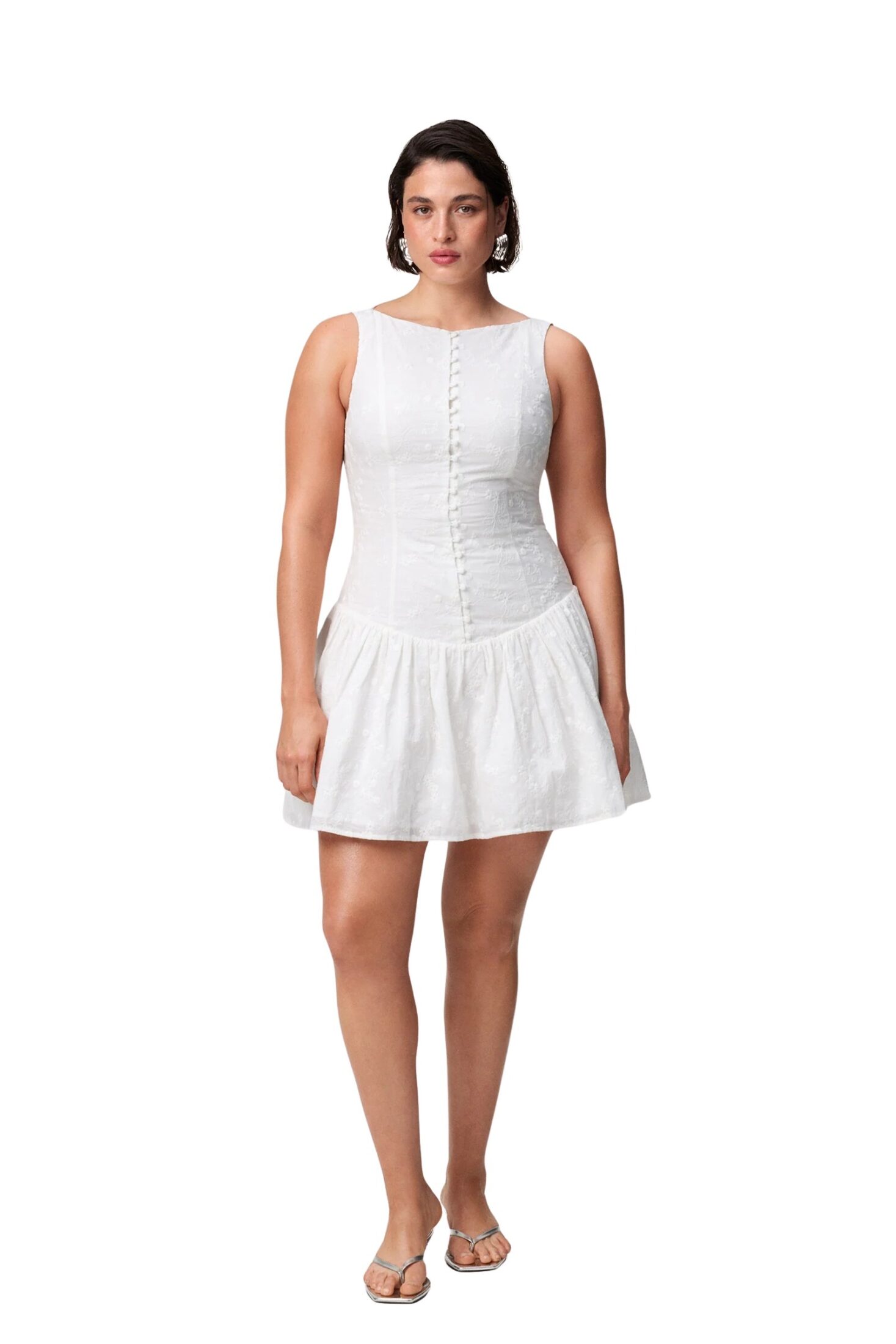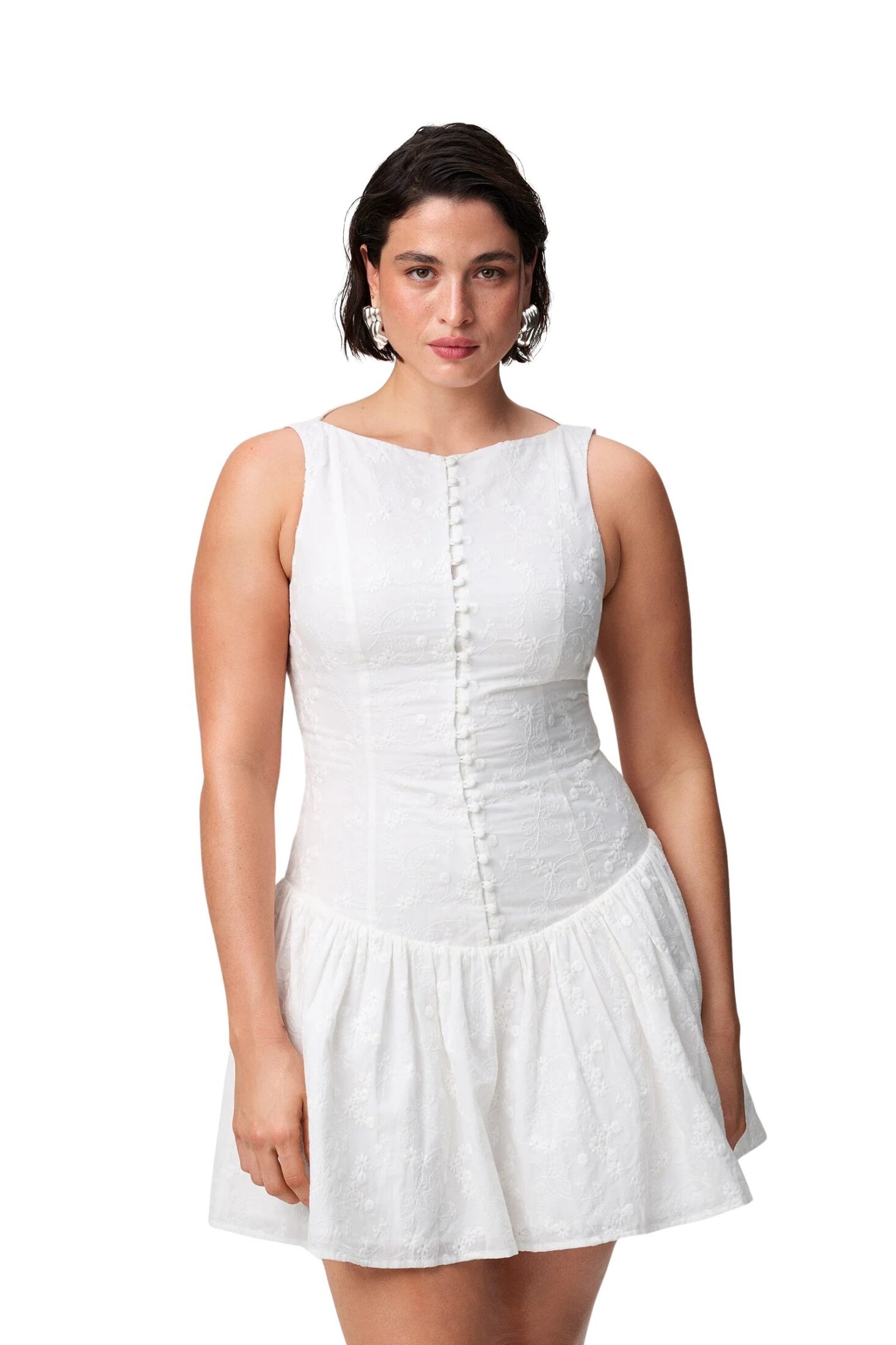 Kjole til dame fra Adoore i lett bomull med broderte detaljer. Sevilla Dress har en flatterende båthals og dekorative knapper i front. Den voluminøse miniskjørtet og den senkede midjesømmen gir et moderne og feminint uttrykk, perfekt til sommerlige anledninger.