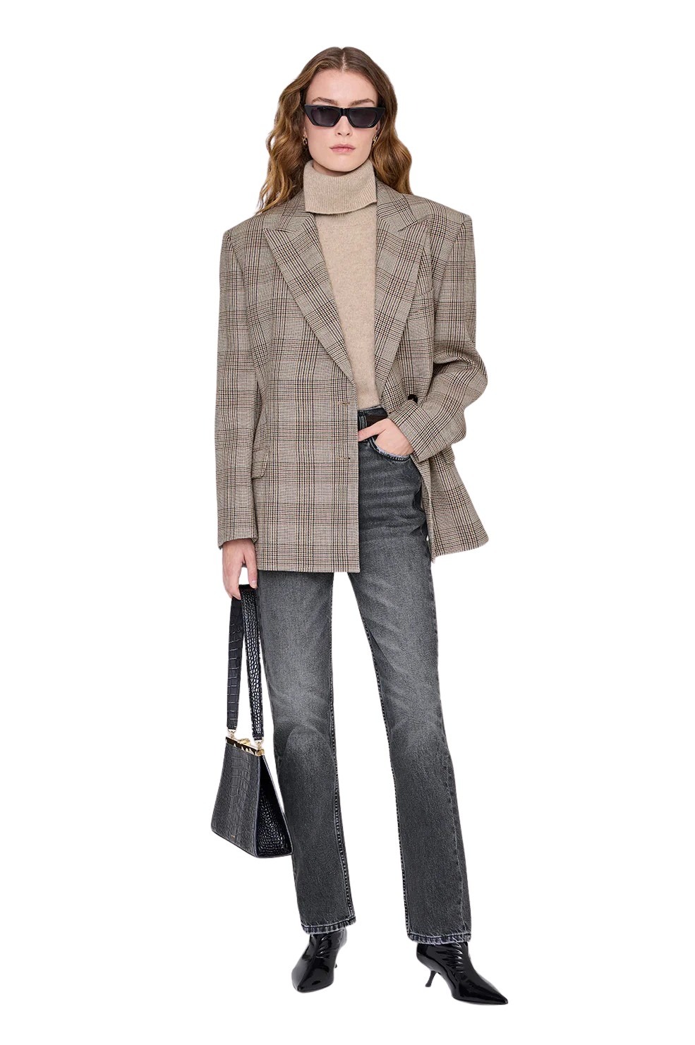 Blazer til dame fra Anine Bing i en mellomtykk ull med strukturert finish. Designet med innsvinget fasong, klassisk jakkeslag og skjult knappelukking for et rent og moderne uttrykk. En helfôret blazer med markerte skuldre og lange, rette linjer som er like fin til dressbukser som over jeans.