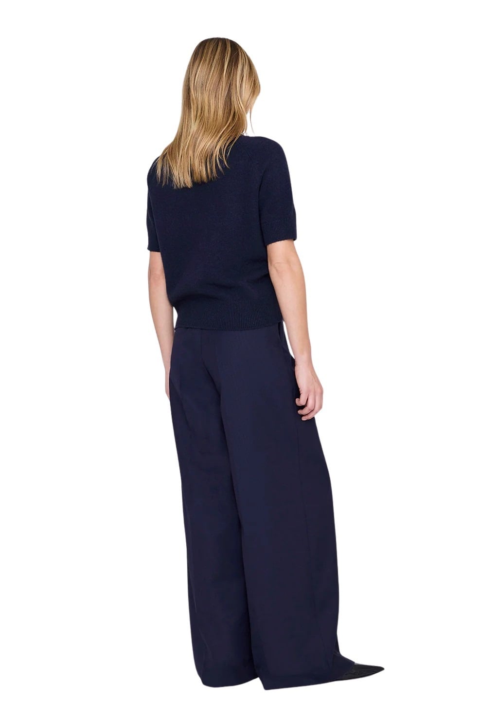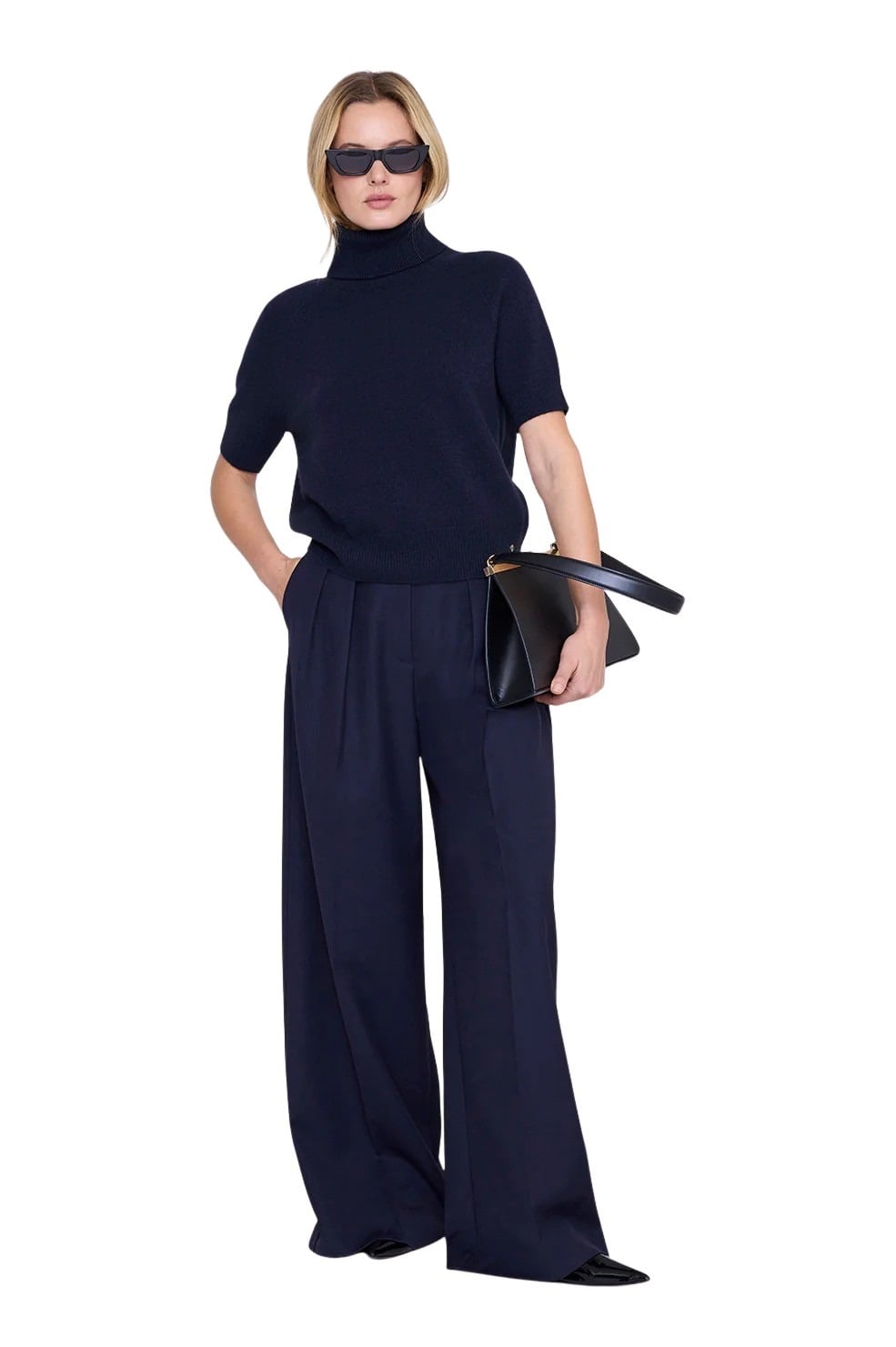 Genser til dame fra Anine Bing. En elegant og luksuriøs polotrøye i ultramyk, mellomtykk 100% kasjmir. Den dype midnattsblå fargen gir et sofistikert uttrykk, mens de korte ermene gjør den perfekt til både lag-på-lag og alene. Et tidløst plagg som kombinerer maksimal komfort med moderne stil.