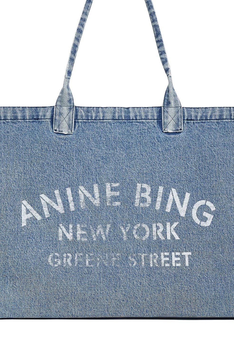 Tote bag til dame fra Anine Bing. En ufôret tote bag i bomullsdenim med silketrykt ANINE BING-logo i kontrasthvitt. En stilfull og praktisk veske som rommer alt du måtte trenge i hverdagen.