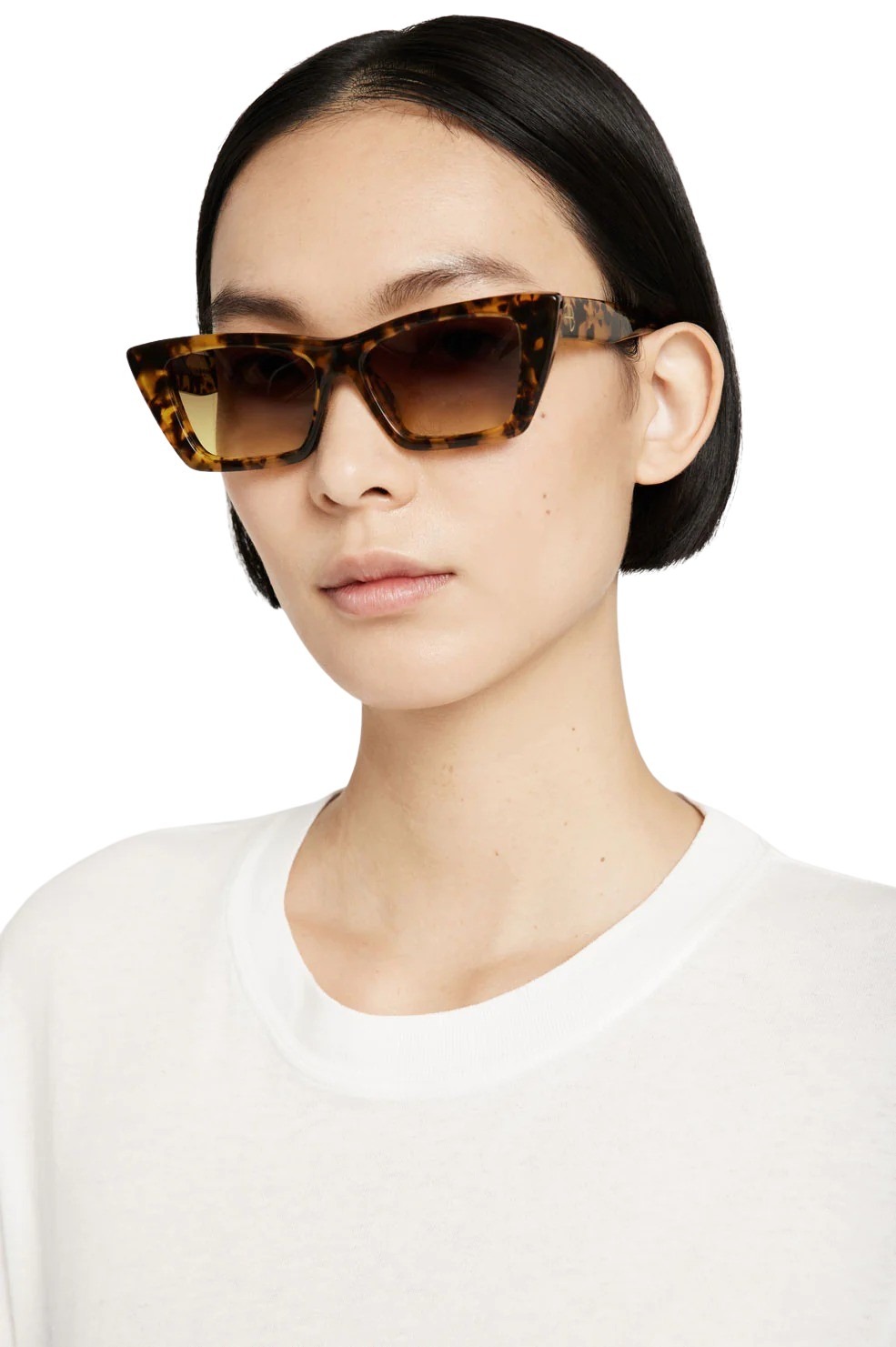 Levi Sunglasses fra ANINE BING har en kantete kattøye-form med aksent med et gullfarget ANINE BING-monogram på hver side. Solbrillene har en tortoise farge og brune glass.