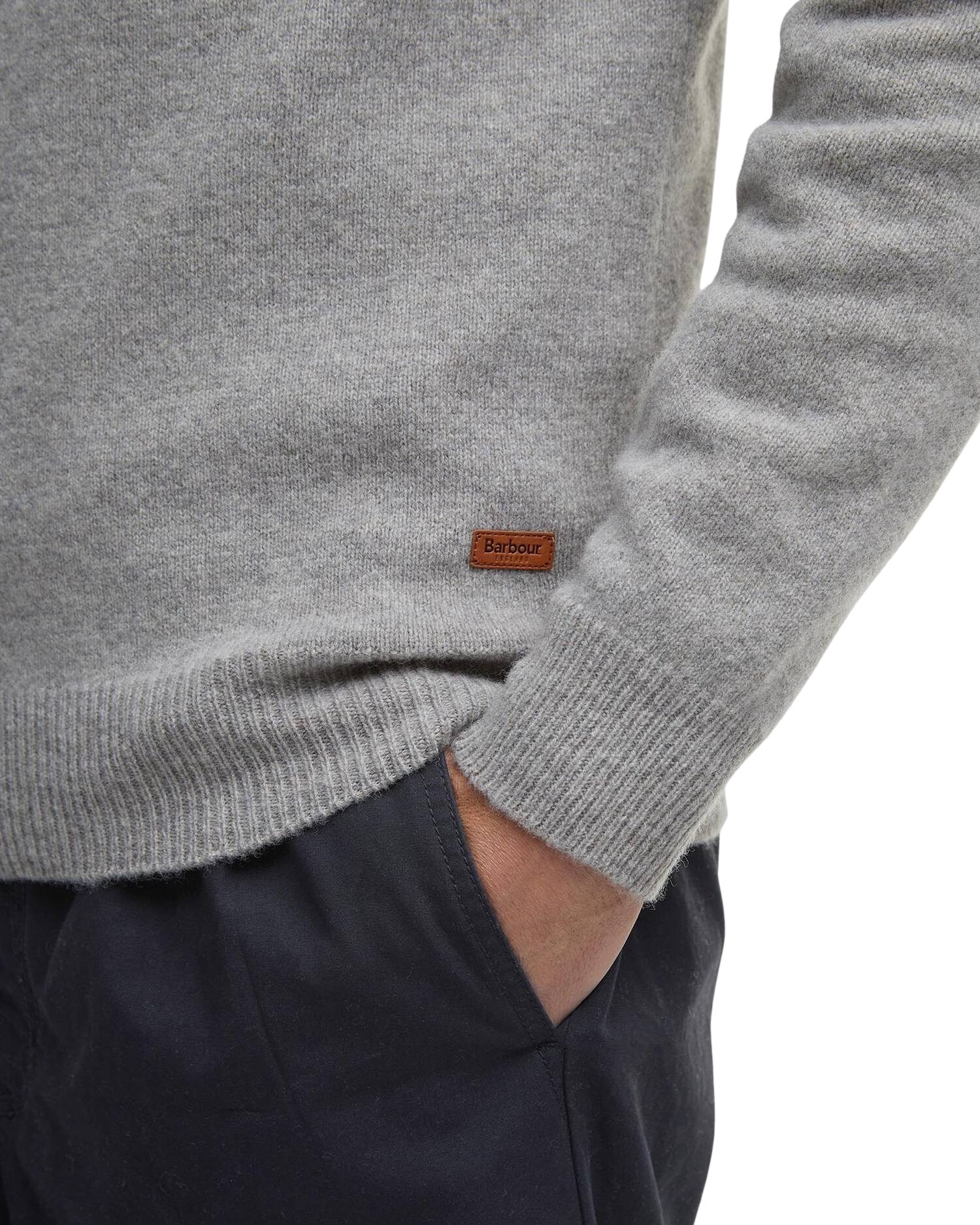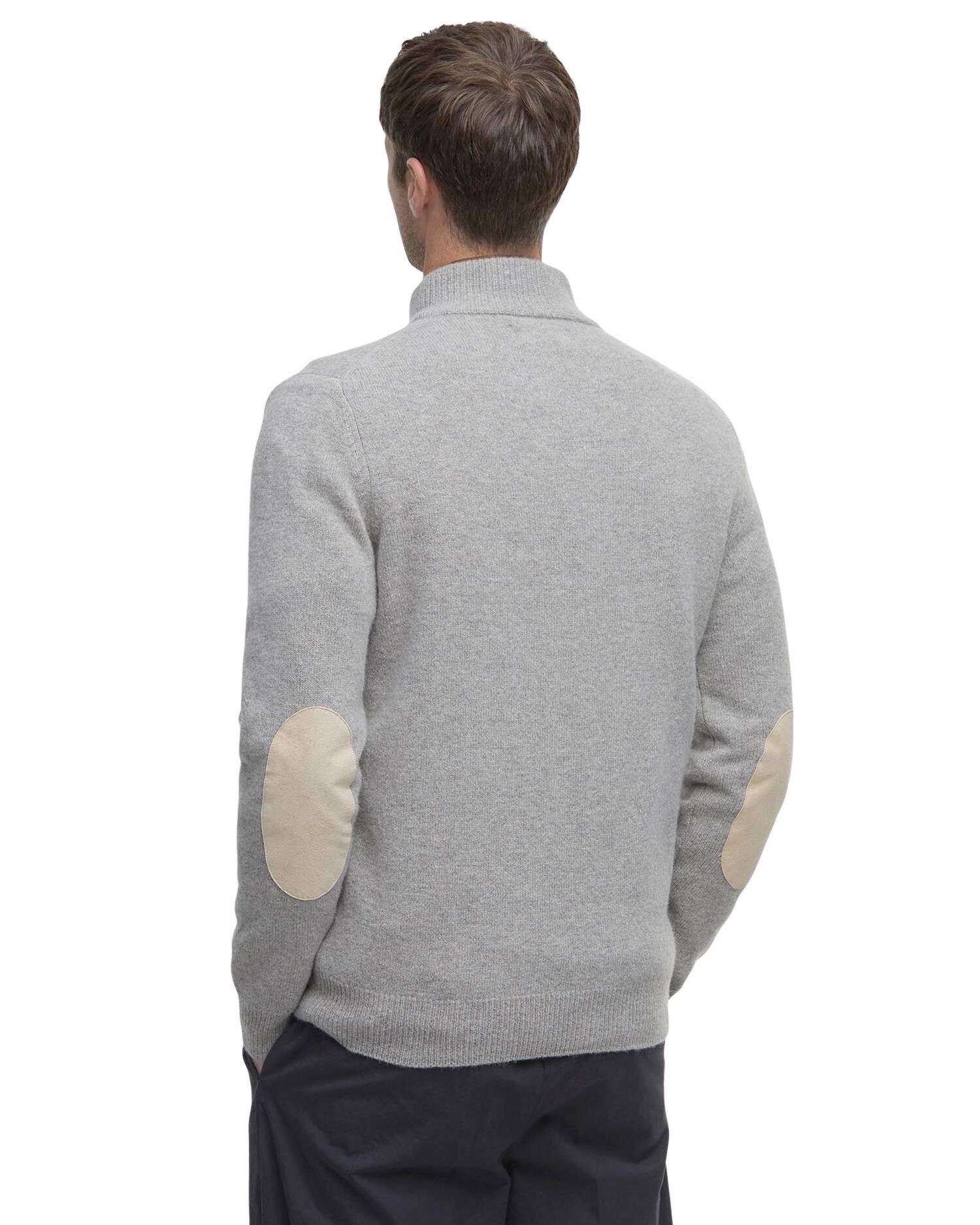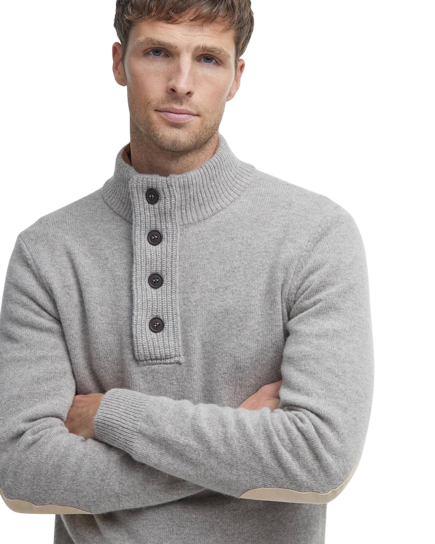 Half-zip til herre fra Barbour. Laget av 100% ull med skinnlapper på albuene. Genseren har høy hals med glidelås og knapper, og lange ermer som gjør den perfekt til høsten og vinteren.