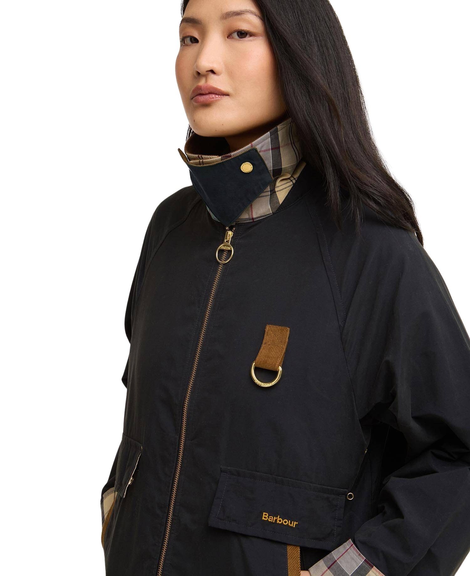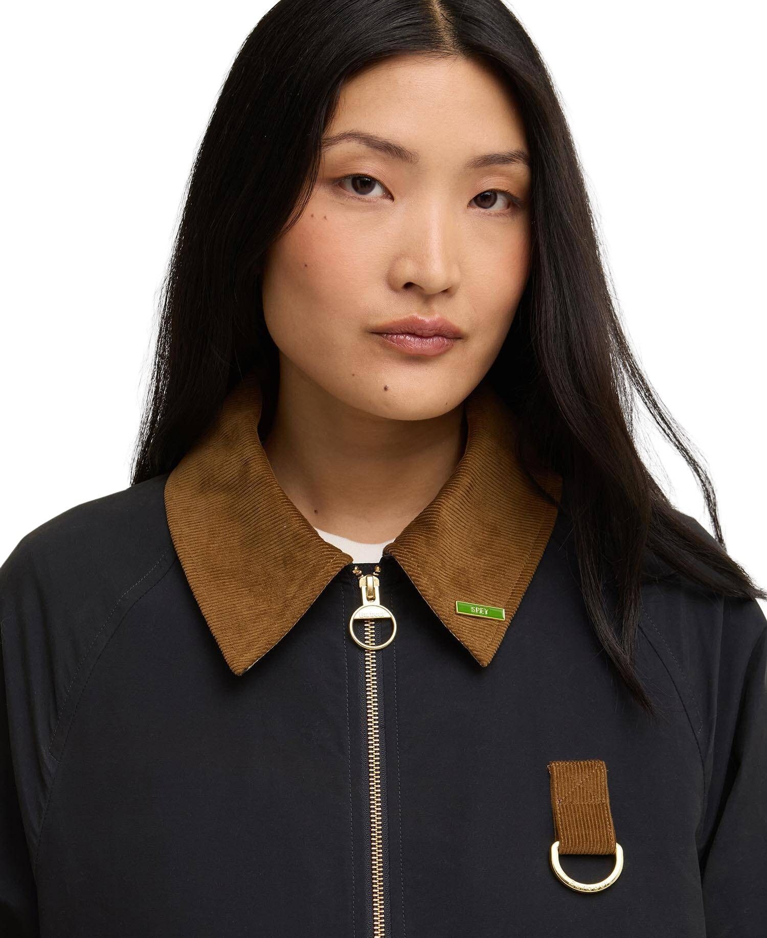 Jakke til dame fra Barbour med avslappet passform og vannavvisende finish. Klassisk Spey-silhuett med kordfløyelskrage, D-ring på brystet, praktiske lommer og halvmåneformet kragedesign som hyller Barbours tradisjonelle stil.