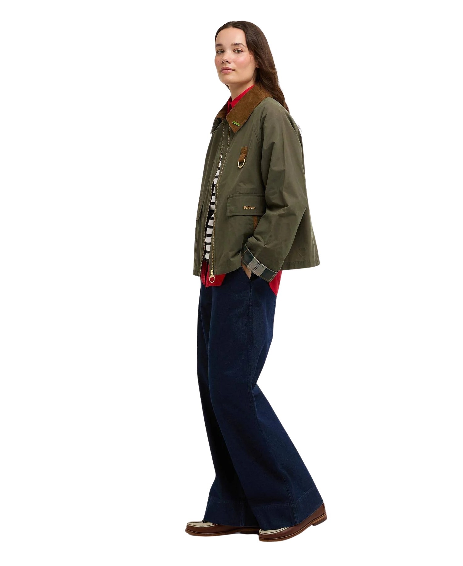 Jakke til dame fra Barbour med avslappet passform og vannavvisende finish. Klassisk Spey-silhuett med kordfløyelskrage, D-ring på brystet, praktiske lommer og halvmåneformet kragedesign som hyller Barbours tradisjonelle stil.
