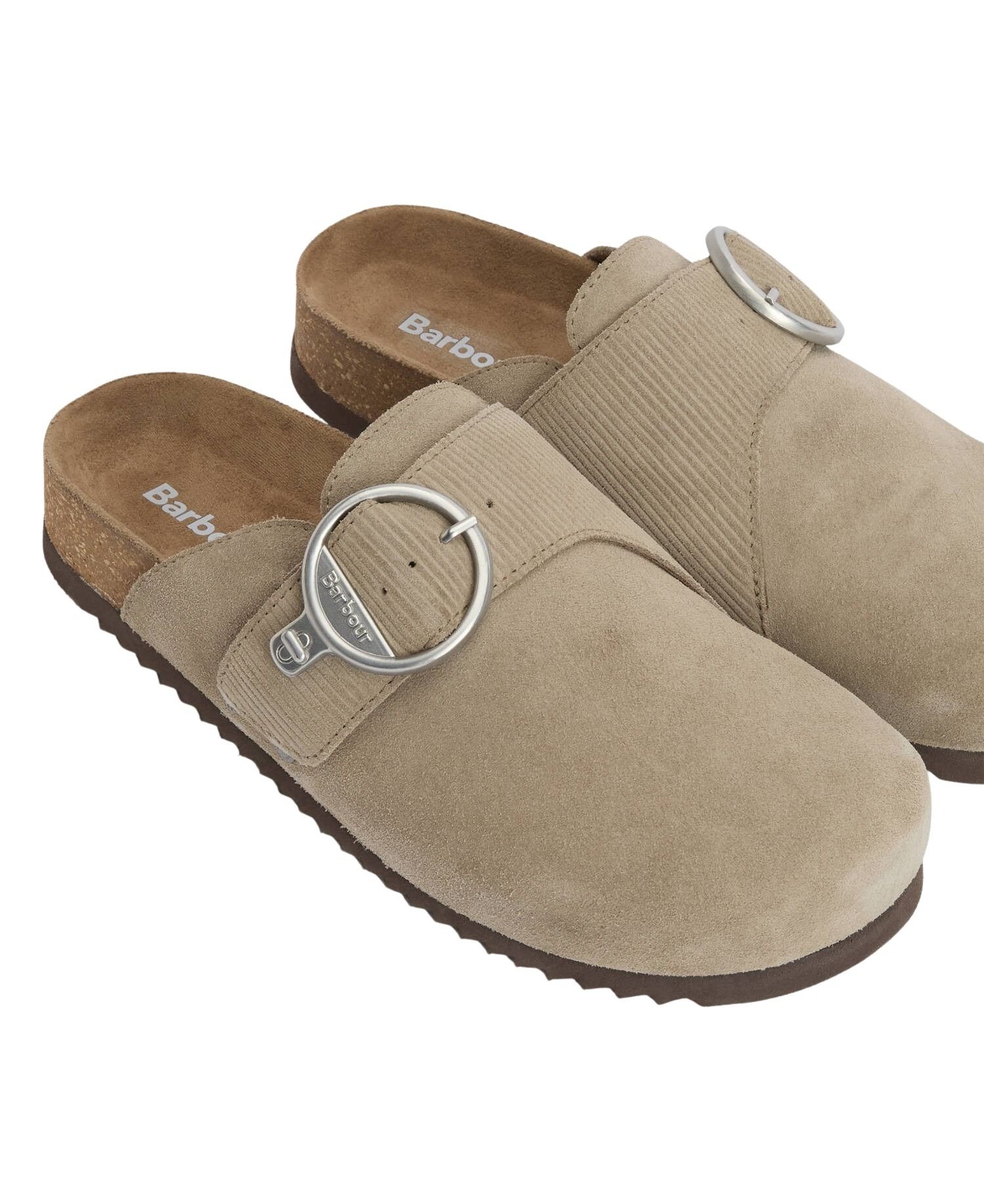 Sandaler til dame fra Barbour i semsket skinn med lukket tå og karakteristiske detaljer som ring-glidelås og kordstropp inspirert av merkets ikoniske voksede jakker. Komfortabel korkfotseng og kraftig såle gir stil og støtte i hverdagen.