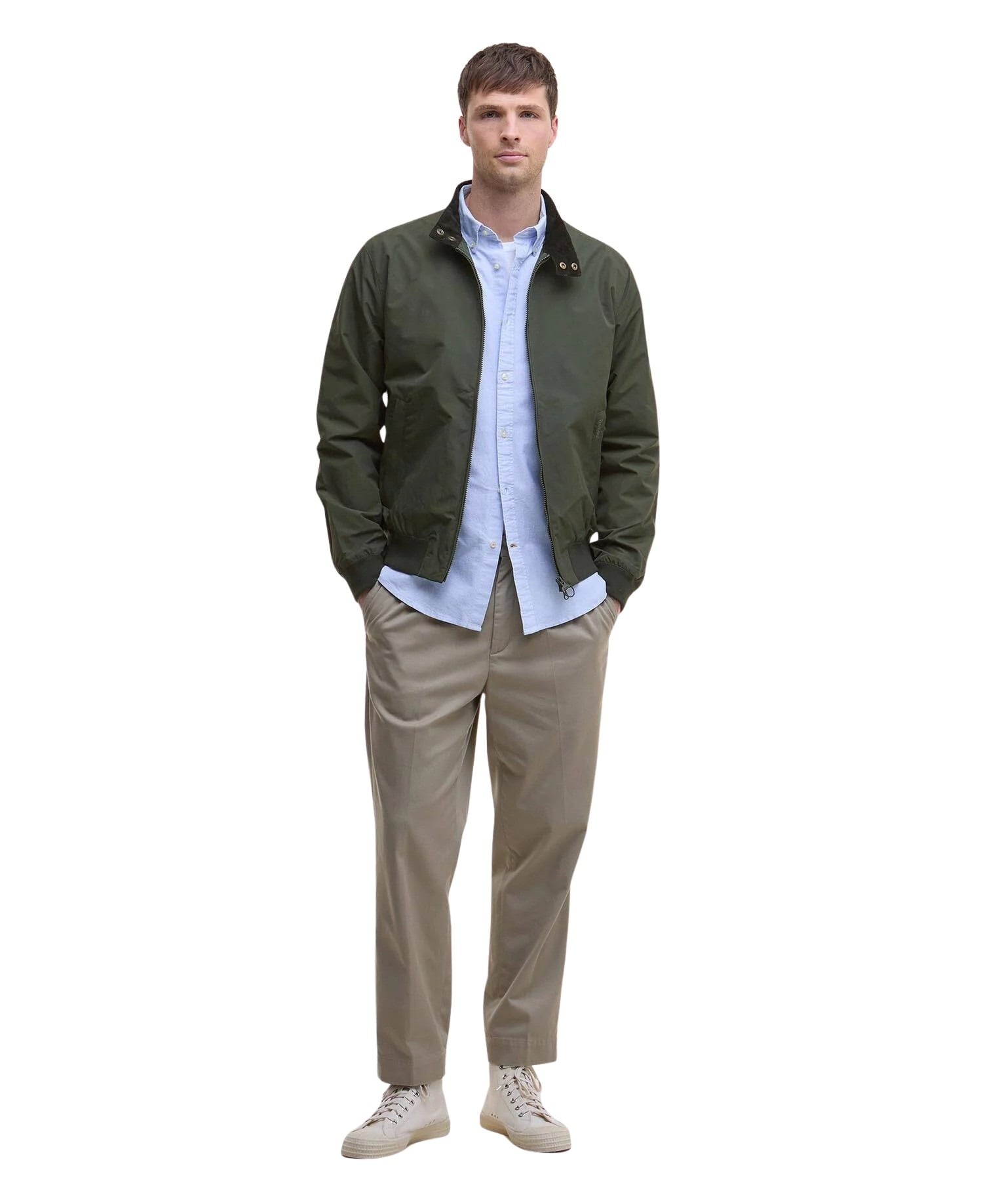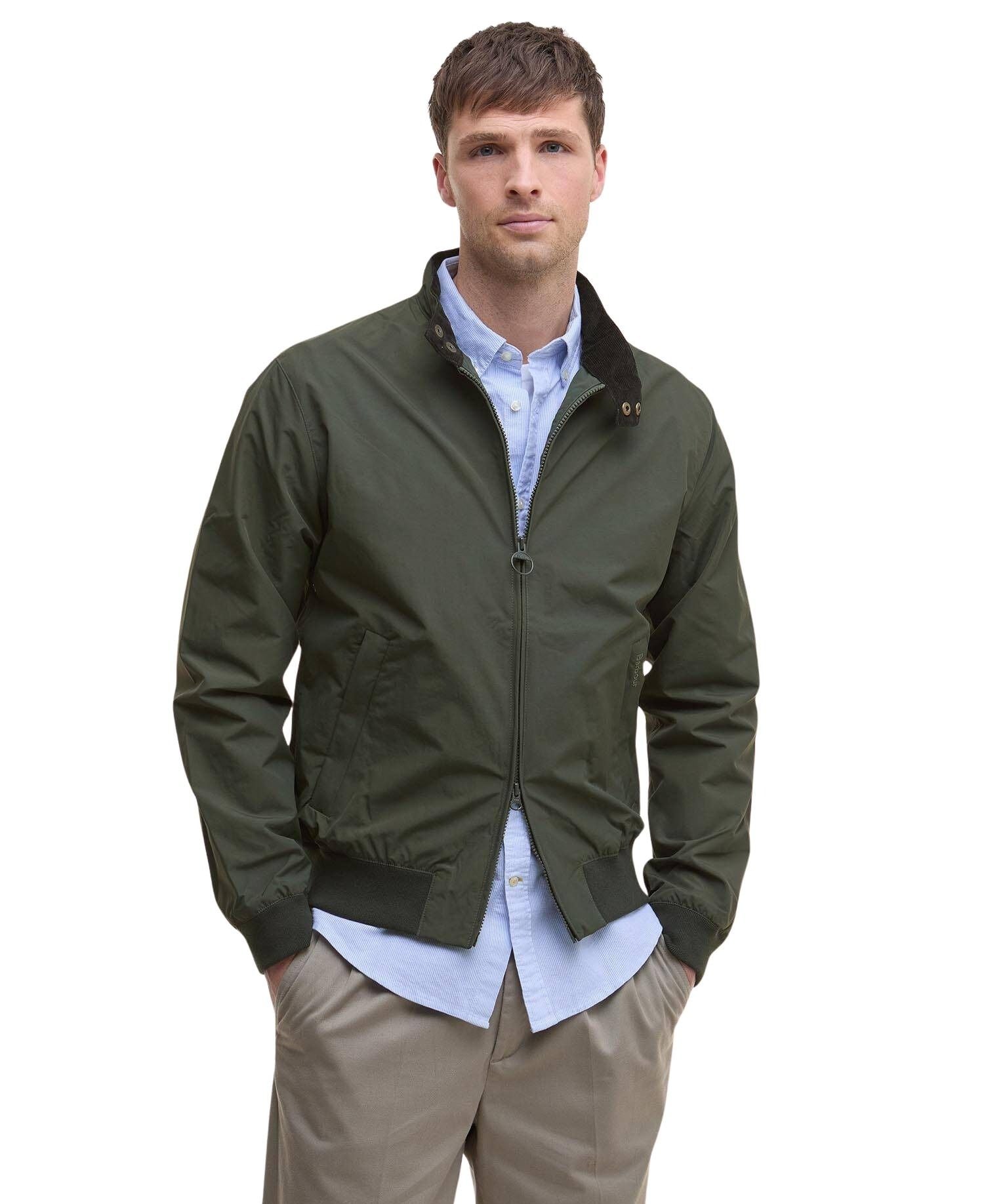 Jakke til herre fra Barbour i lett nylon med vannbestandig belegg. Jakken er inspirert av deres ikoniske Harrington-jakke og har enkle detaljer, samt deres klassiske tartanfôr i stor skala.