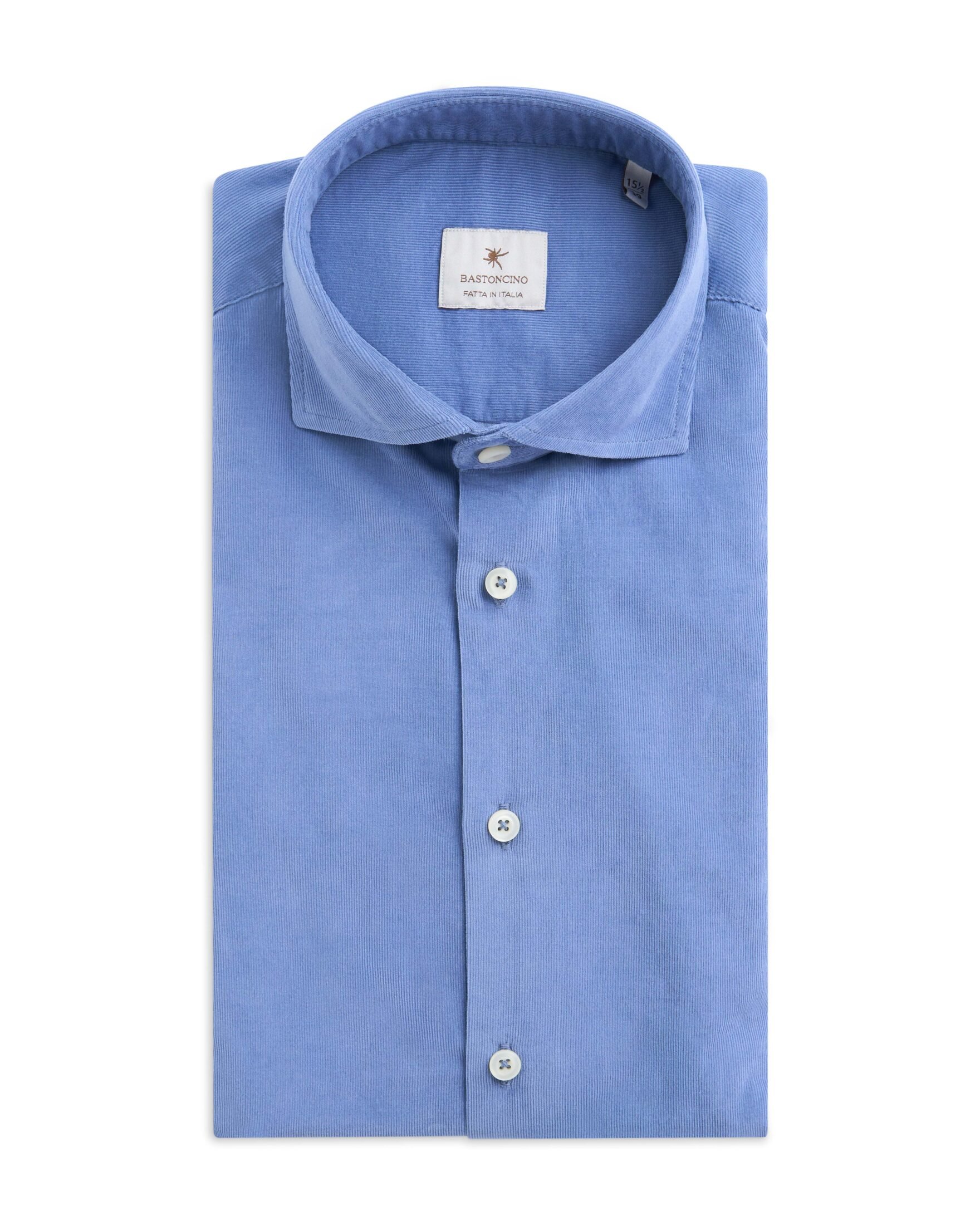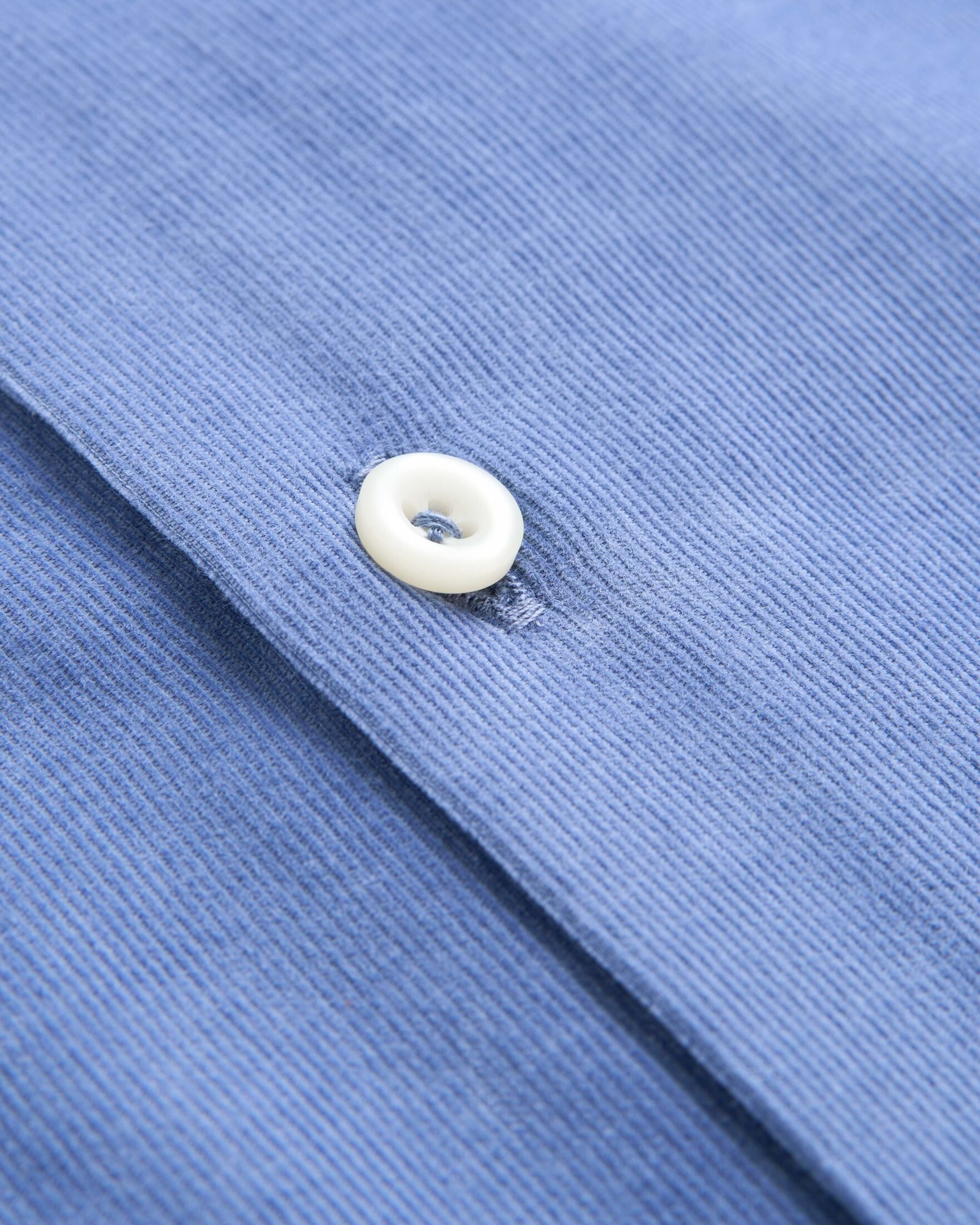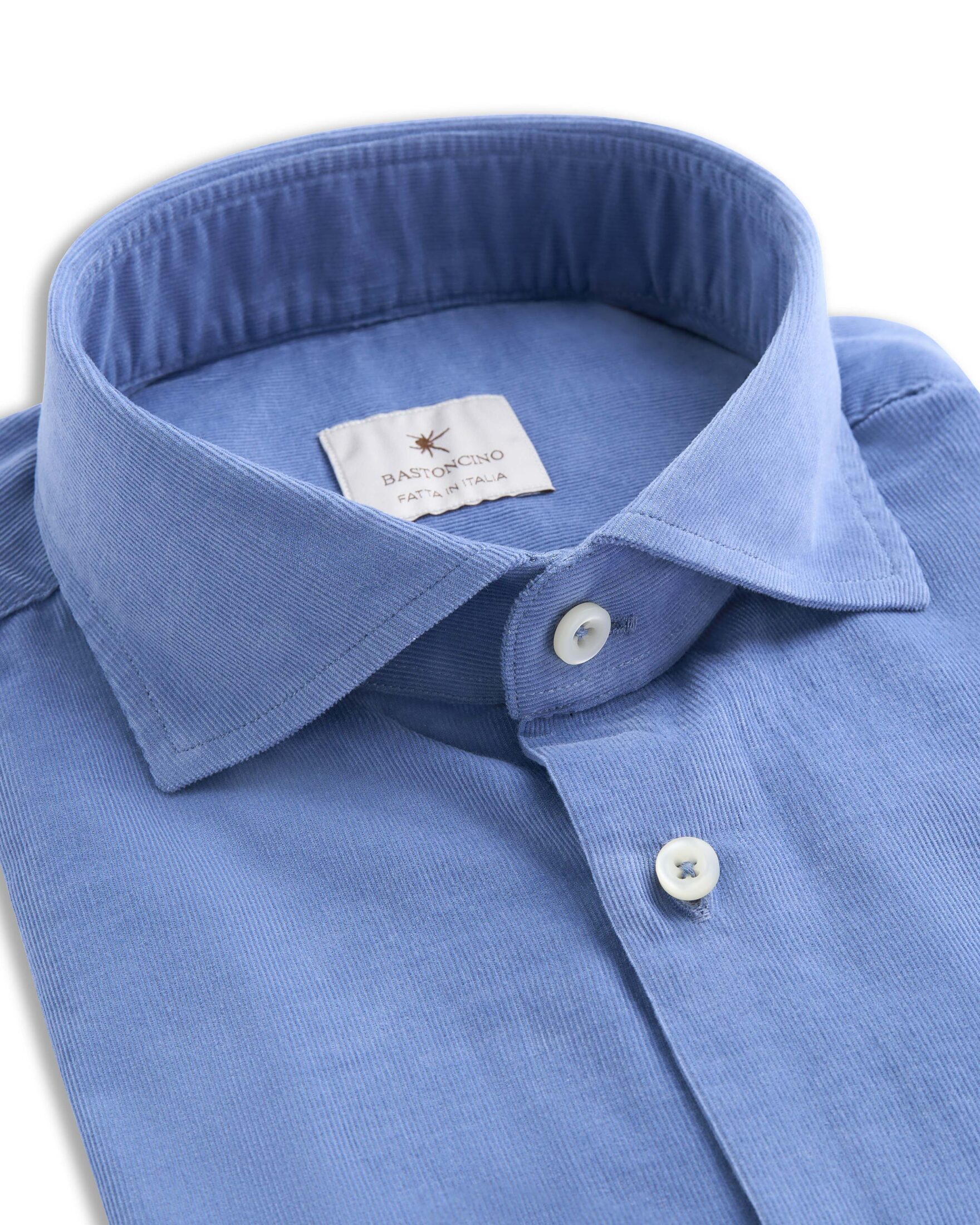 Eksklusiv kordfløyelskjorte til herre fra italienske Bastoncino. Laget i myk bomullskord, som gir en behagelig og luksuriøs følelse mot huden. Den kalde blåtonen gir et sofistikert uttrykk og passer like godt til jeans som til dressbukser. Med klassisk krage, perlemorsknapper og et tidløst snitt er dette en allsidig skjorte som løfter både hverdags- og festantrekket.