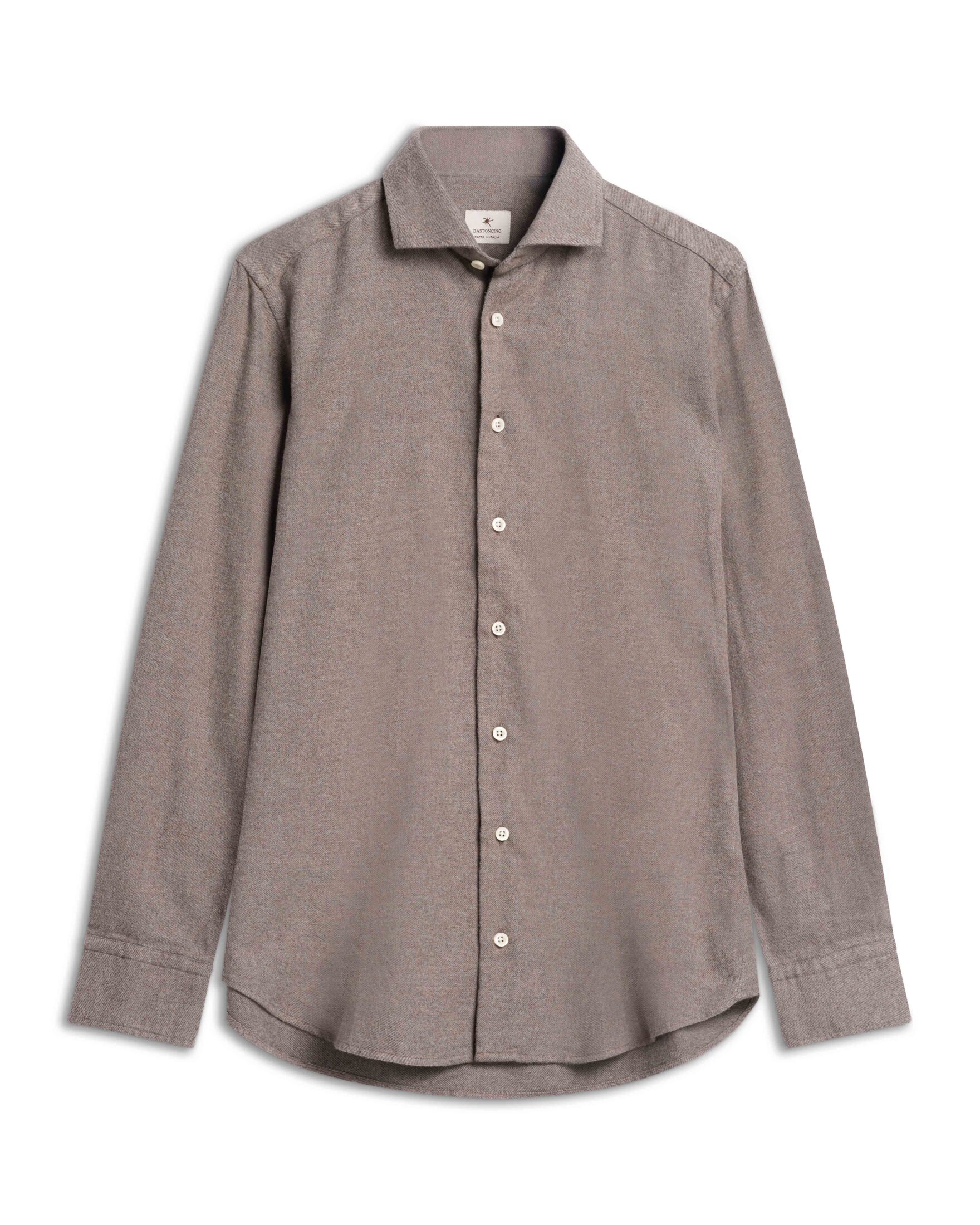 Flanellskjorte til herre fra Bastoncino. Laget i 100% myk bomull som gir en lun og behagelig følelse. Den dempede bruntonen og klassiske fasongen gjør skjorten både elegant og allsidig. Perfekt valg for en sofistikert, men avslappet stil.