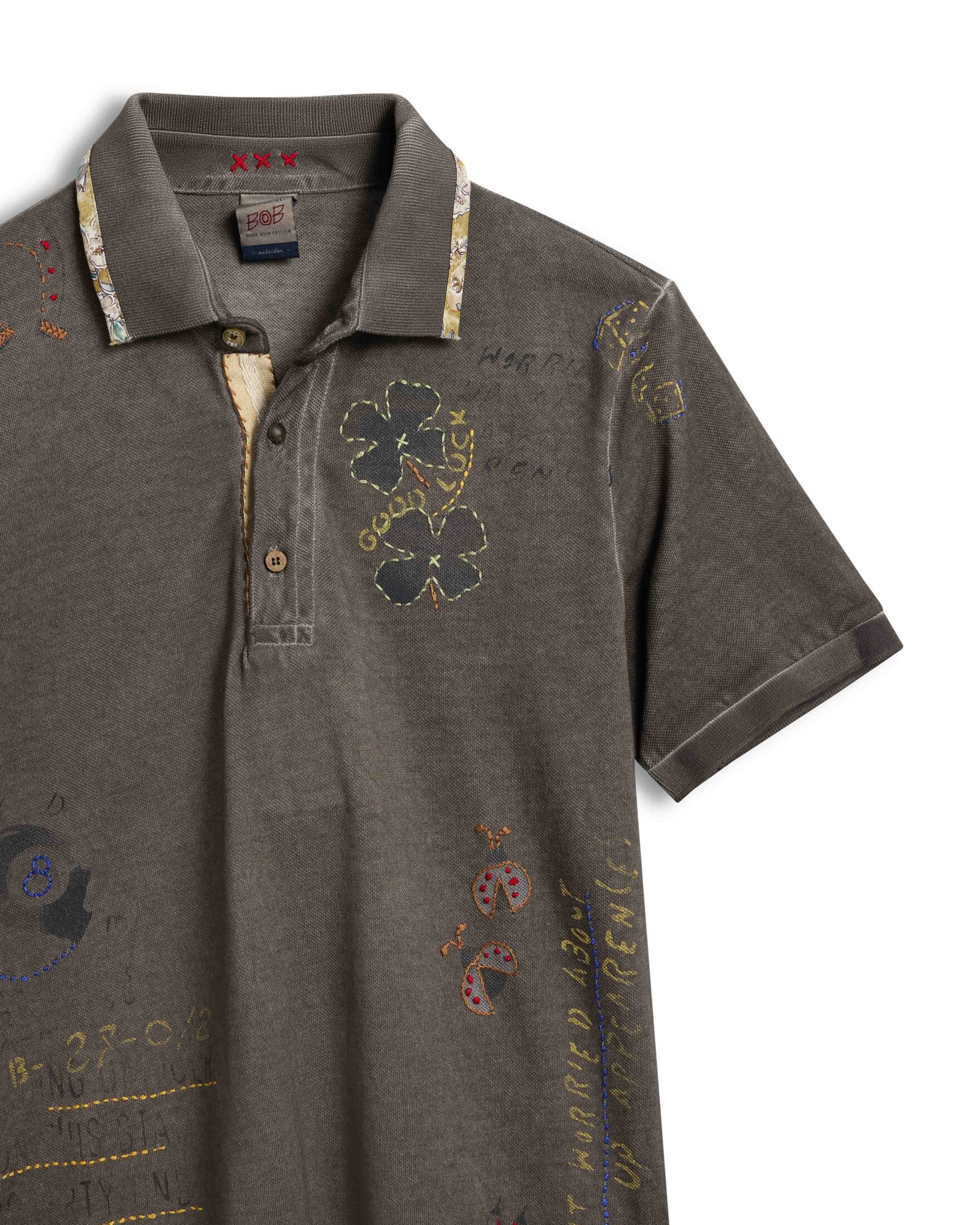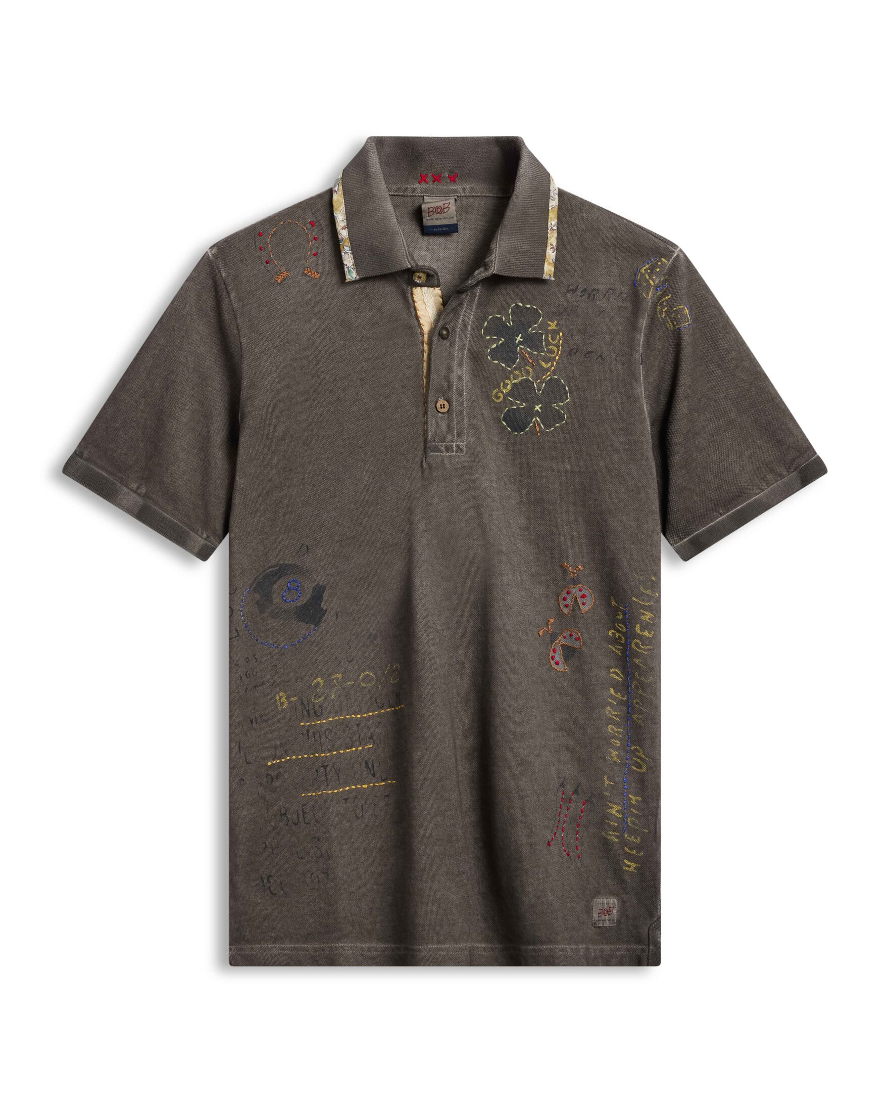 Piqué til herre fra BOB. Laget av myk bomull som gir en komfortabel og behagelig passform. Den har en vasket brun tone kombinert med broderte og malte detaljer som gir et kunstnerisk og vintage-inspirert uttrykk. Et karakterfullt plagg som løfter en enkel jeans eller chinos med et personlig preg.
