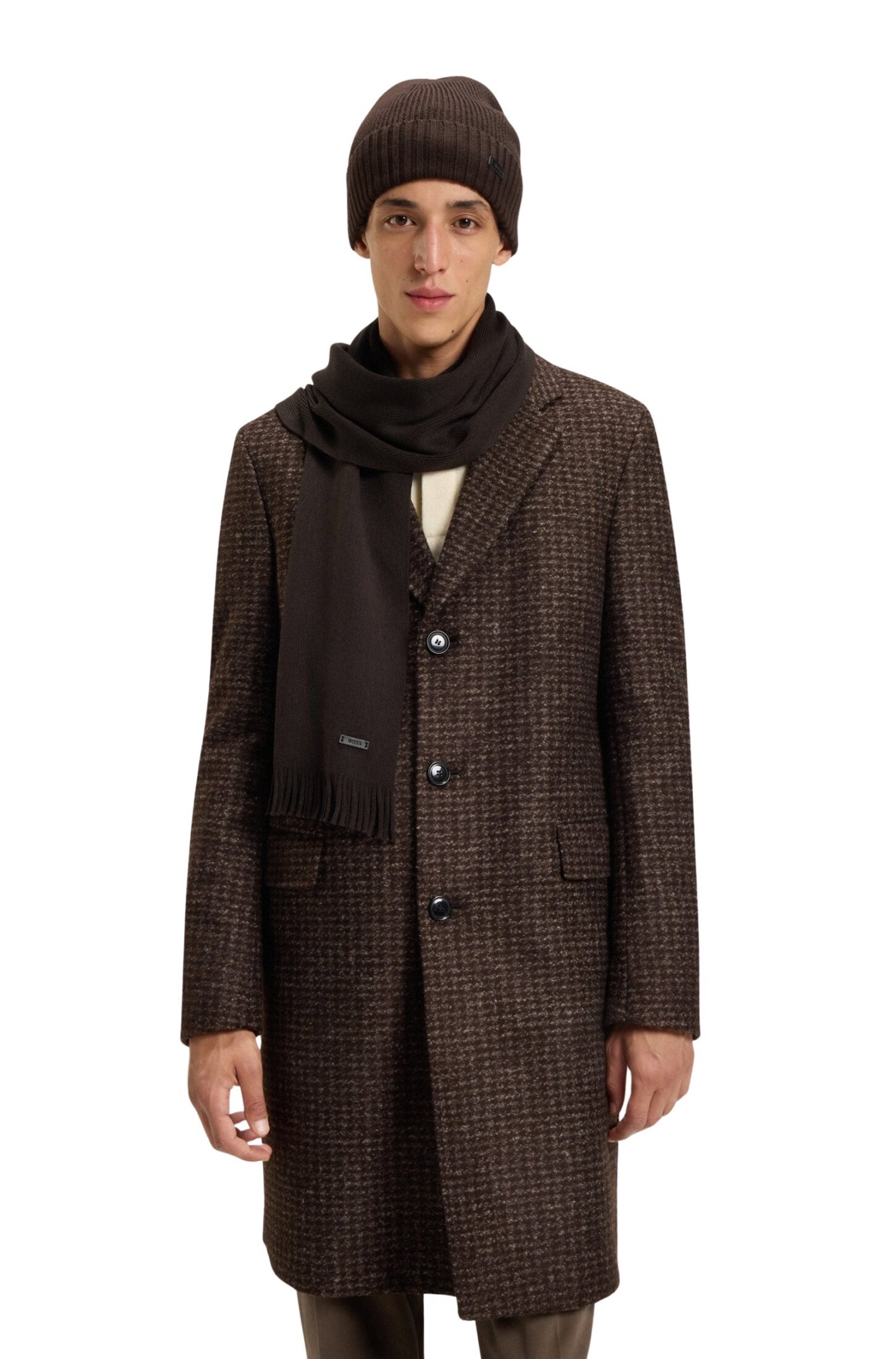 Lue til herre fra Boss. Strikket i myk, varm ny ull som gir både komfort og kvalitet. Den har en brettet kant med en subtil logo-patch i skinn som tilfører et eksklusivt preg. Et tidløst tilbehør som passer perfekt til både formelle og avslappede vinterantrekk.