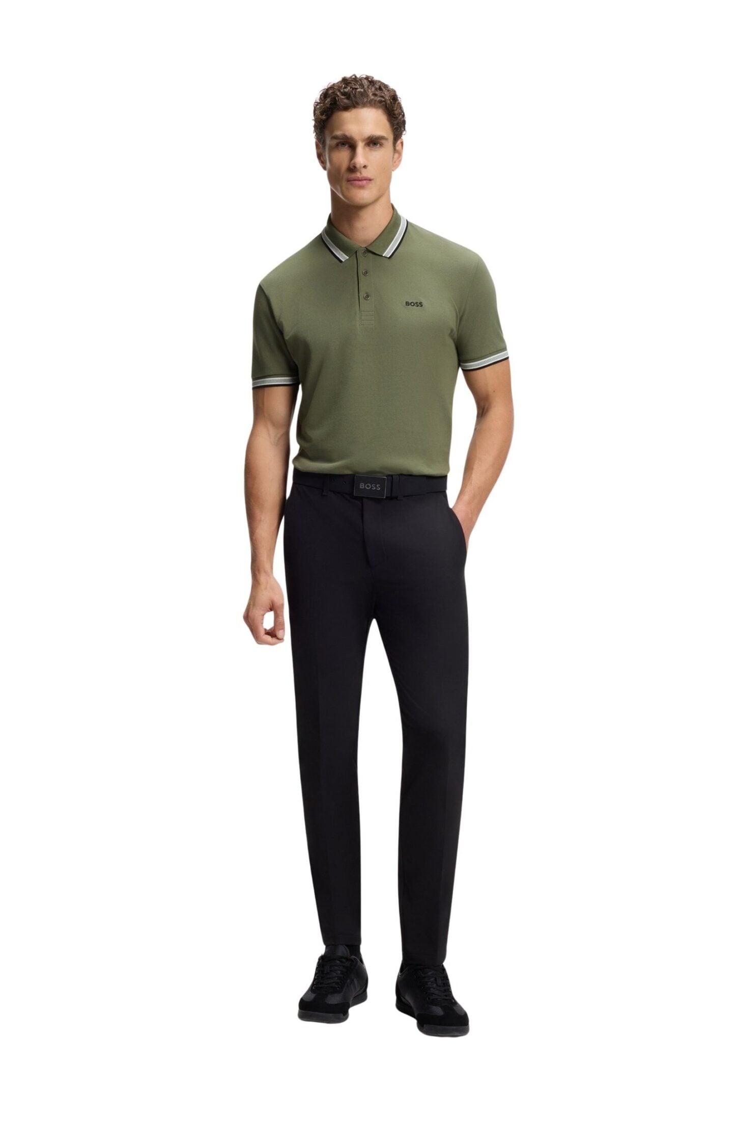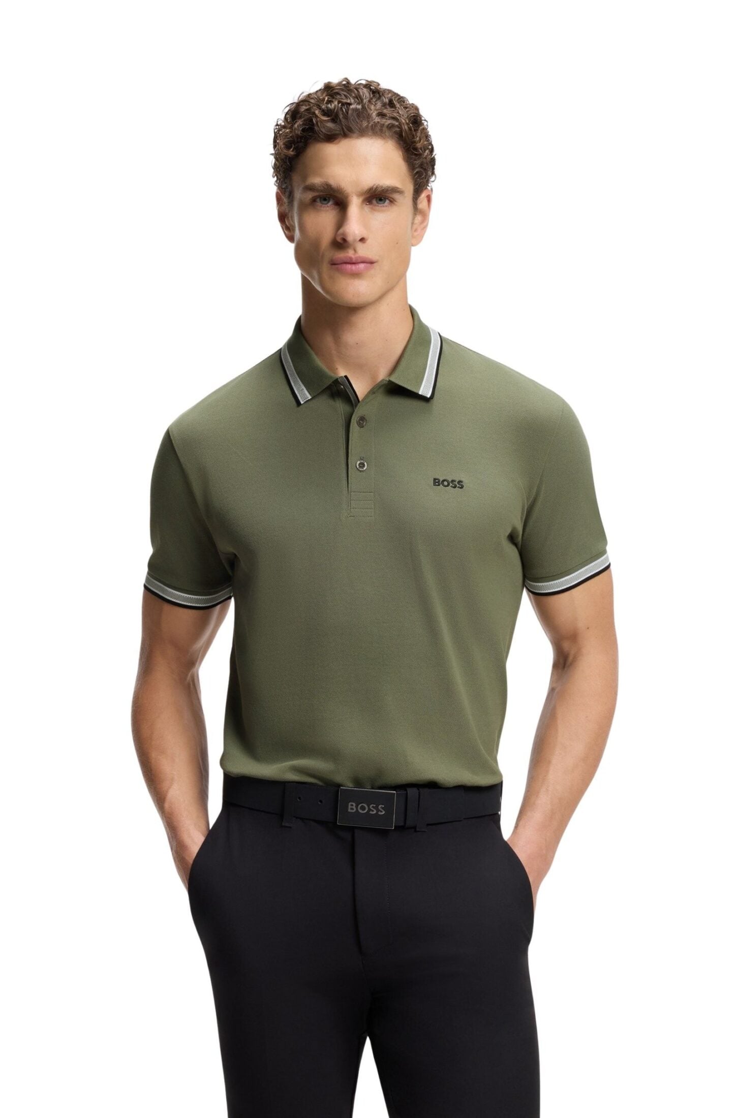 Polo til herre fra BOSS Green i pustende bomullspiqué med sporty kontraststriper og brodert logo på brystet. Et klassisk valg til både jobb og fritid.