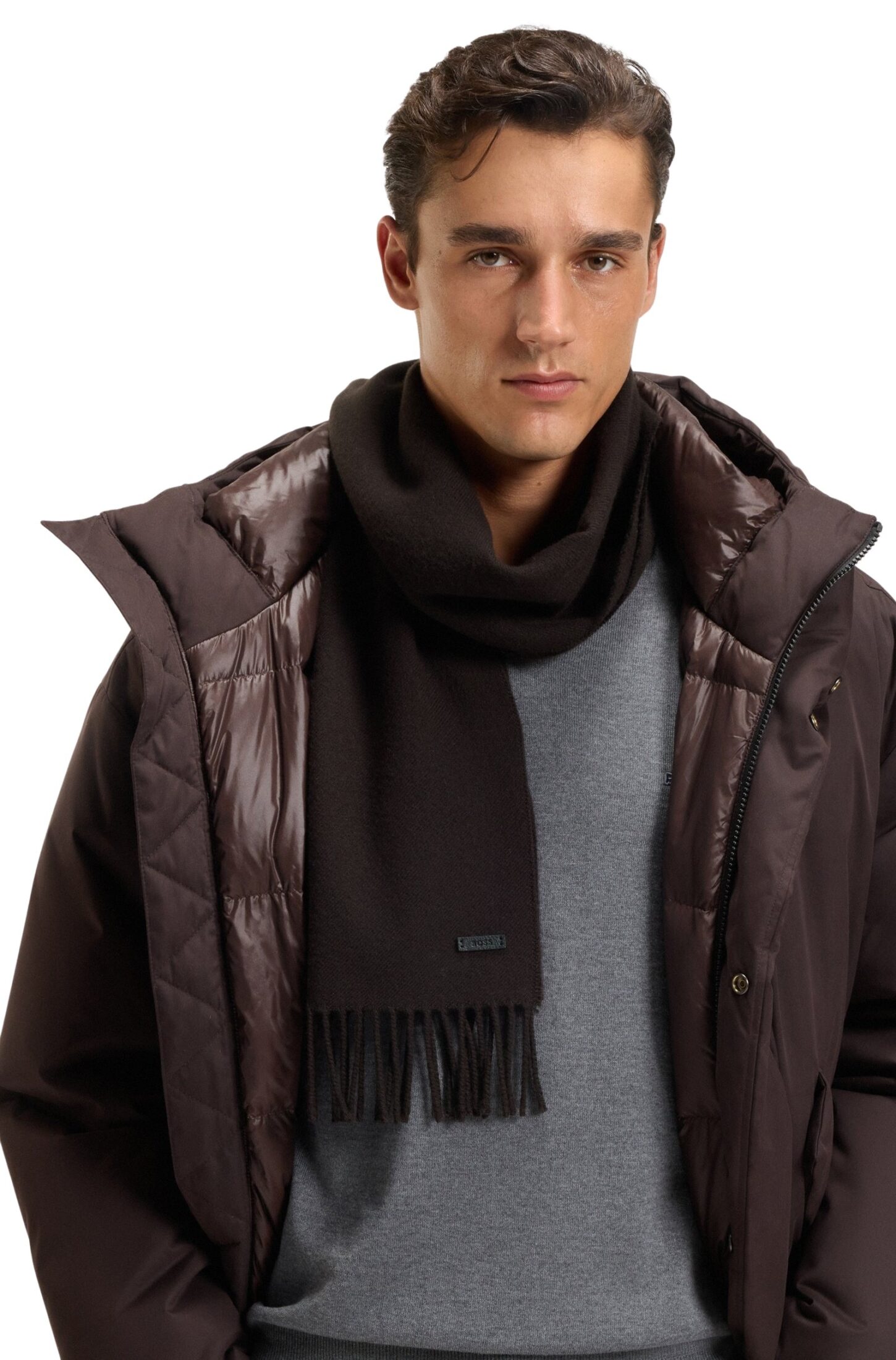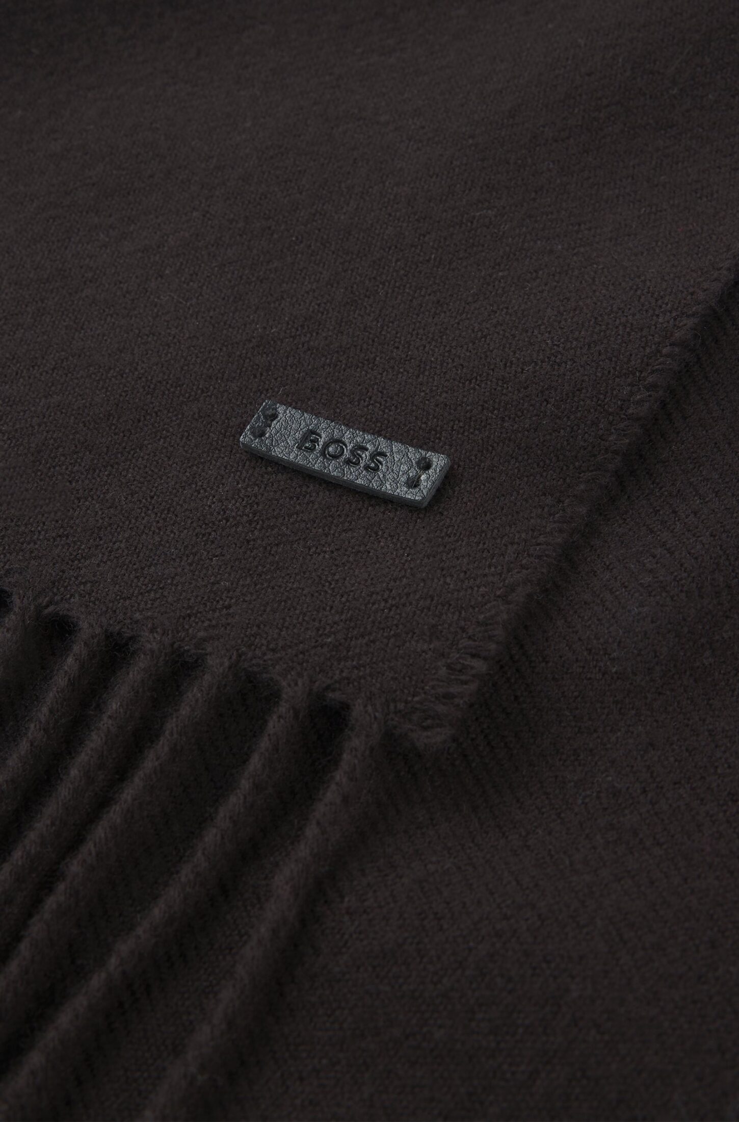 Skjerf til herre fra Boss i komfortabel og varmende ull, prydet med frynser i kantene og Boss logo-patch.