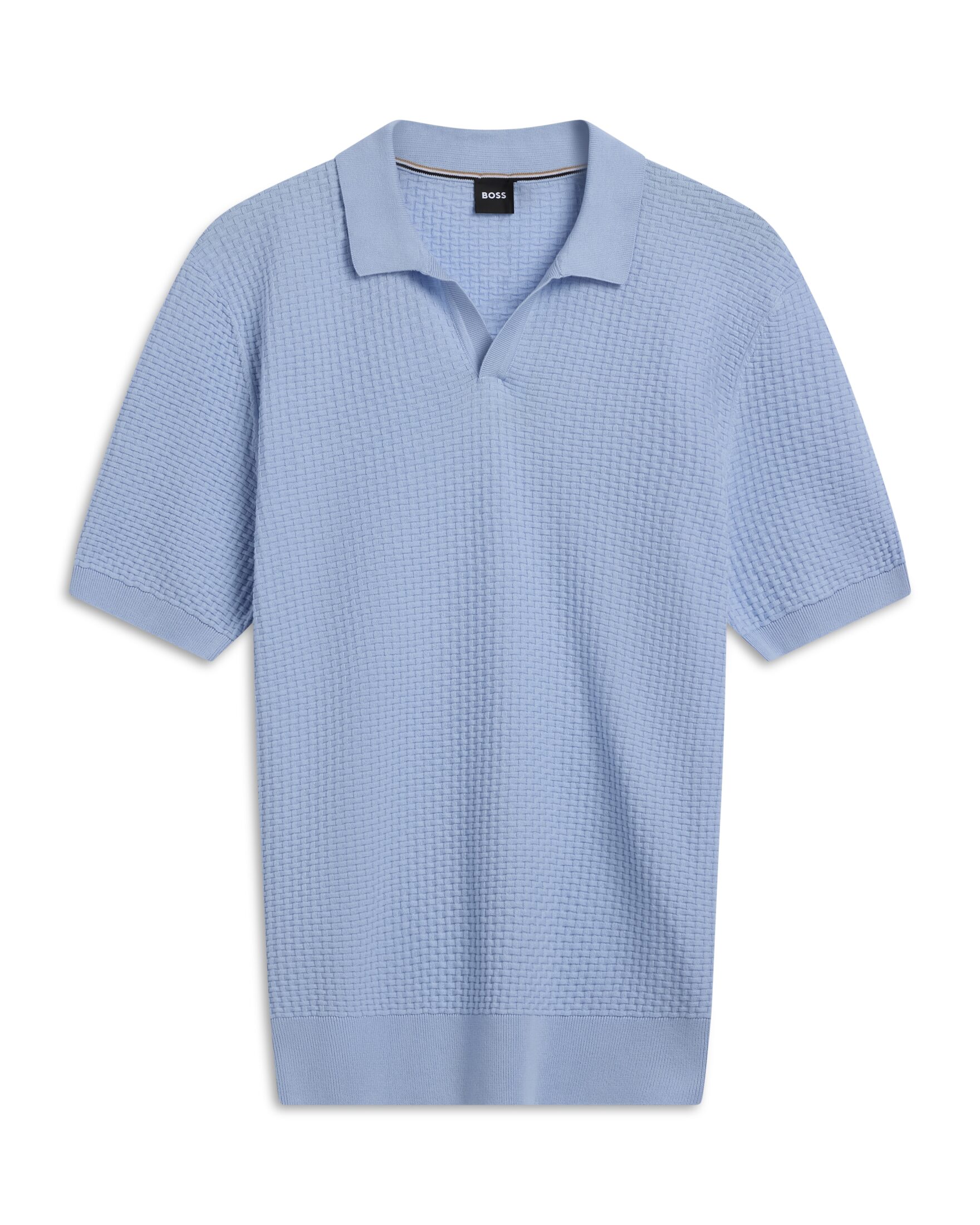 Elegant poloskjorte til herre fra BOSS i myk bomull med strukturert overflate som gir et sofistikert uttrykk. Designet med åpen krage og ribbestrikkede detaljer for en komfortabel og moderne passform. En tidløs favoritt som enkelt kan styles både opp og ned.