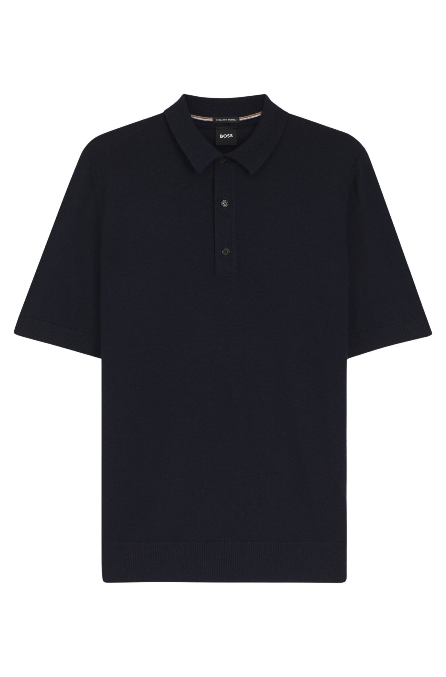 Piqué til herre fra BOSS. Strikket i ren merinoull som gir naturlig pusteevne og komfort. Modellen har polokrage og korte ermer som gir et avslappet, men velkledd uttrykk til sommergarderoben.