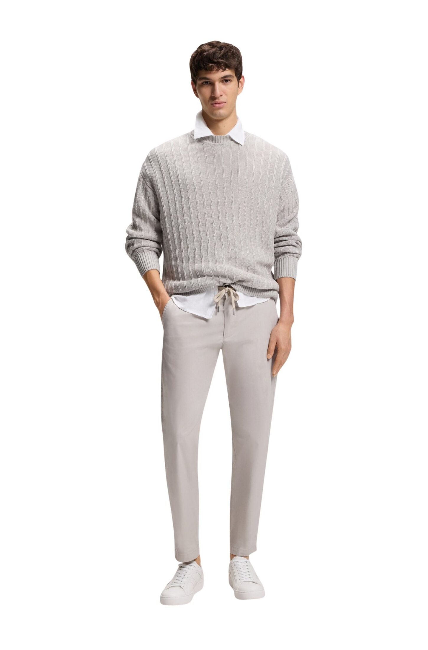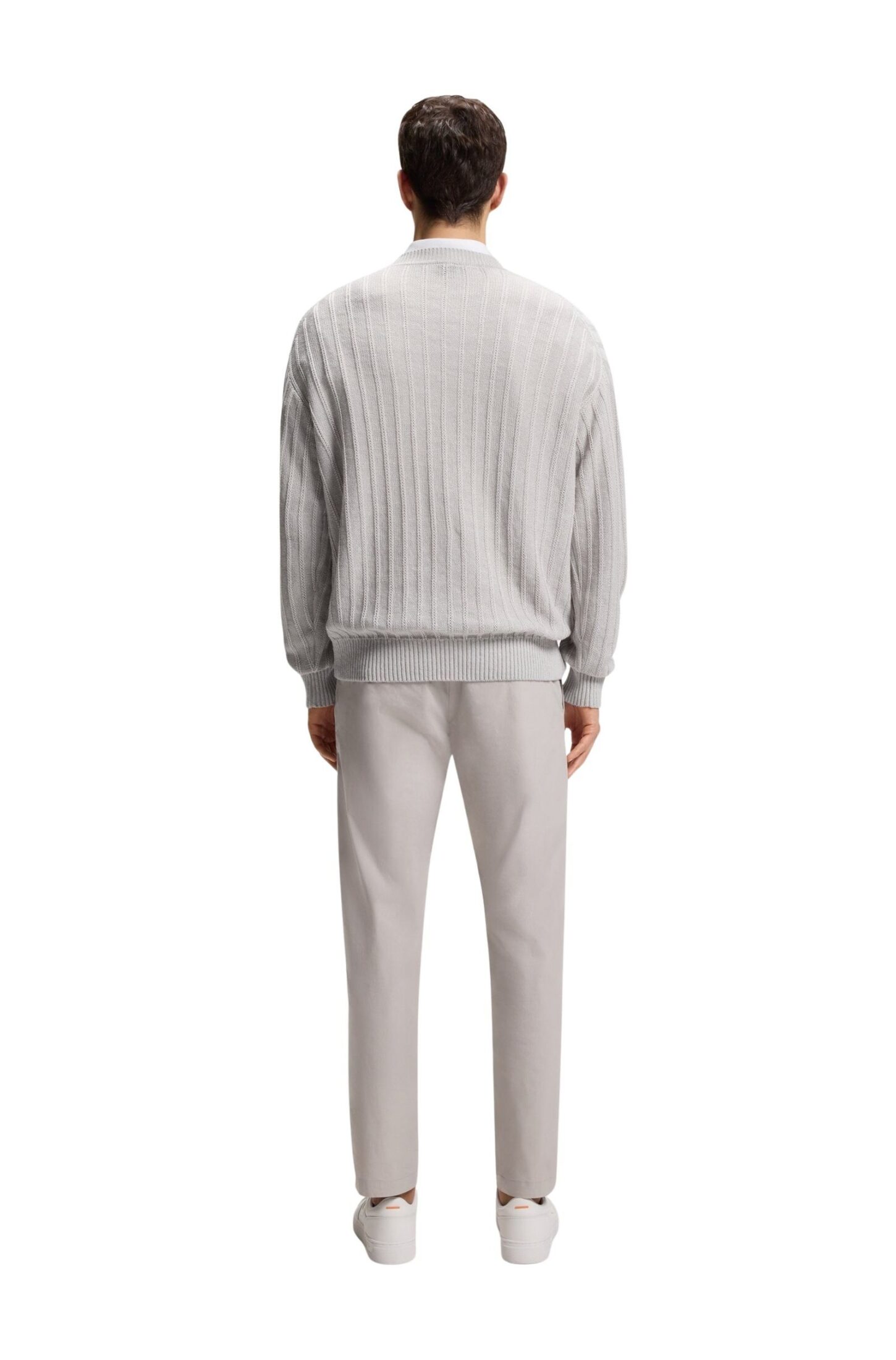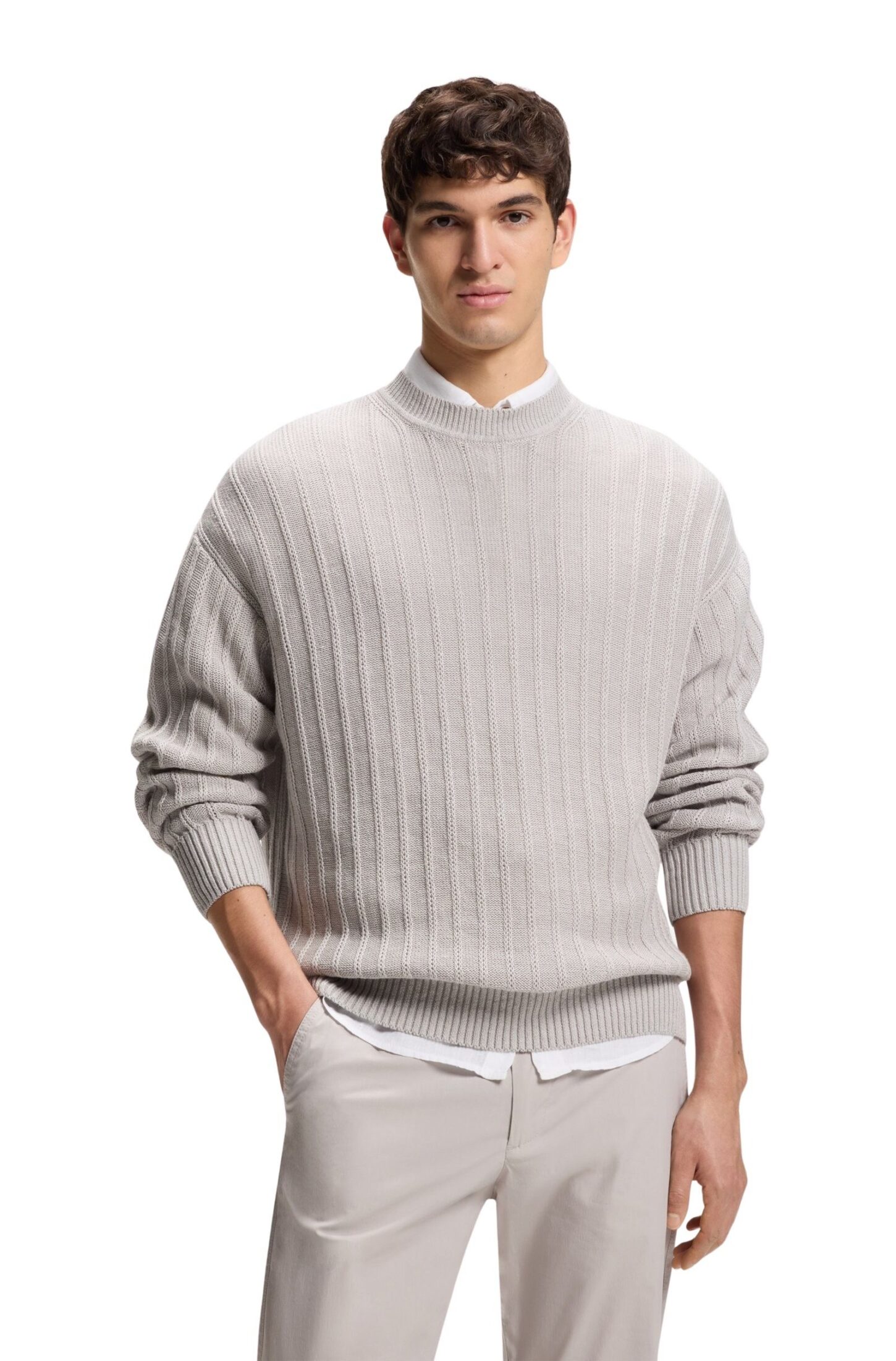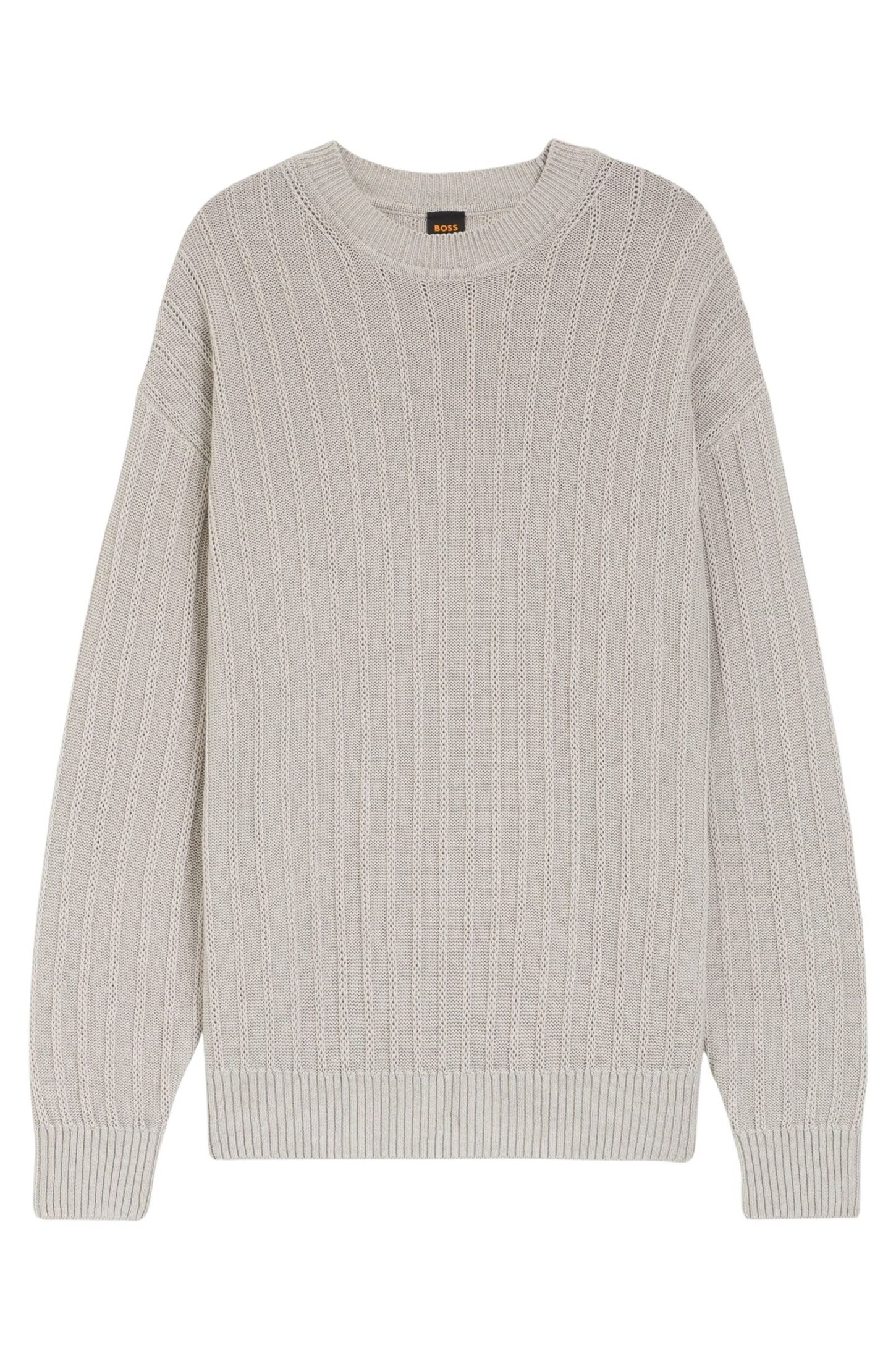 Genser fra BOSS Orange med en markert ribbestruktur som gir et stilrent og moderne uttrykk. Strikket i en lett og pustende blanding av lin og bomull, perfekt for varmere dager. Avslappet passform sikrer god komfort og en uanstrengt stil.