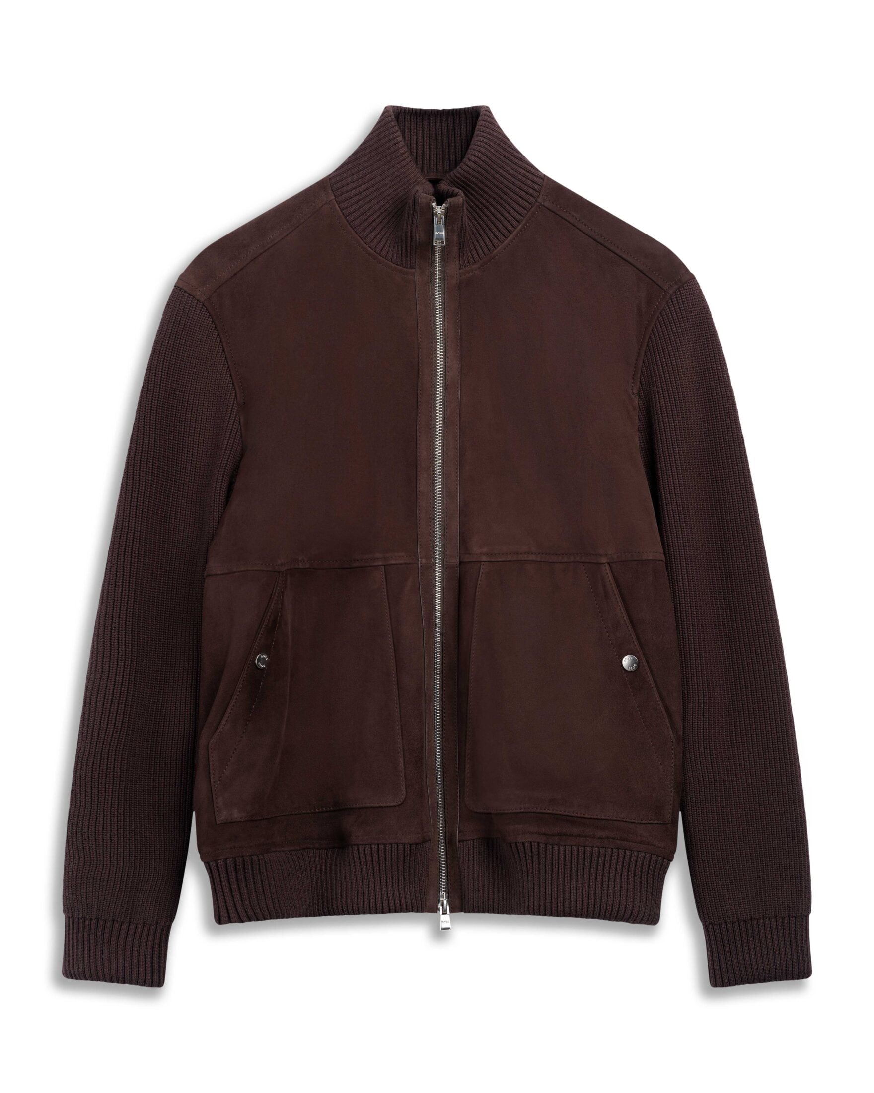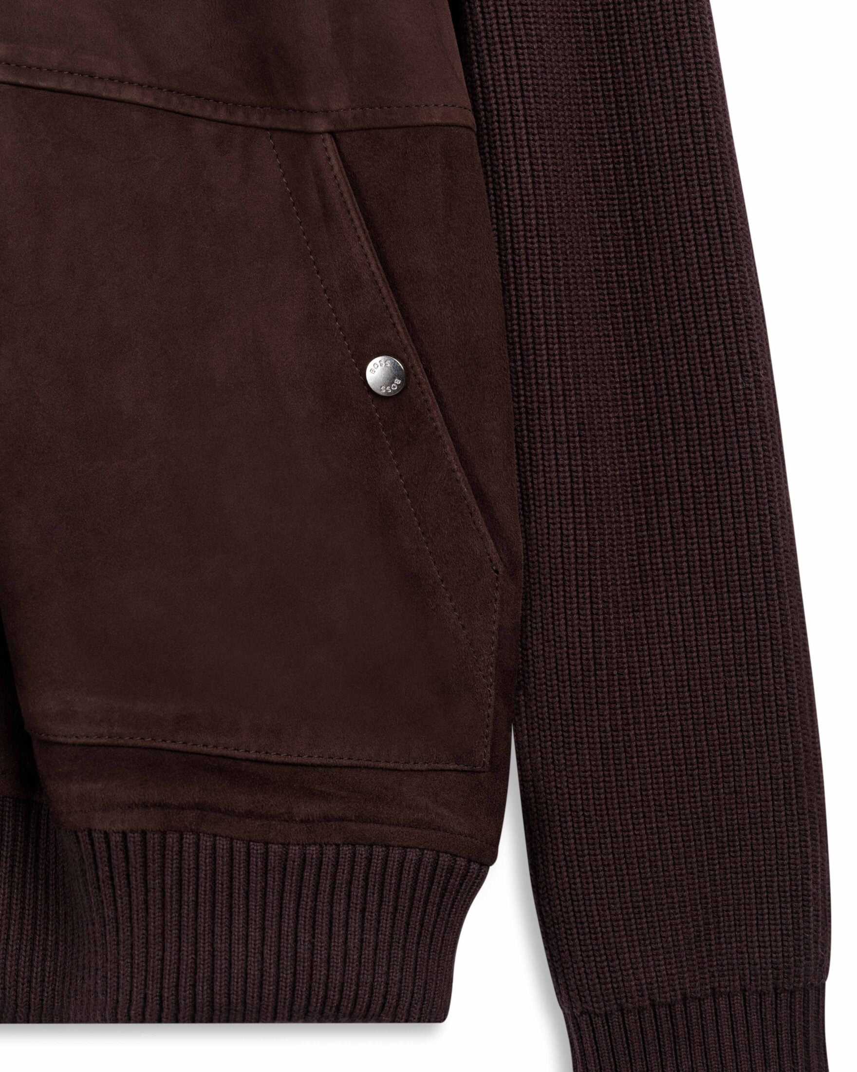 Eksklusiv jakke til herre fra BOSS. Laget av luksuriøst 100% geiteskinn på kropp og bakside med strikkede ermer i en myk og fleksibel blanding av bomull og polyamid. En moderne, hybrid silhuett som balanserer eleganse, varme og bevegelsesfrihet. Et statement-plagg for den stilbevisste.