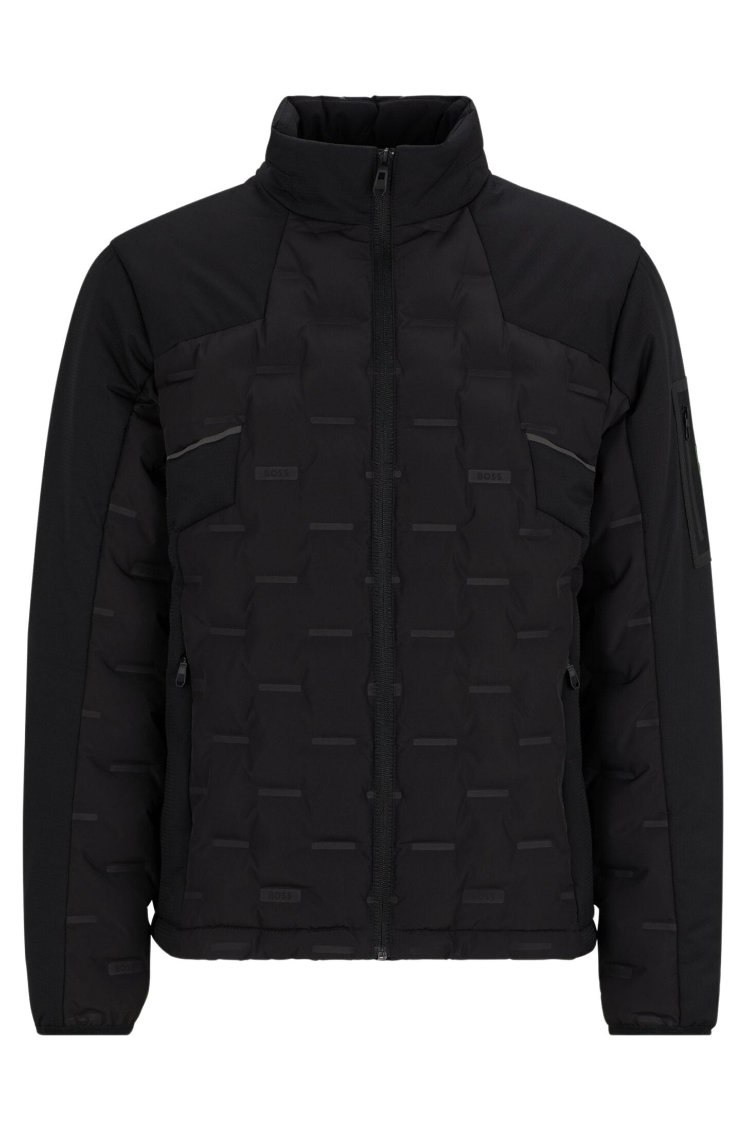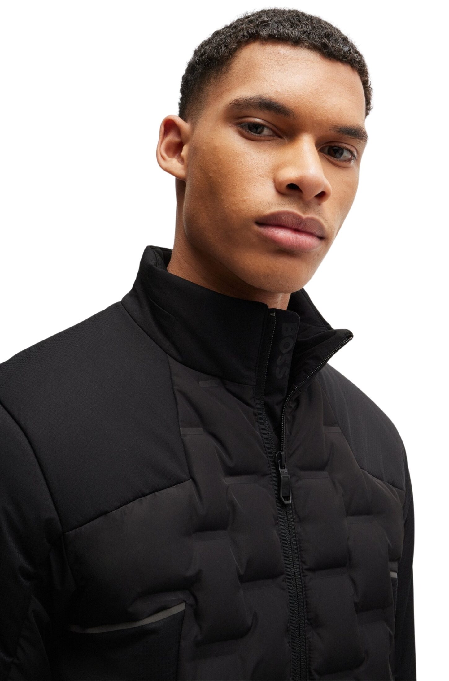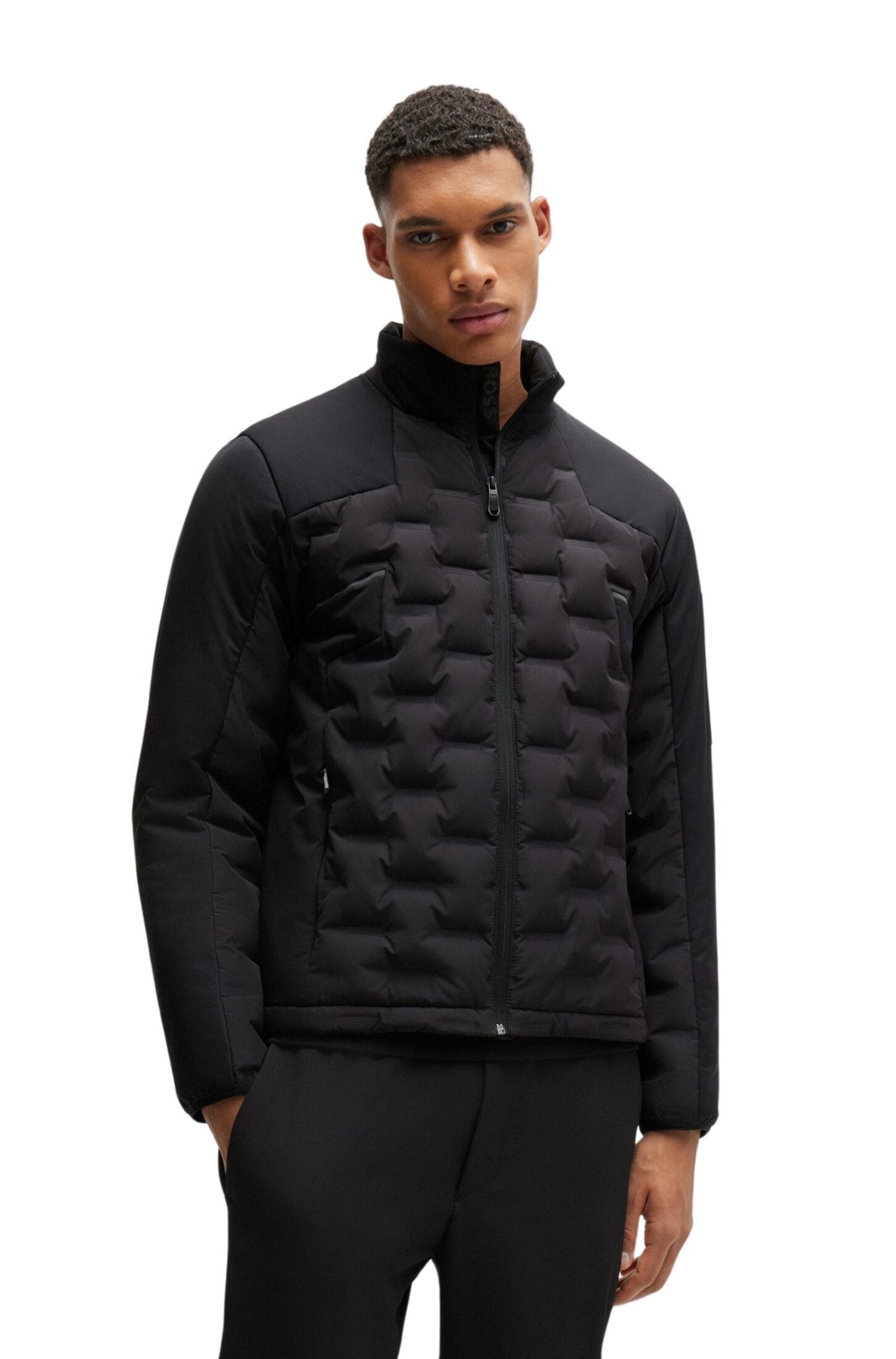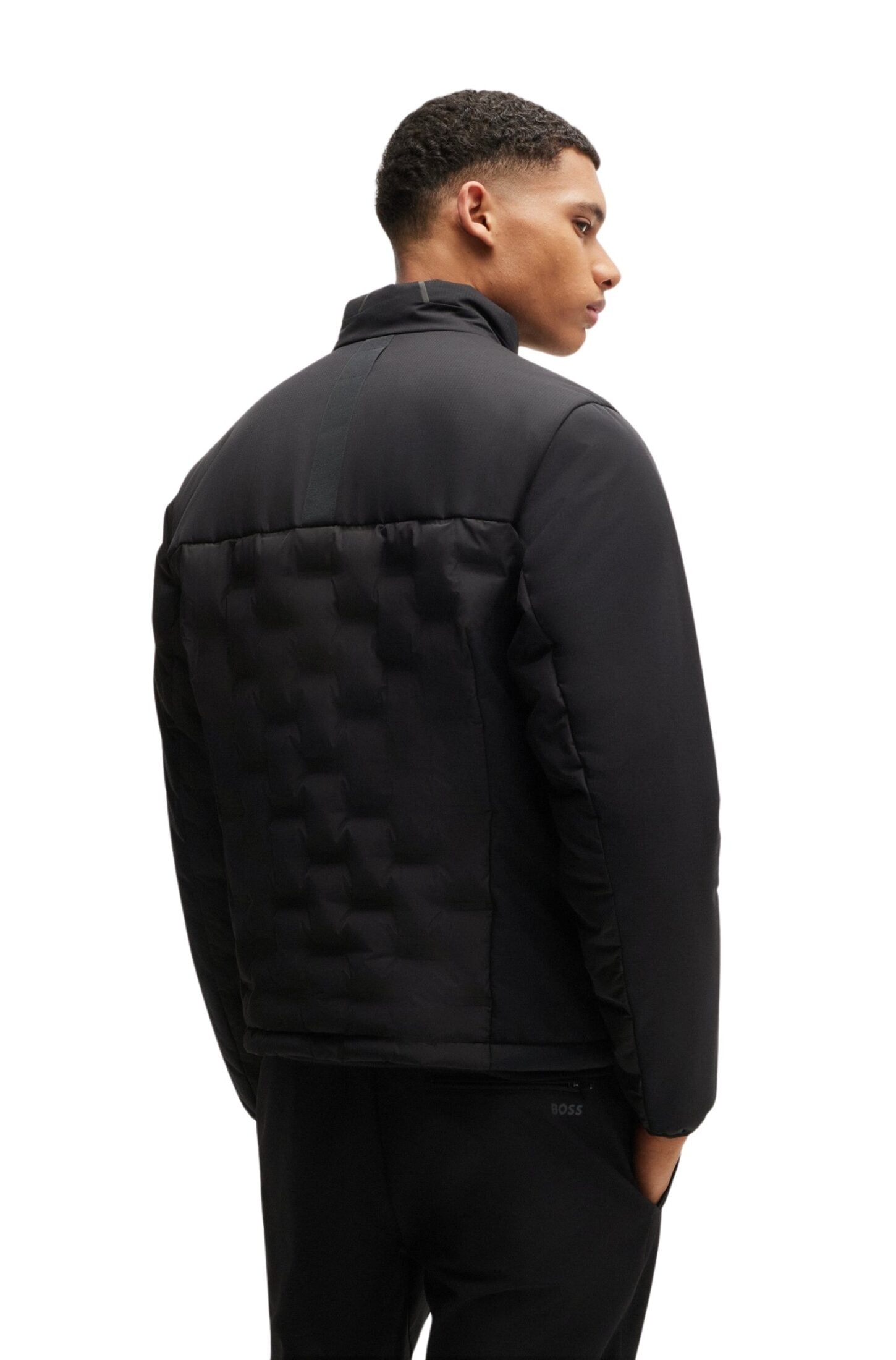 Dunjakke til herre fra Boss. Denne lettdunsjakken er laget av et vannavisende yttre, fôret med 80/20 andedun og fjær som holder deg både tørr og varm. Den er pyntet med små logodetaljer på brystet og en glidelåslomme på venstre erm med logo.
