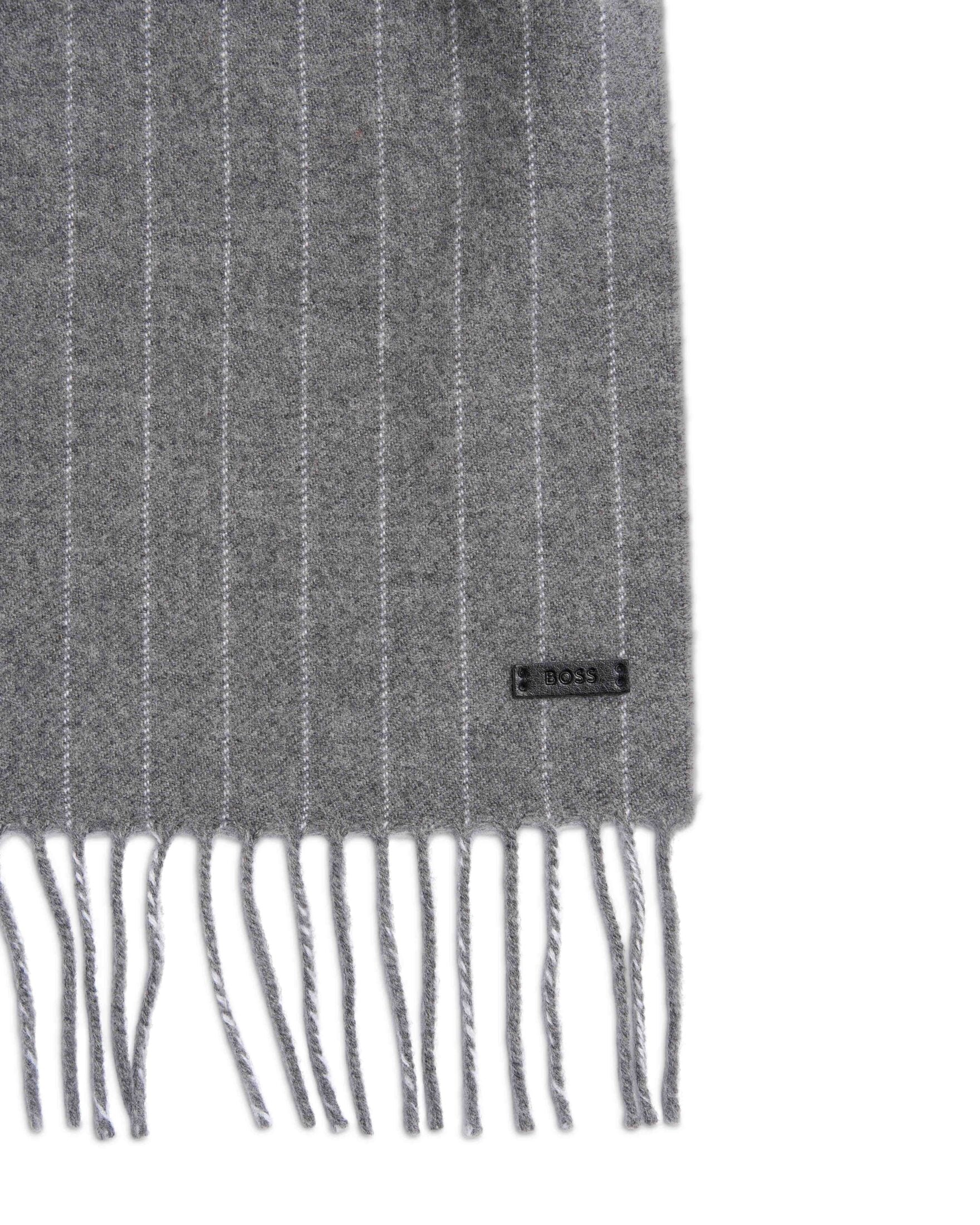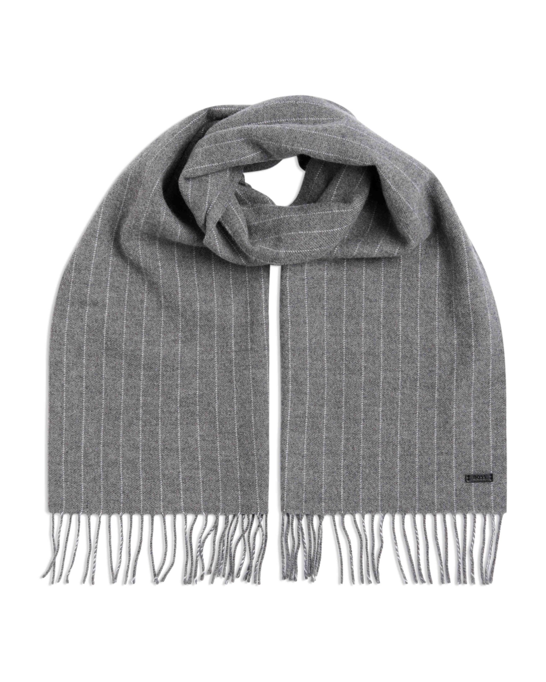Skjerf til herre fra BOSS. Laget av 100% ull og kombinerer varme med en elegant, tidløs stil. De fine pinstripe-linjene og frynsekantene gir et sofistikert uttrykk som løfter både hverdags- og yttertøylooken.