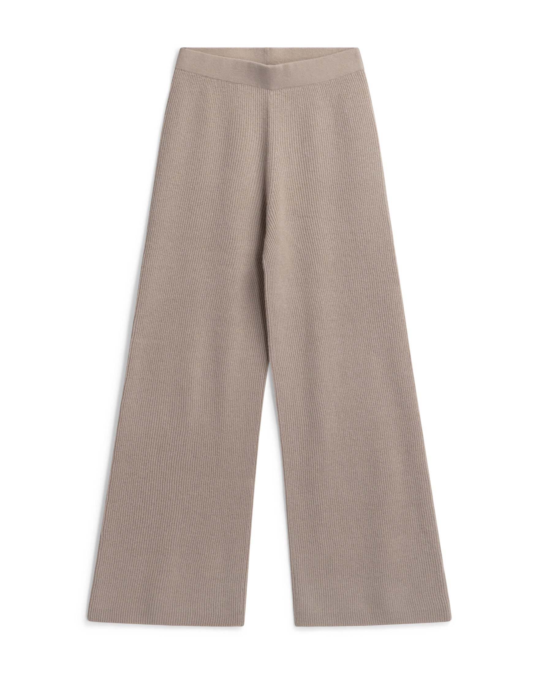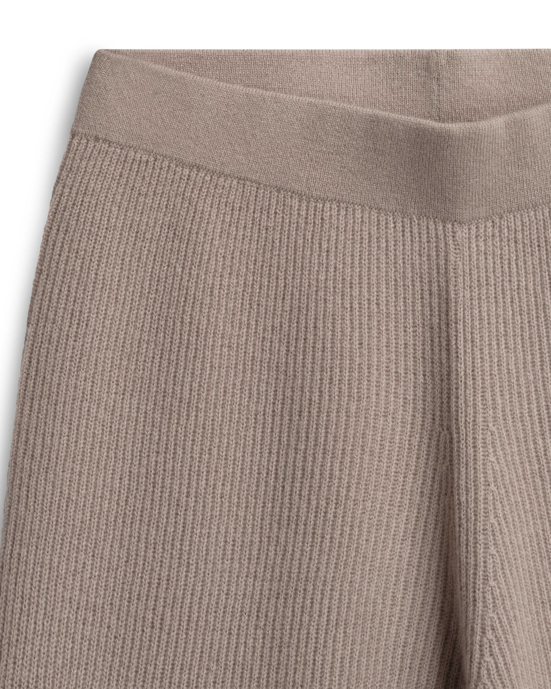 Luksuriøs strikket bukse til dame fra Bramani Cashmere, laget av 100% ren kasjmir. Buksen har en flatterende, vid passform og elastisk linning som gir en behagelig og elegant silhuett. Den ribbestrikkede strukturen tilfører tekstur og dybde, samtidig som den myke kasjmirkvaliteten gir en følelse av ren komfort.