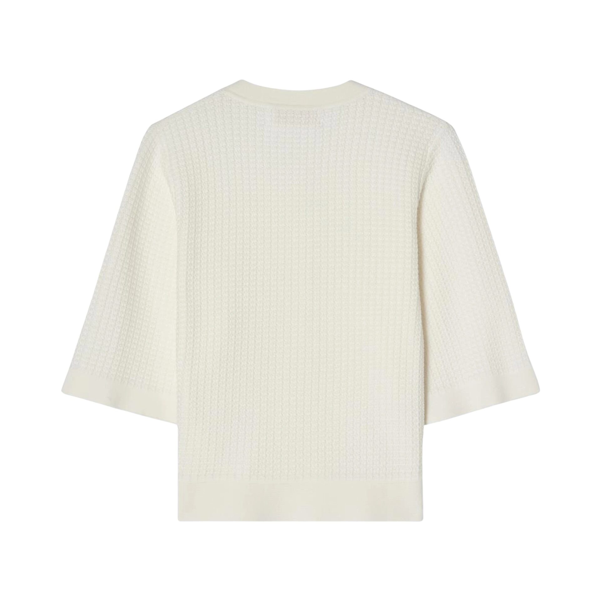Cardigan til dame fra Busnel i luksuriøs vaffelstrikk med boxy passform og vide, albuelange ermer. Dekorert med signaturknapper i gull, to frontlommer og logo-patch på ermet. En anvendelig cardigan som blir en tidløs favoritt i garderoben.