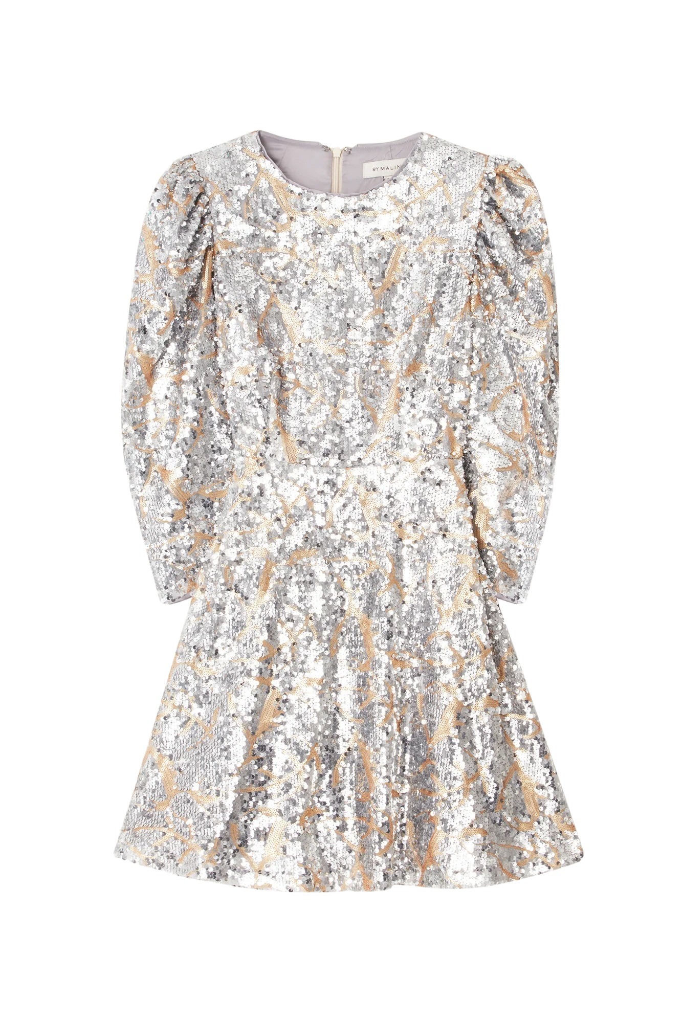 Paljettkjole fra By Malina med puffermer og flott fasong. Kjolen er tettsittende rundt midjen og går ut i en flott a-fasong.