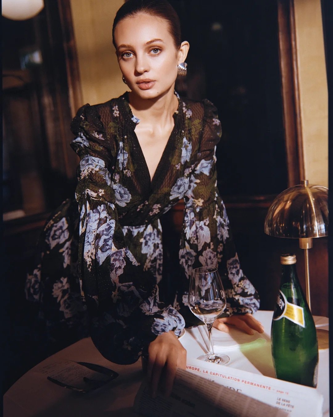 Kjole til dame fra ByTiMo. Laget i en delikat og teksturert FSC-sertifisert viskose-georgettekvalitet. Kjolen har kort lengde, tettsittende midje med elastikk, mandarinkrage, en dyp V-hals med knapper nedover, et A-linjeformet skjørt og lange, voluminøse ermer med elastiske mansjetter. Elegante rynkedetaljer på overarmene og glidelåslukking i siden.