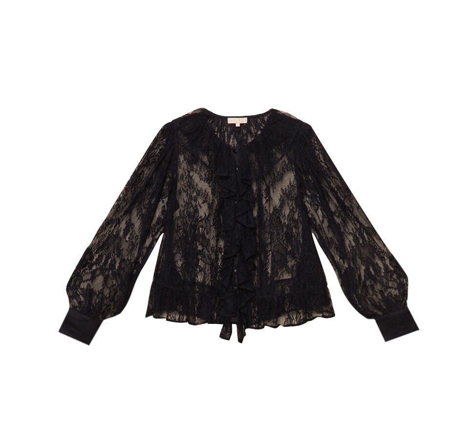 Satin Lace Blouse – Sort