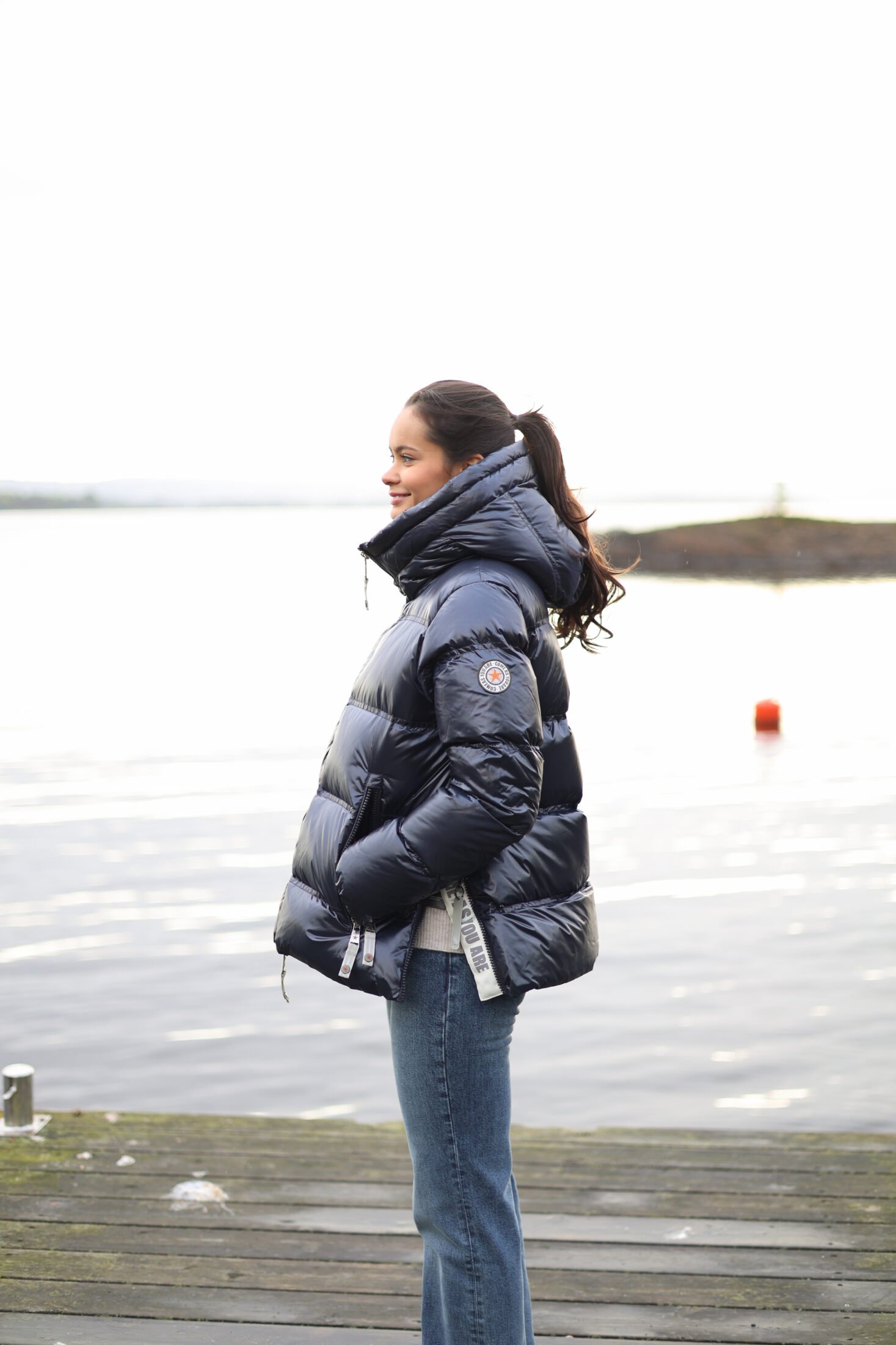 Erika fra C.A.Y.A. er en luksuriøs og varm dunjakke laget for kalde dager. Produsert i skinnende, slitesterk nylon og vattert med en fyldig blanding av dun og fjær som gir optimal isolasjon uten å føles tung. Jakken har en feminin og moderne passform, med stor hette, praktiske glidelåslommer og justerbar glidelås nederst på sidene. En perfekt kombinasjon av stil og komfort. Like fin i byen som på tur.