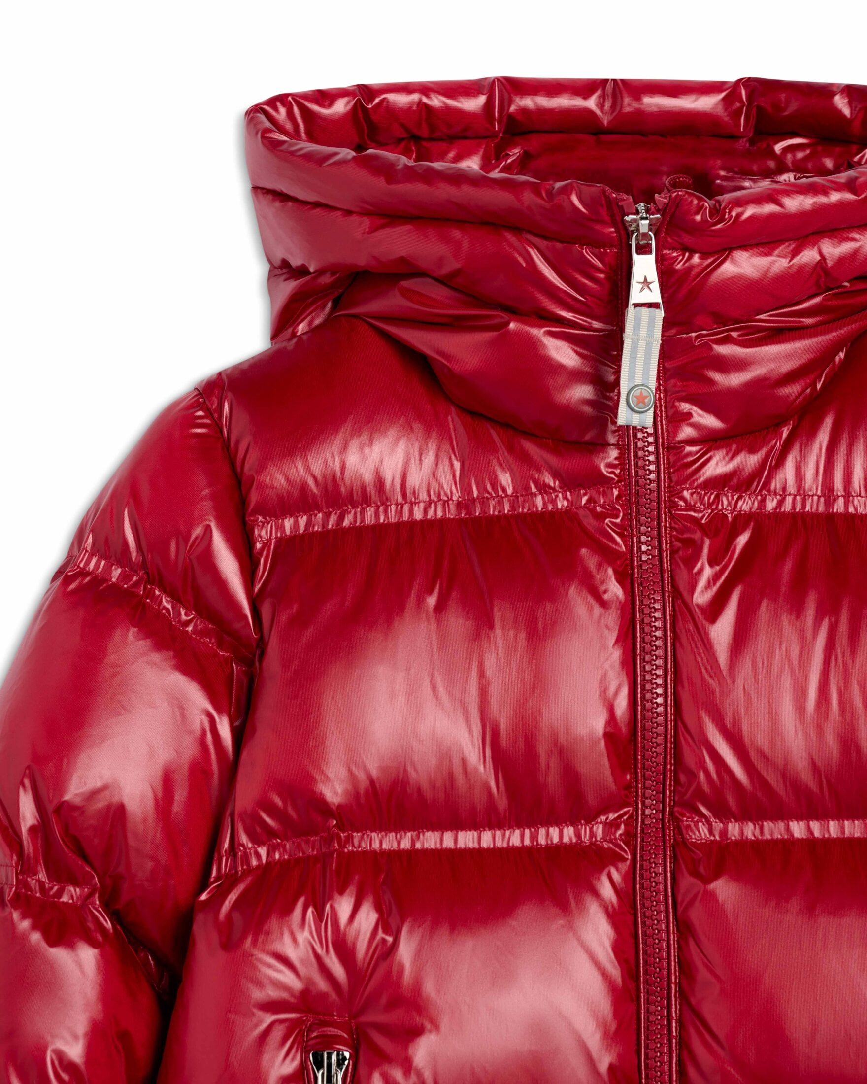 Erika fra C.A.Y.A. er en luksuriøs og varm dunjakke laget for kalde dager. Produsert i skinnende, slitesterk nylon og vattert med en fyldig blanding av dun og fjær som gir optimal isolasjon uten å føles tung. Jakken har en feminin og moderne passform, med stor hette, praktiske glidelåslommer og justerbar glidelås nederst på sidene. En perfekt kombinasjon av stil og komfort. Like fin i byen som på tur.
