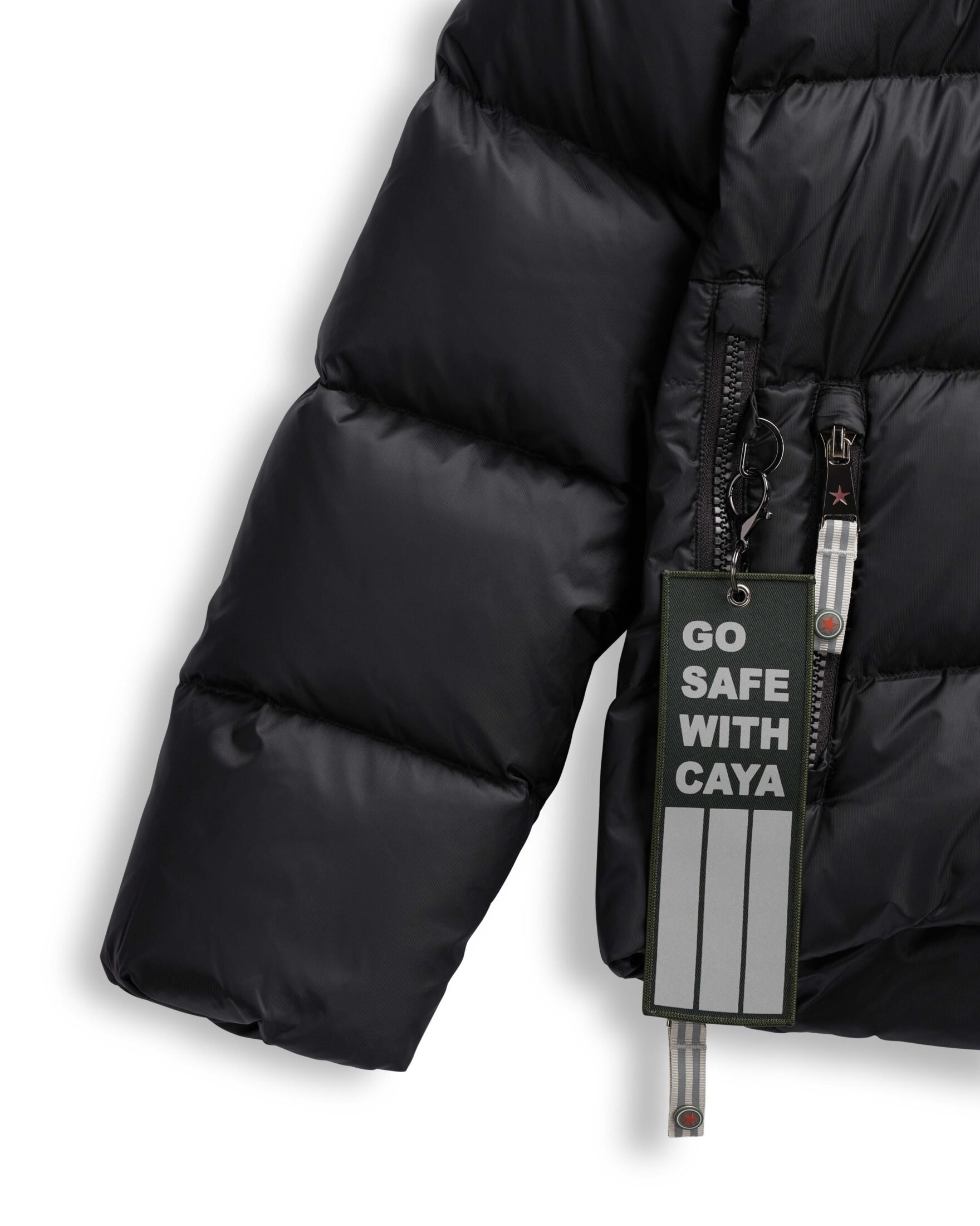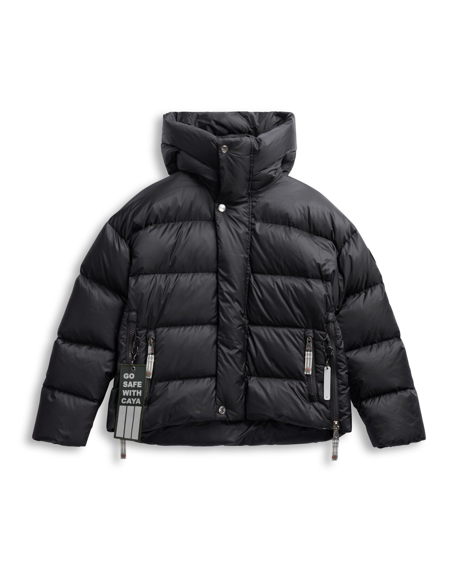 Ginny Short fra C.A.Y.A. er en stilsikker dunjakke med kort og moderne passform. Laget i lett, matt nylon og vattert med dun og fjær for maksimal varme og komfort. Jakken har høy krage, glidelås med trykknapper og markante detaljer som gir et sporty og eksklusivt uttrykk. En perfekt jakke for deg som vil holde varmen med stil hele vinteren.