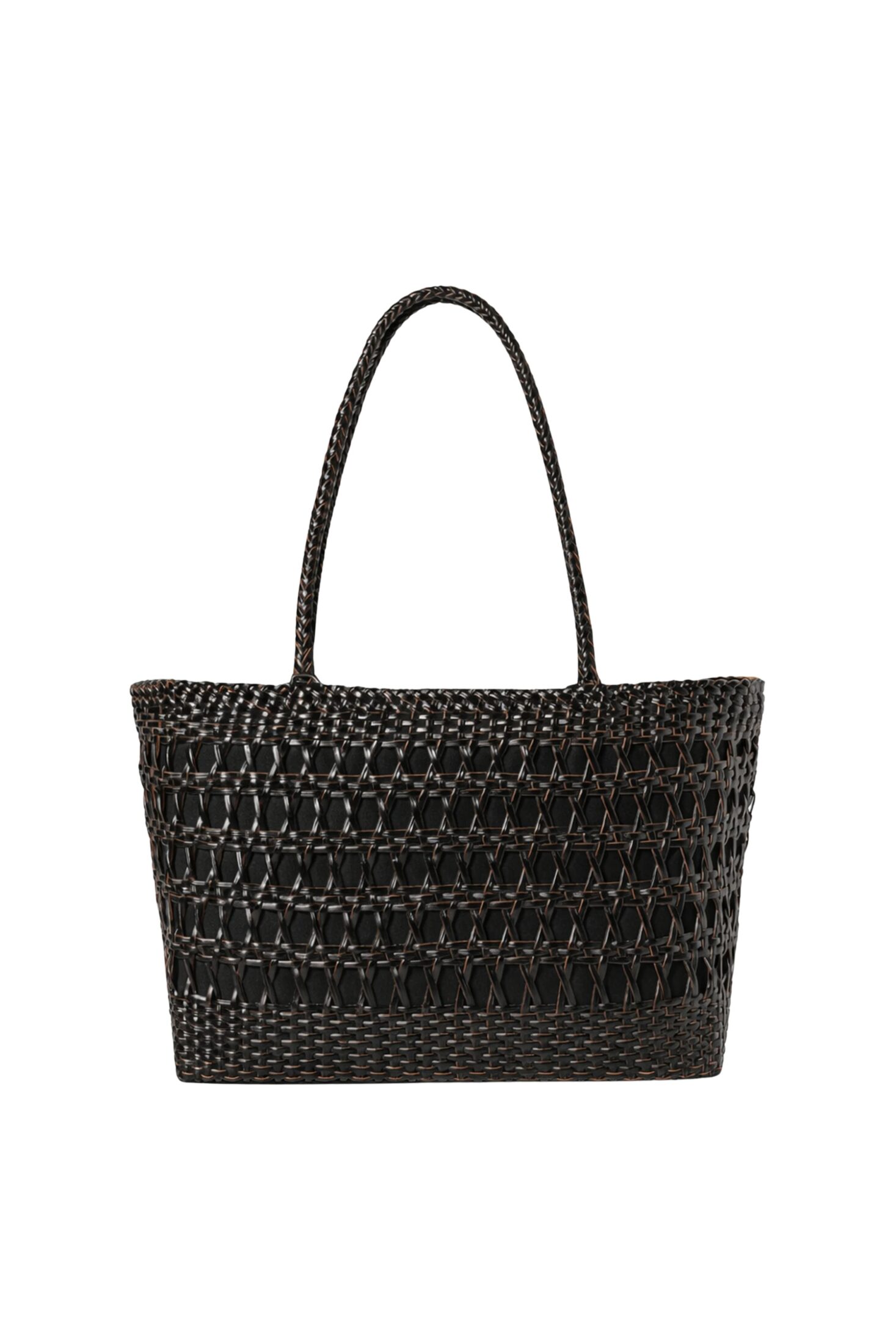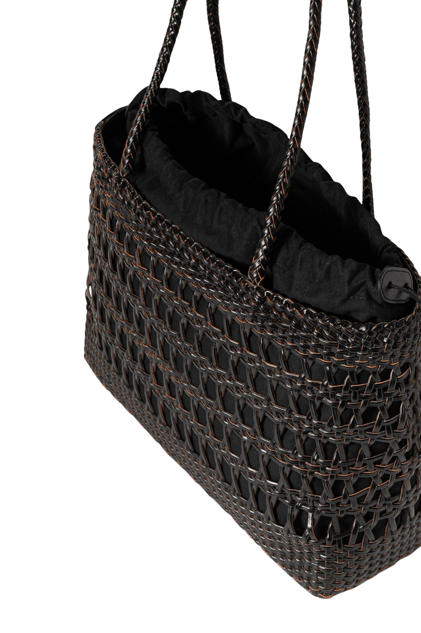 Cordova Basket Large fra Camilla Pihl. En flettet veske i resirkulert skinn som kombinerer en strukturert form med et mykere uttrykk. Den romslige modellen har en praktisk bomullspose på innsiden med liten lomme for enkel organisering. En tidløs hverdagsfavoritt som løfter antrekket sesong etter sesong.