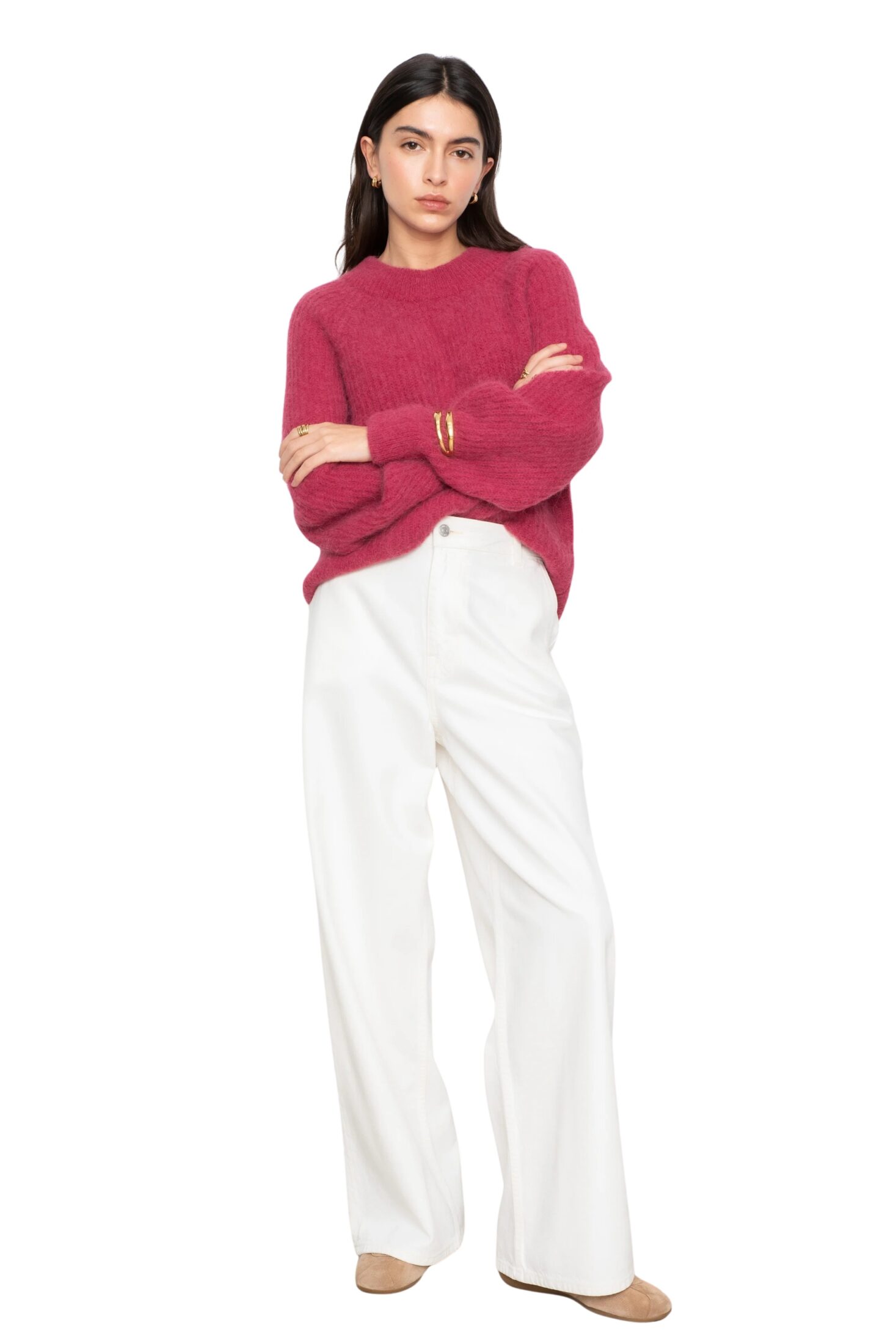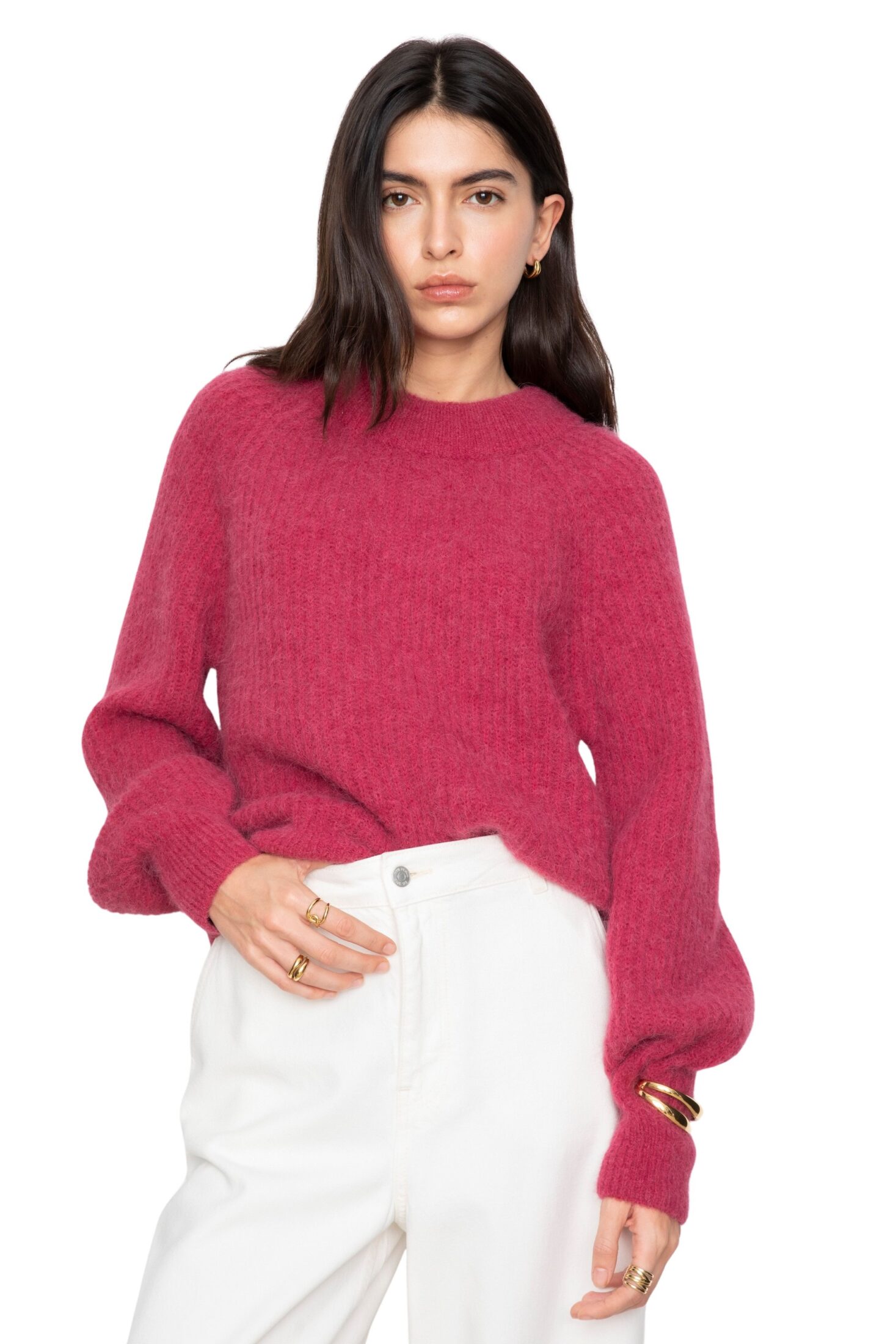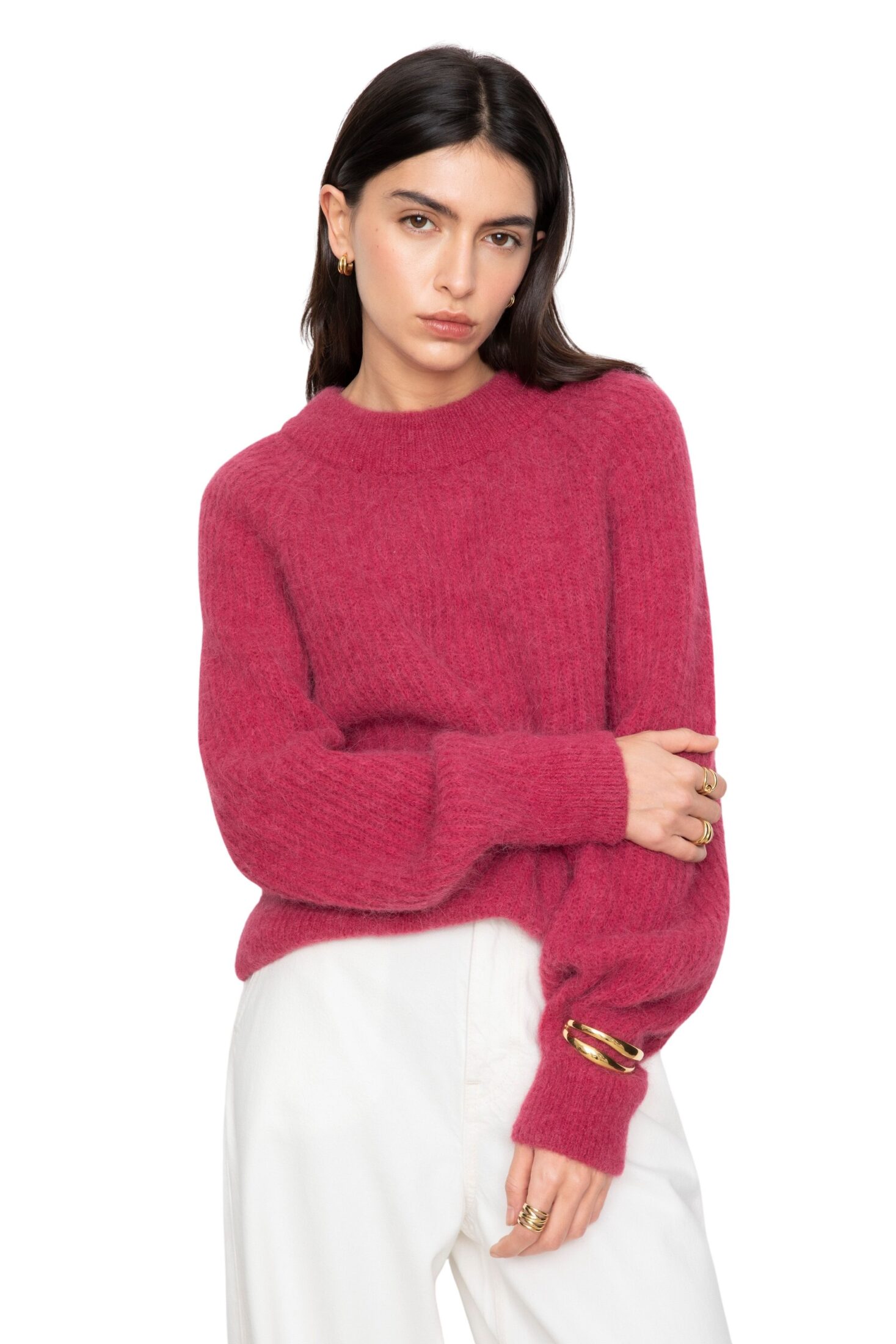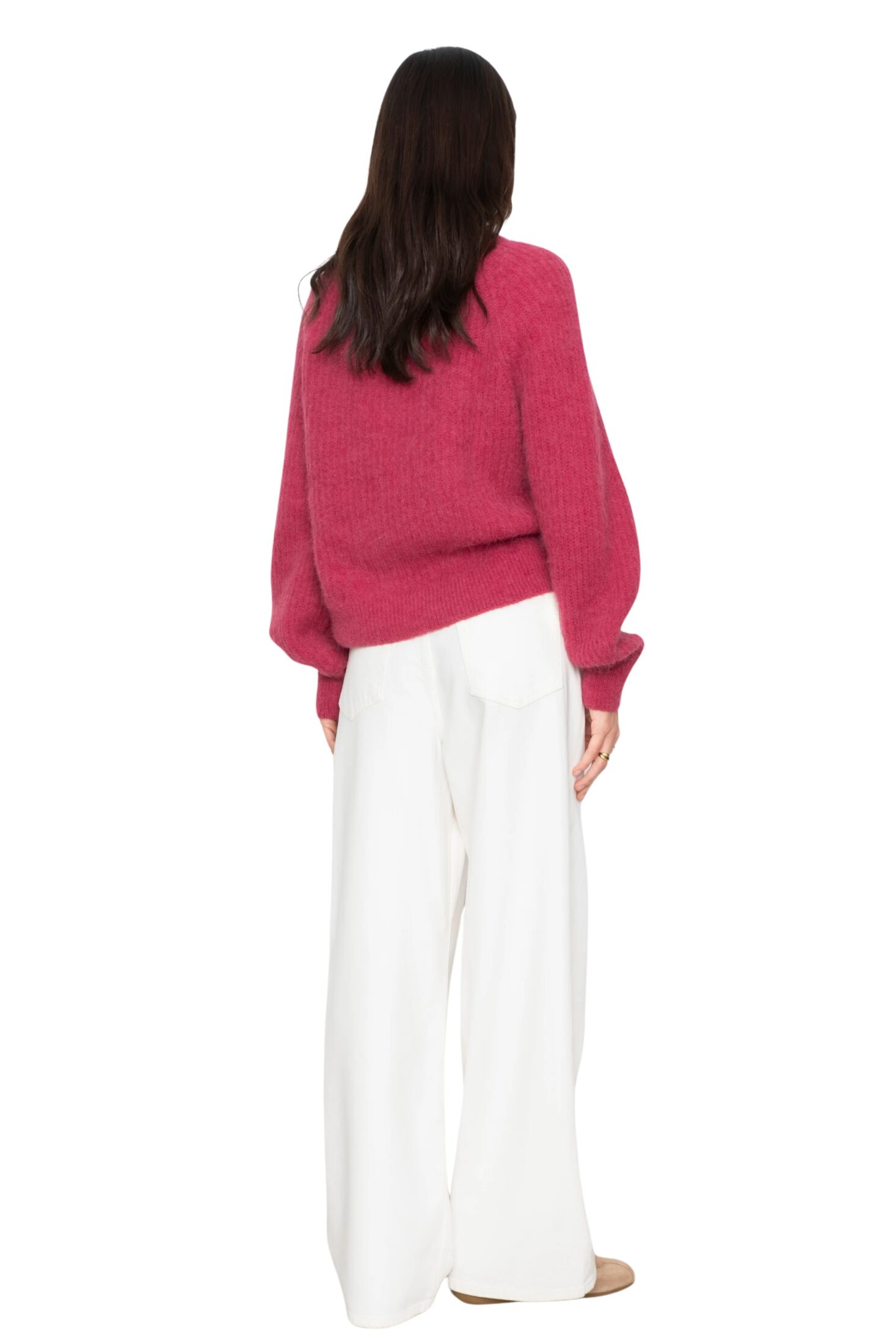 Gaby Knit fra Camilla Pihl. En myk og eksklusiv strikk laget i en børstet alpakkablanding som føles lett og behagelig mot huden. Den avslappede passformen, raglanermer og lange ribbestrikkede mansjetter gir et moderne og sofistikert uttrykk. En perfekt hverdagsfavoritt som løfter antrekket med minimal innsats.