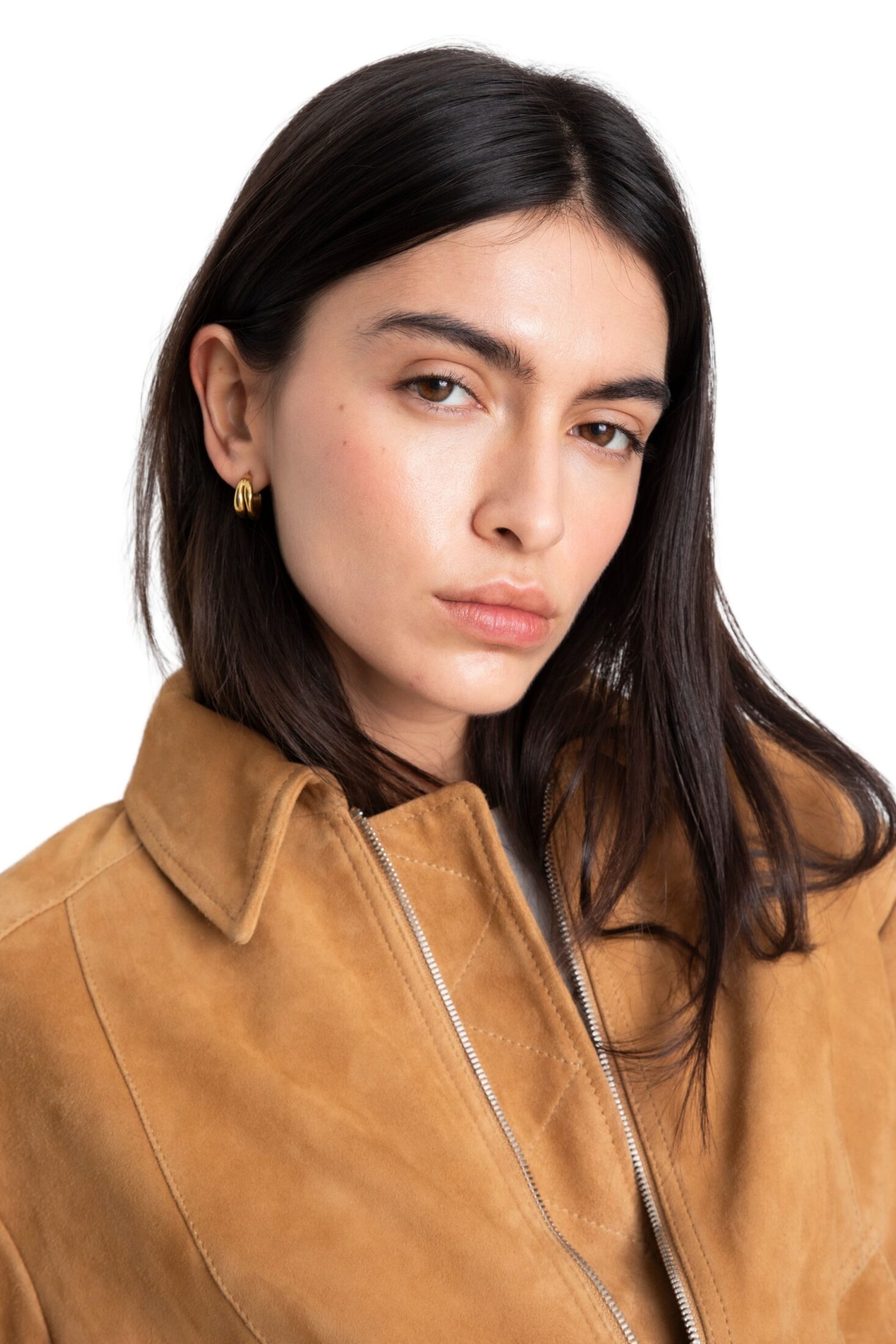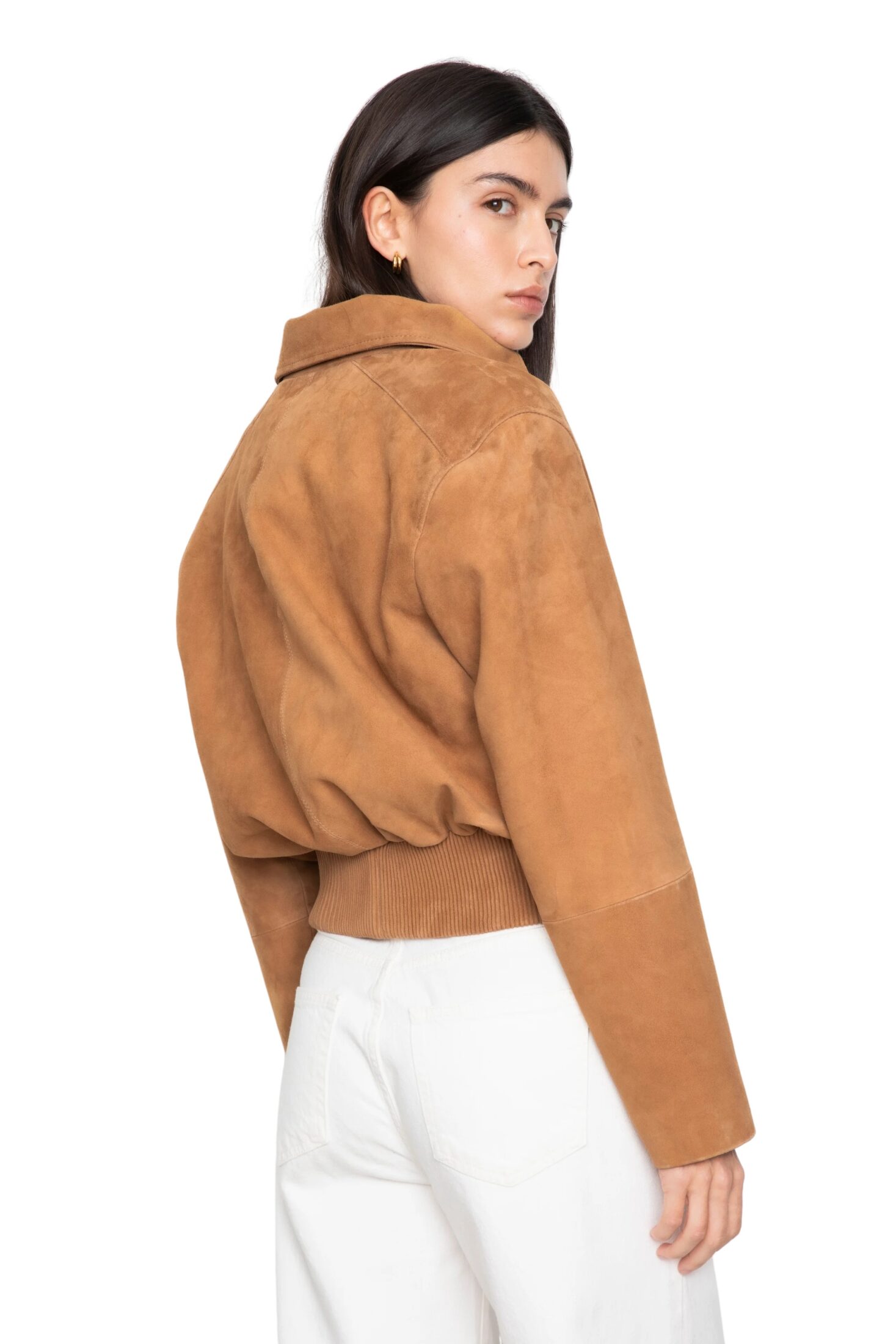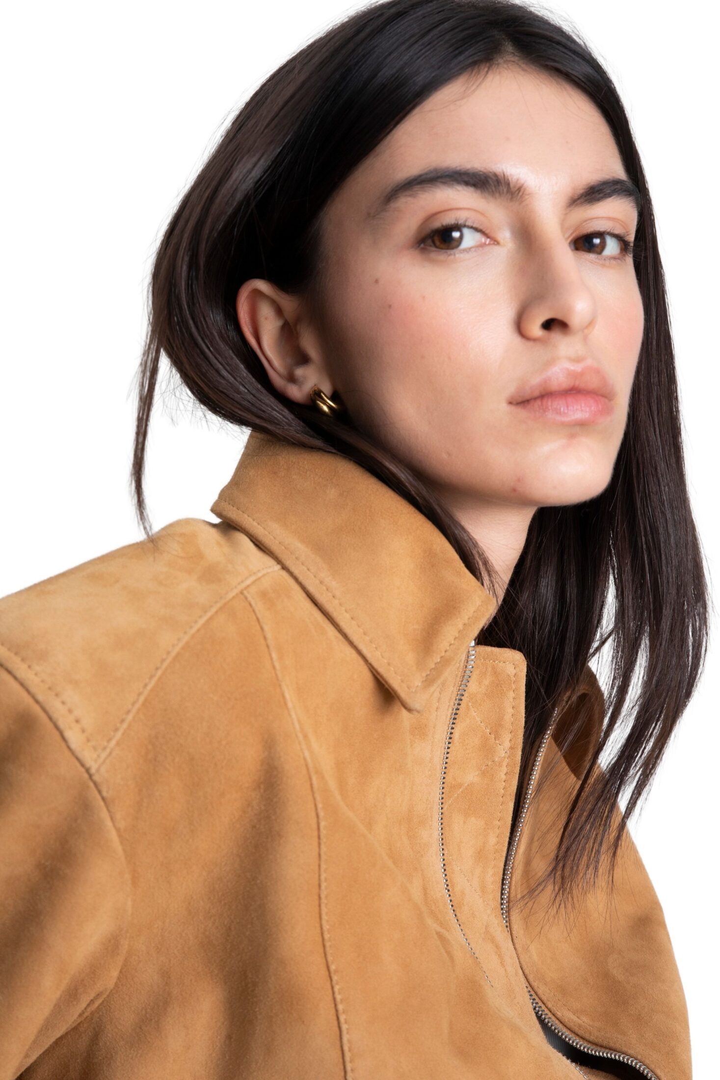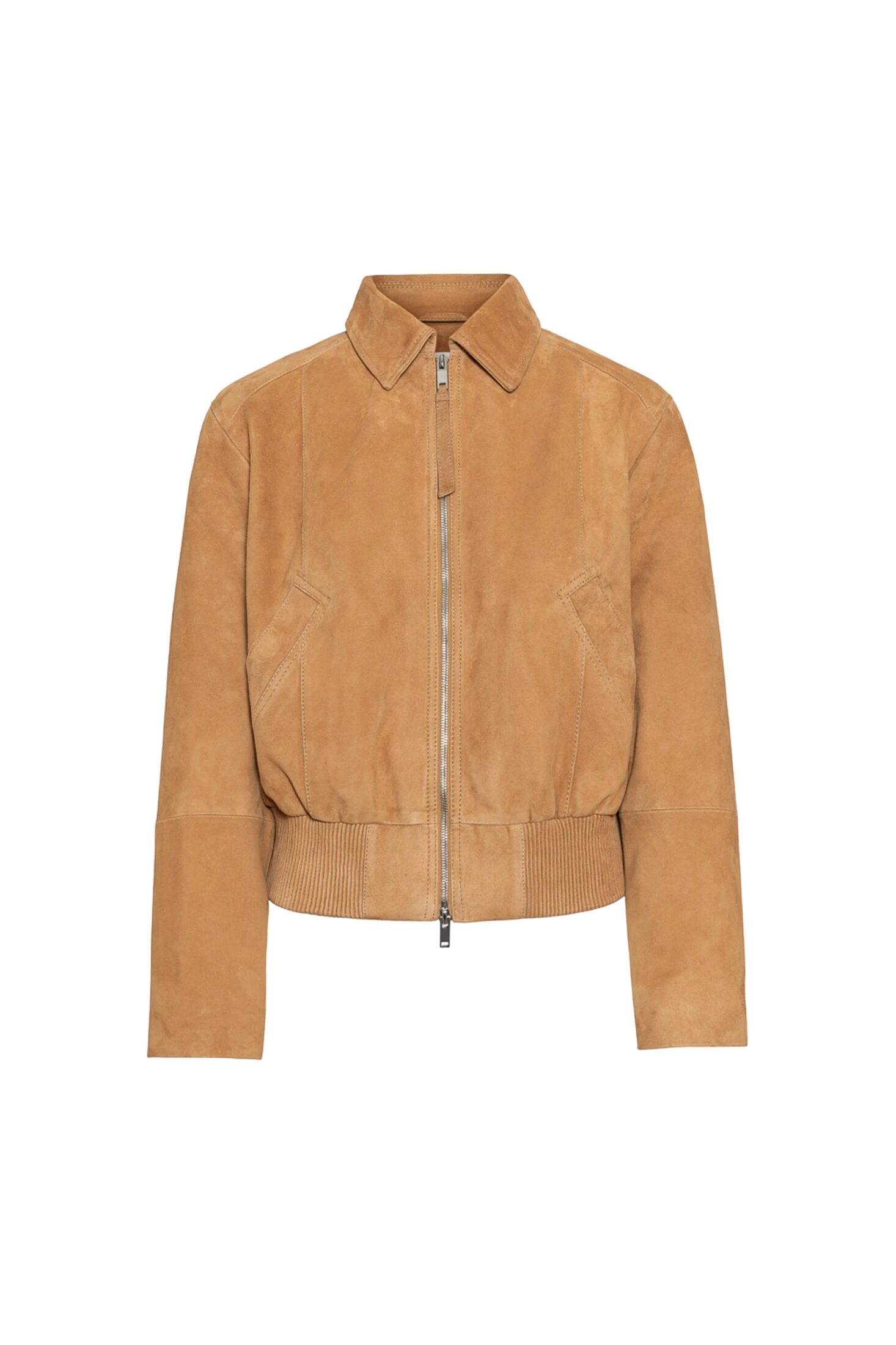 Lex Bomber Jacket fra Camilla Pihl. Laget i mykt lammeskinn og designet med en avslappet, kort og boxy passform. Jakken har ribbet linning i skinn, stikklommer i sidene og en toveis glidelås i front. Helfôret for komfort og et tidløst uttrykk.