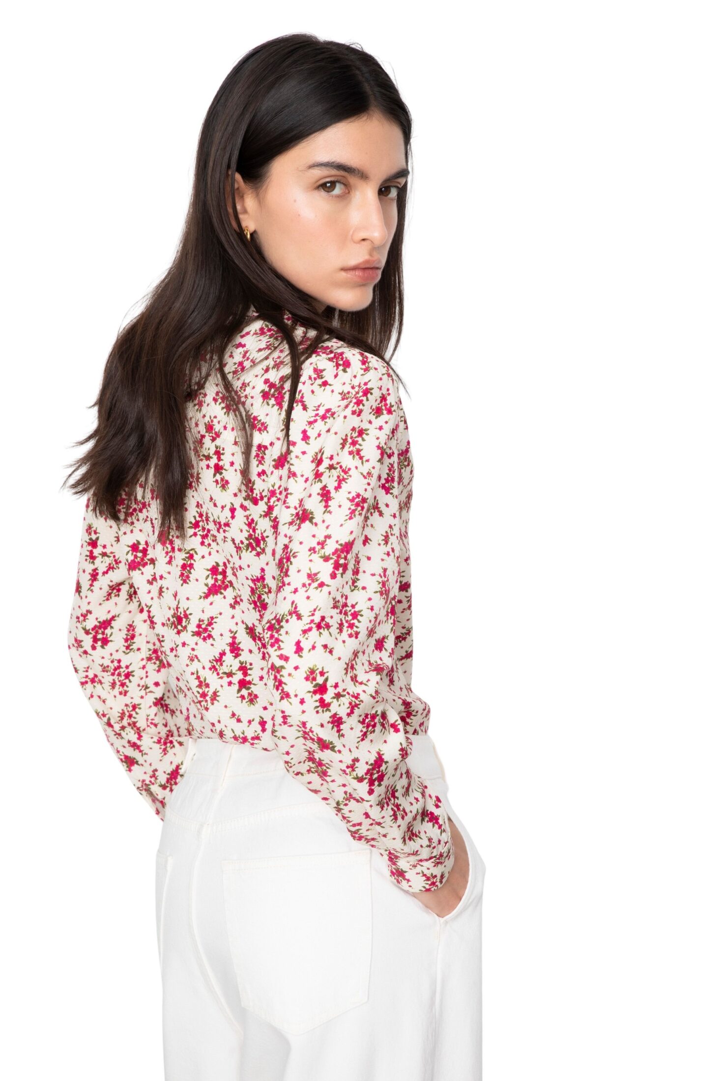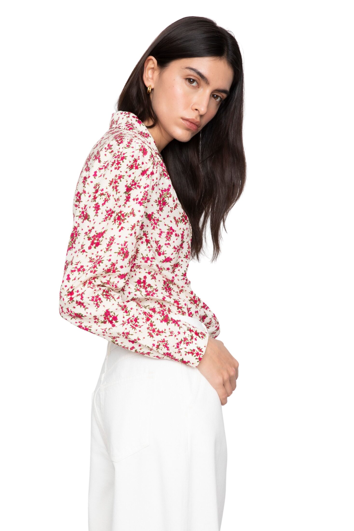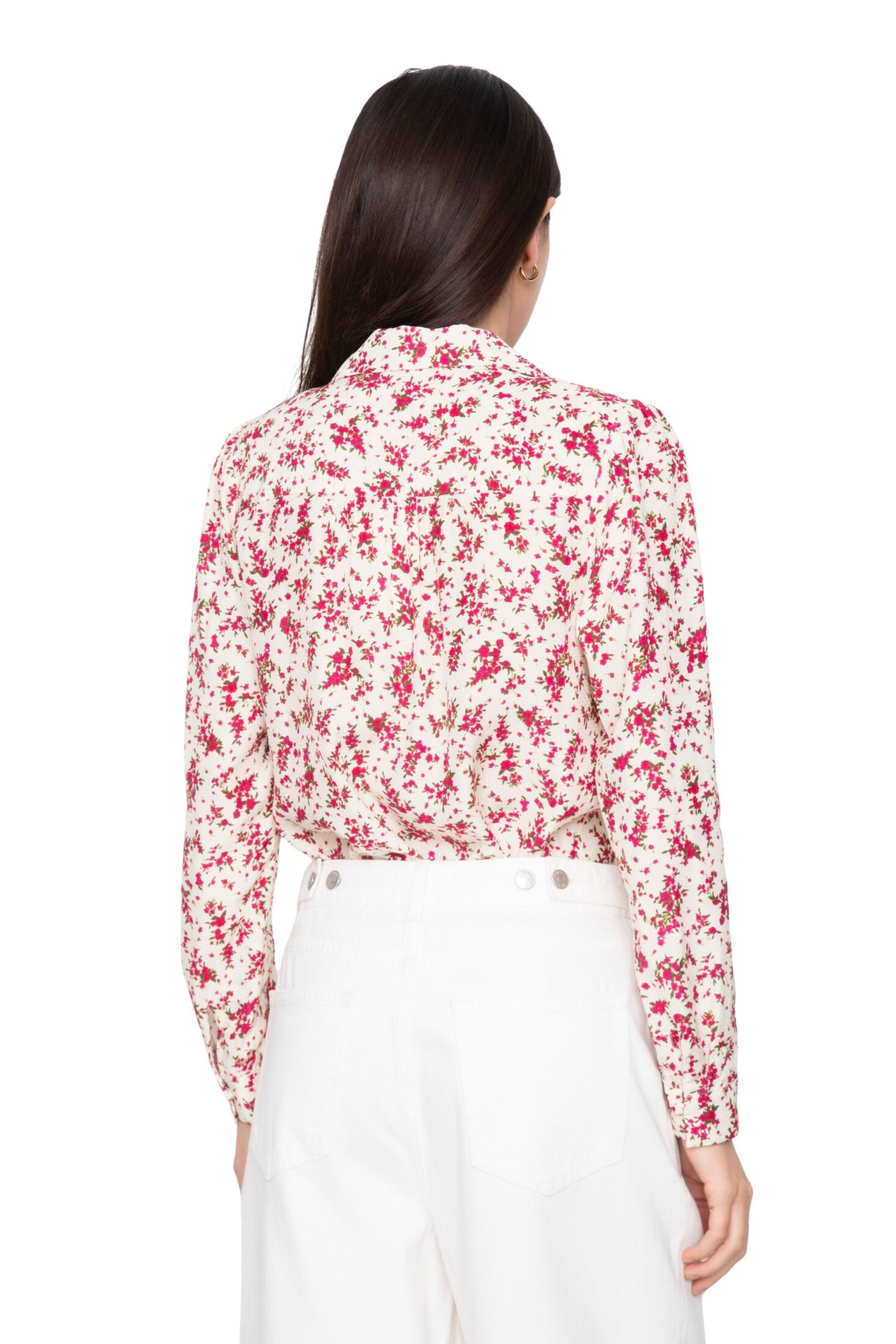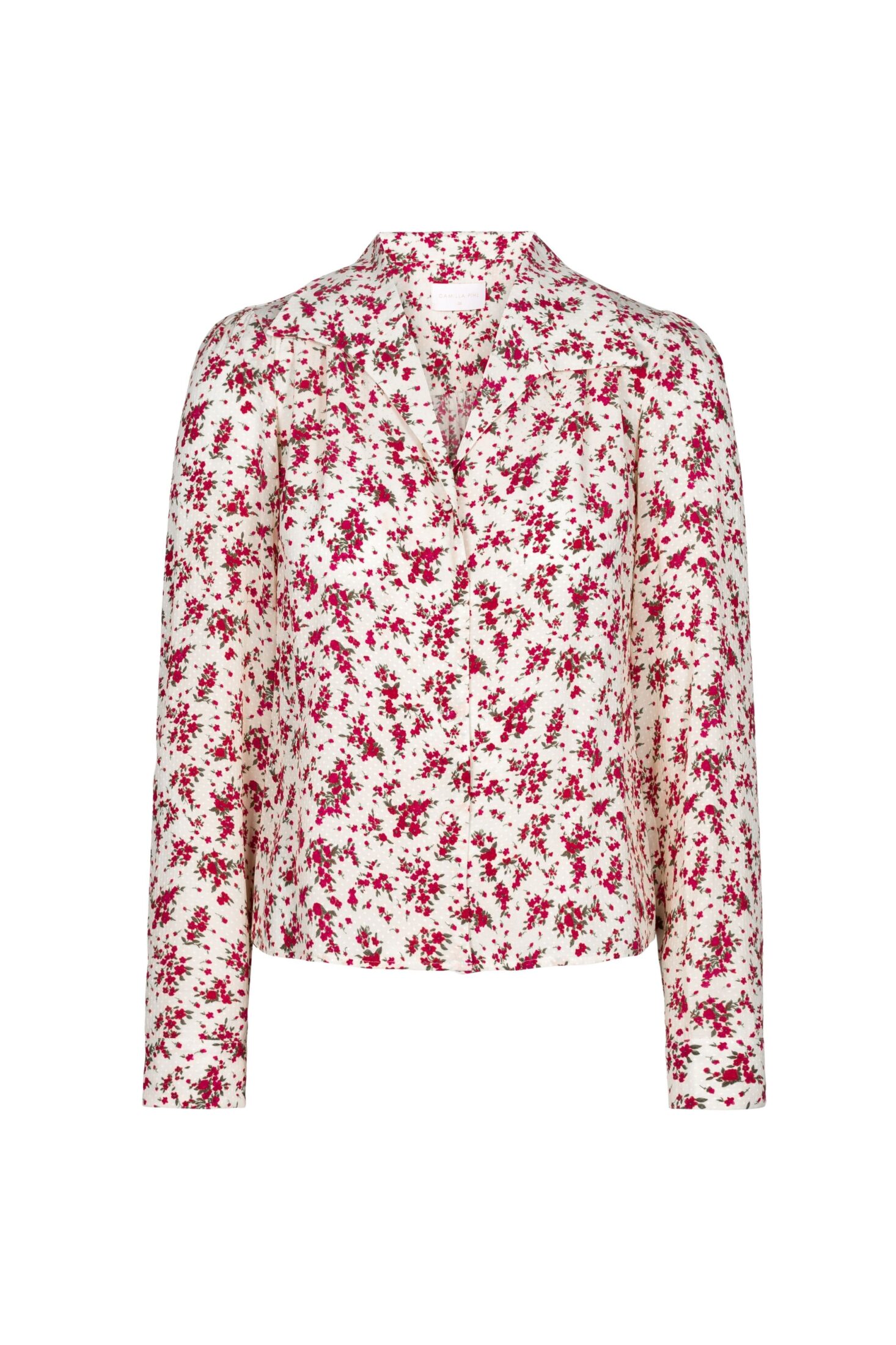 Lu Lu Blouse fra Camilla Pihl. En vintage-inspirert bluse med sesongens blomsterprint. Den har fine leggdetaljer ved skuldrene og lange ermer med diskrete skulderputer som gir en elegant og raffinert silhuett.