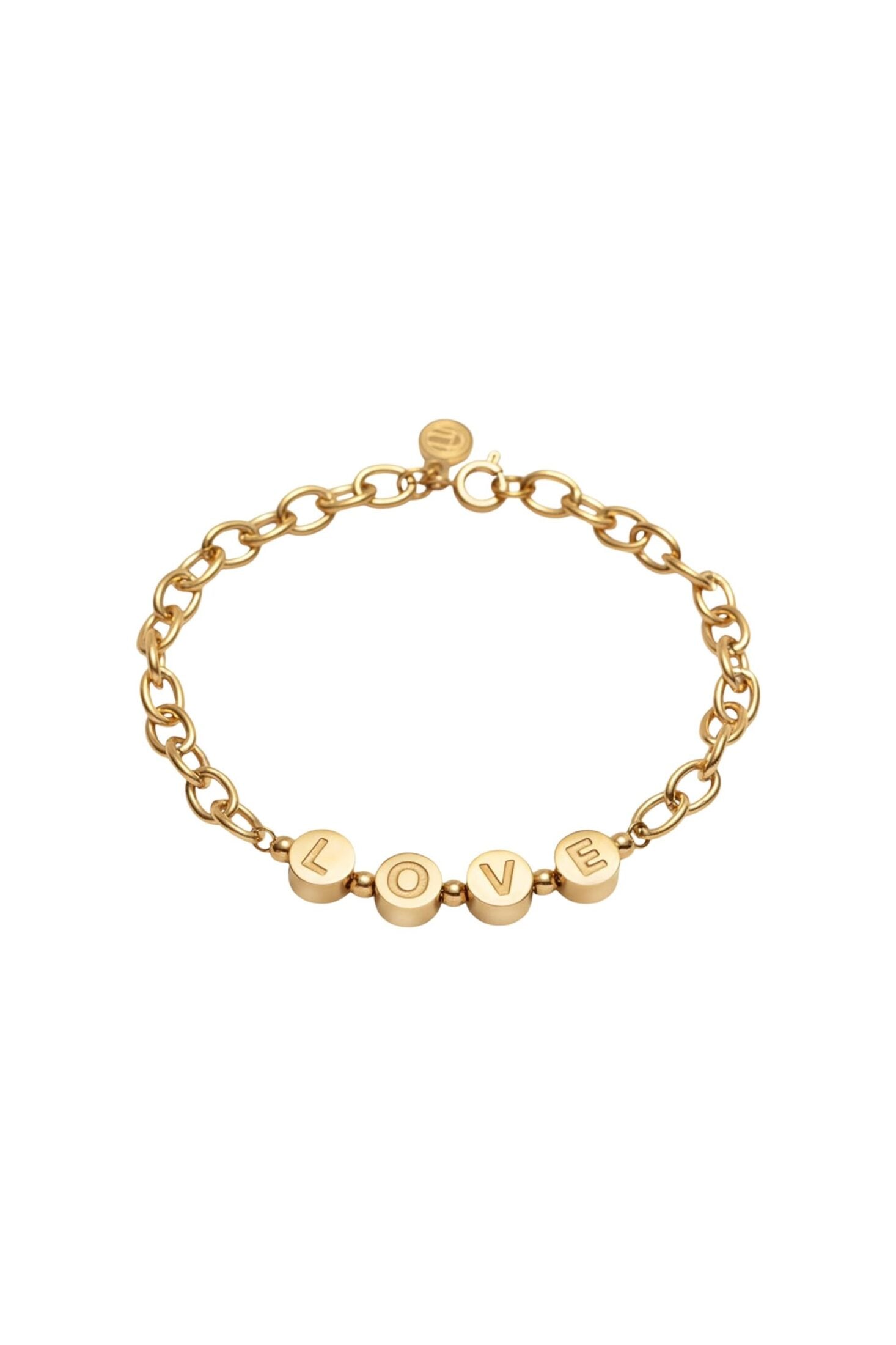Love Bracelet fra Camilla Pihl. Et delikat armbånd med et tidløst design som gir et elegant uttrykk. Laget i rustfritt stål belagt med 14K gull og passer perfekt alene eller sammen med andre smykker. Et fint valg som tilfører antrekket en personlig og feminin detalj.