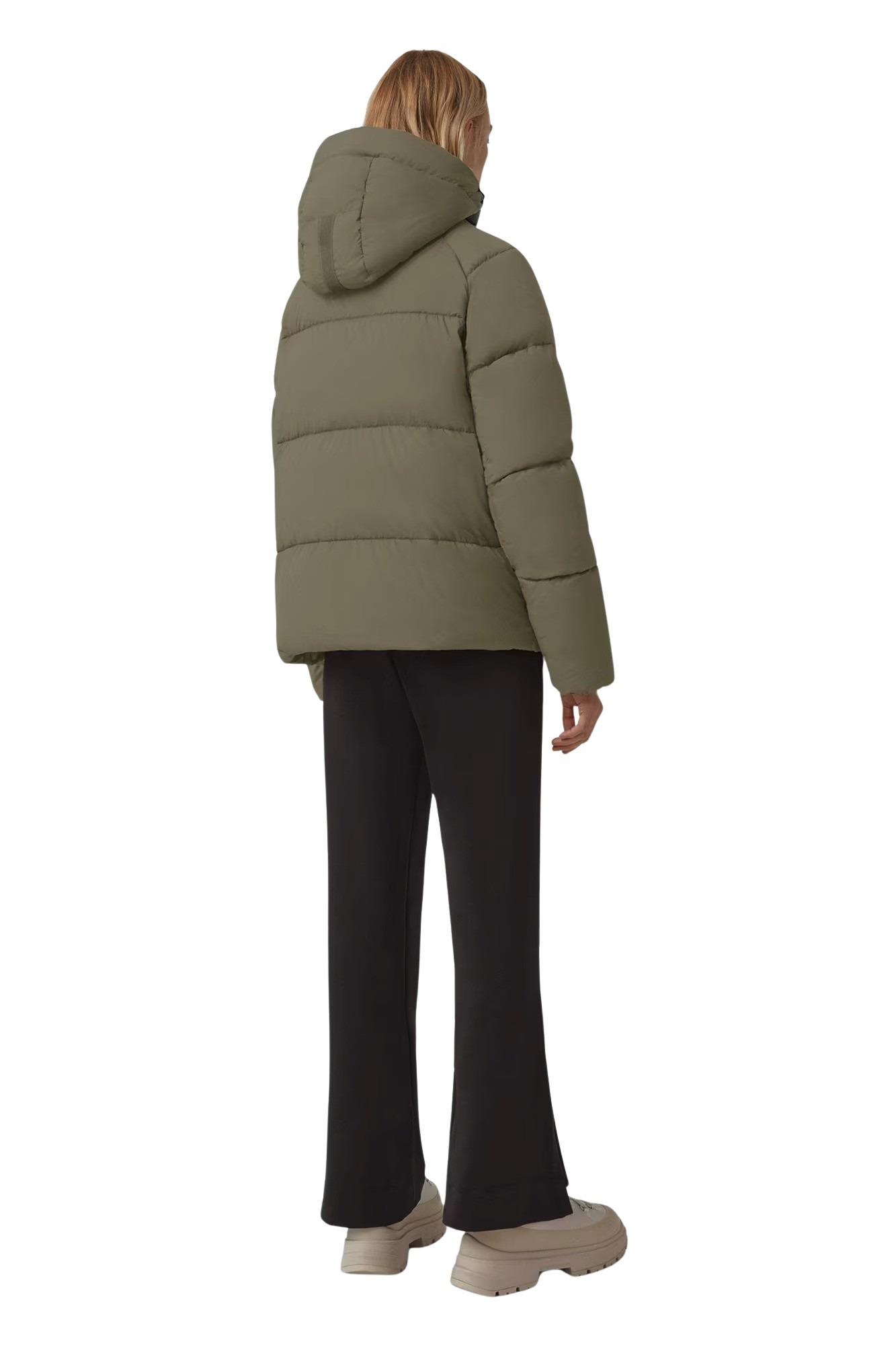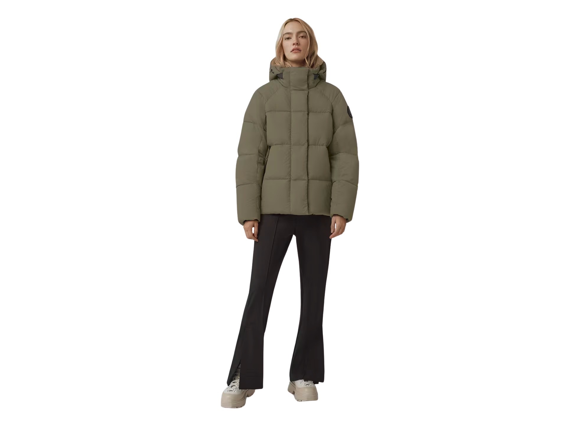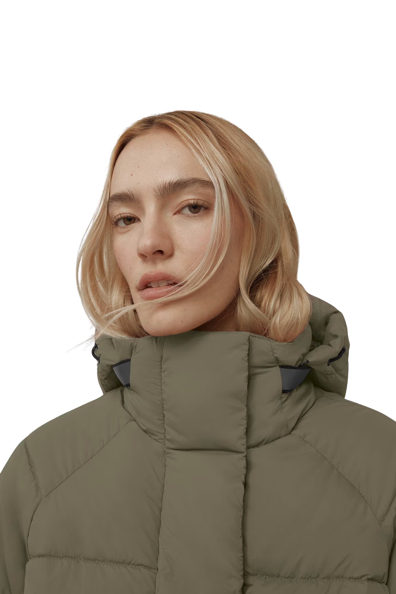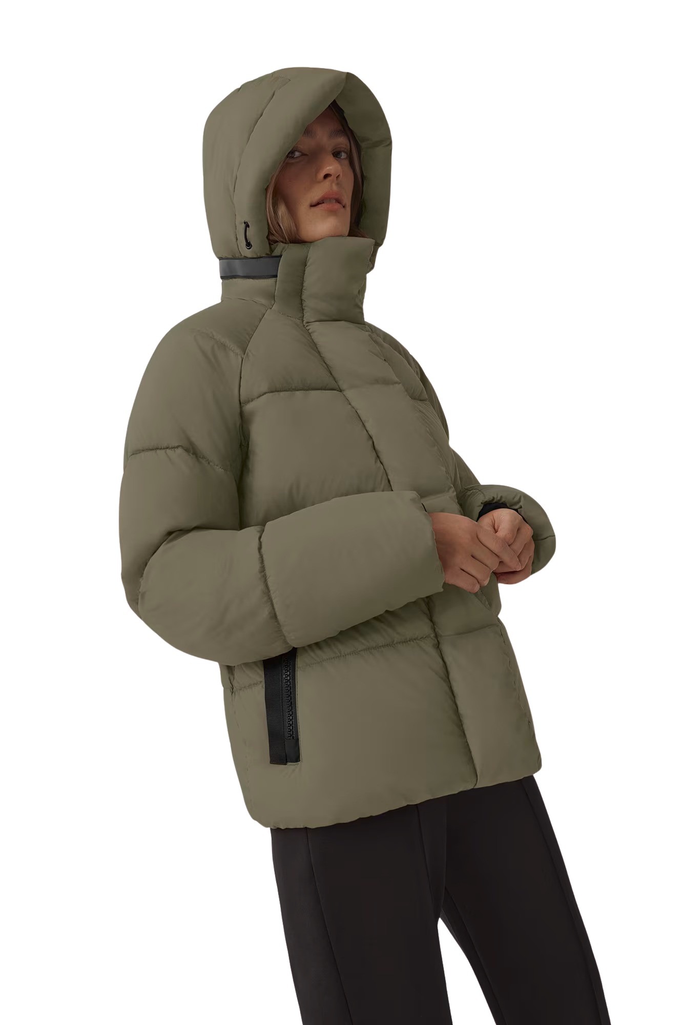 Junction Parka til dame fra Canada Goose er en utrolig lett jakke som varmer godt, med en Thermal Experience Index på 3. Den er laget av det ultramyke EnduraLuxe-materialet med CORDURA®-forsterkning, som gjør den både myk, lett og slitesterk, samt vann- og vindbestandig. Jakken har refleks rundt hetten og kragen, flere praktiske lommer, og en brodert Black Label-logo på venstre skulder.