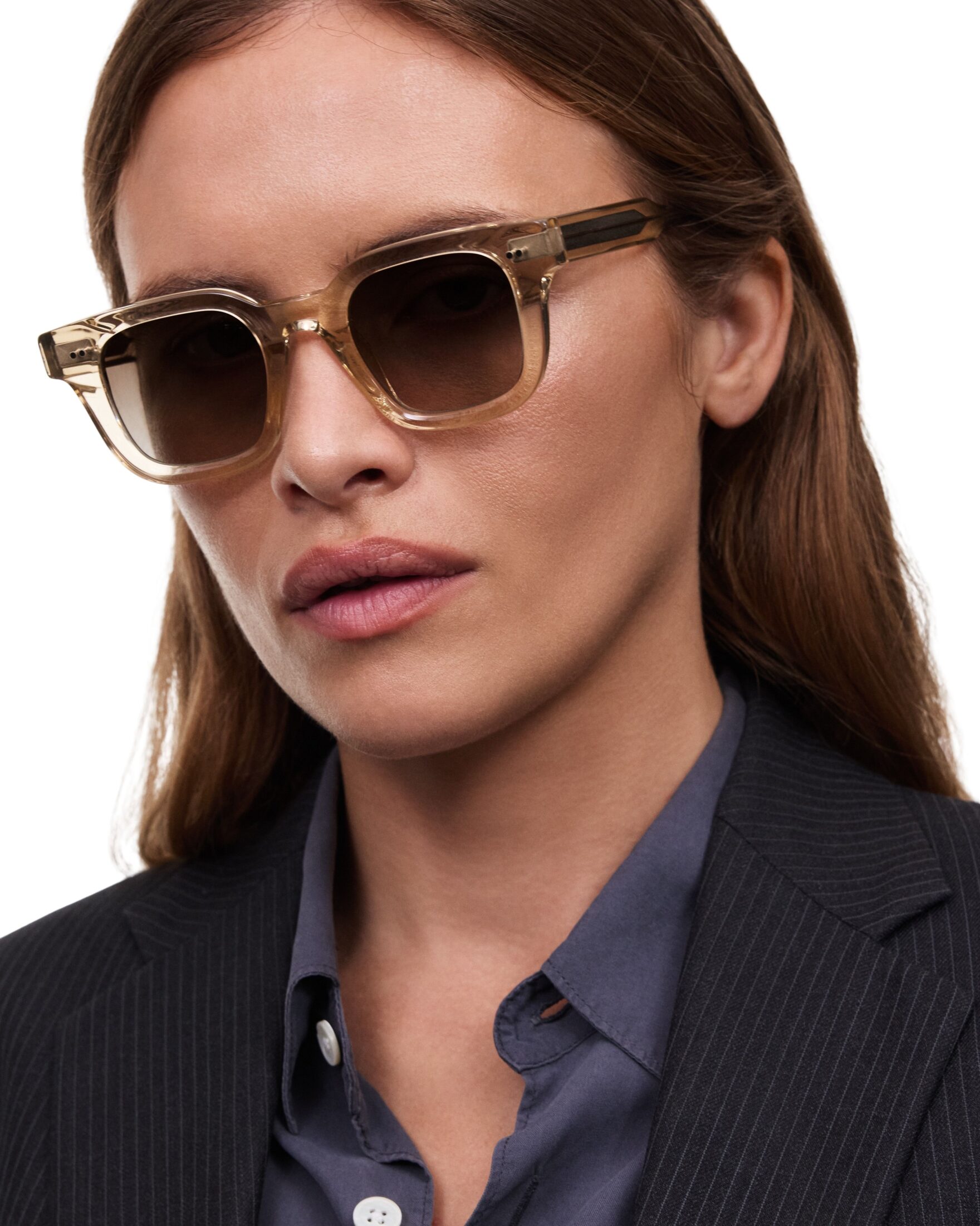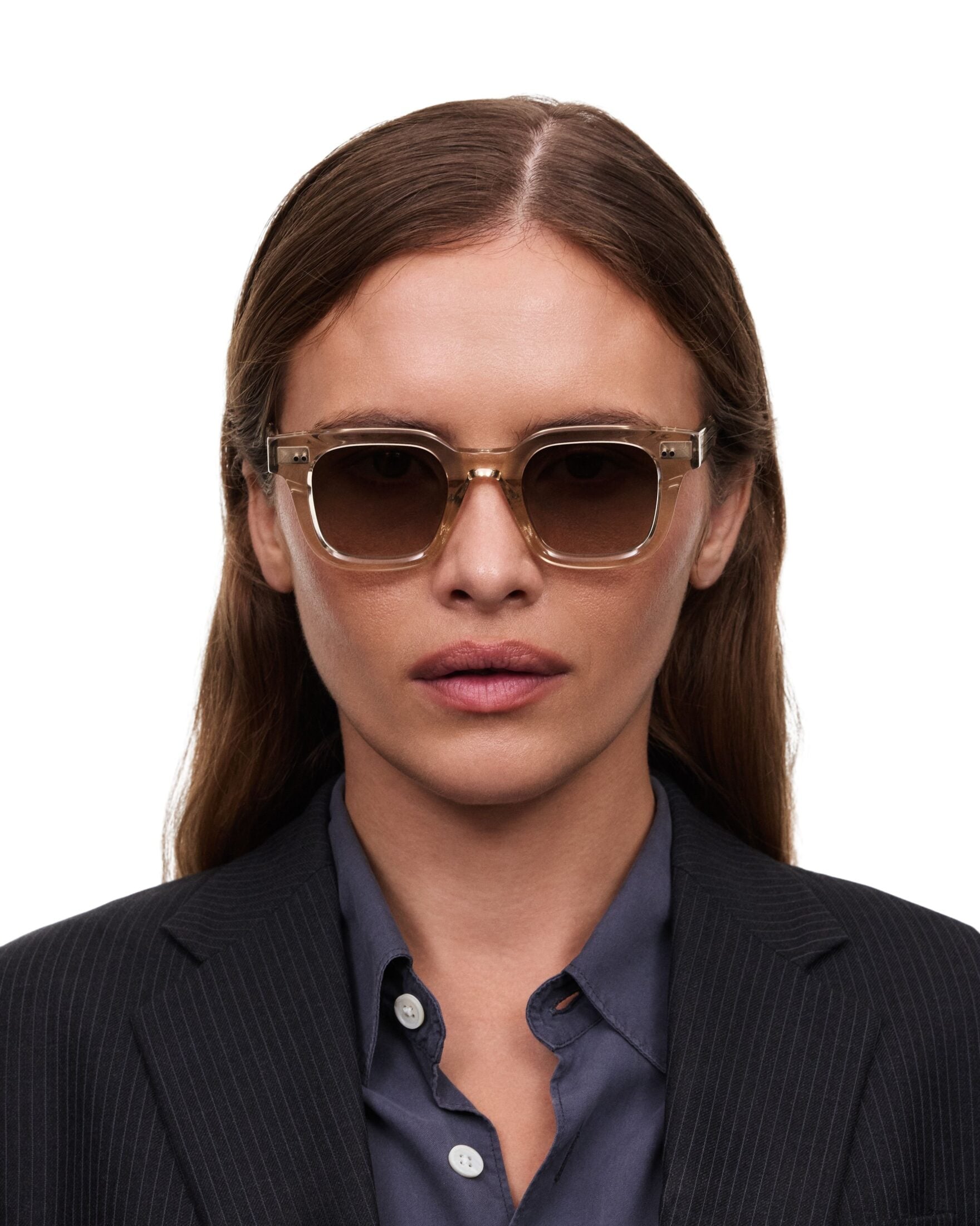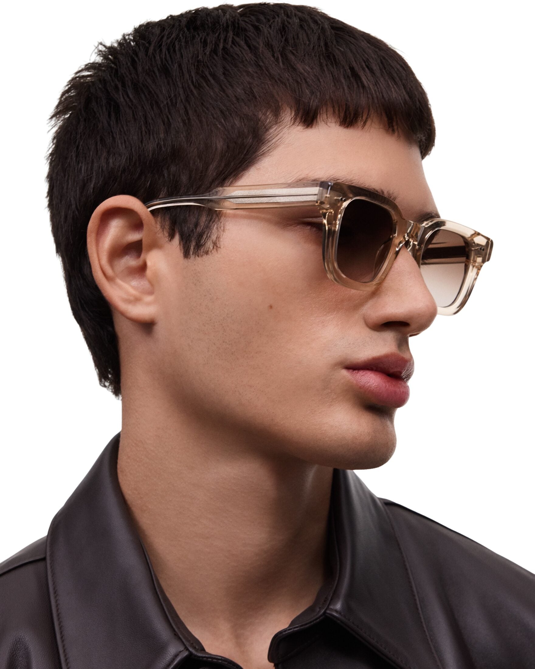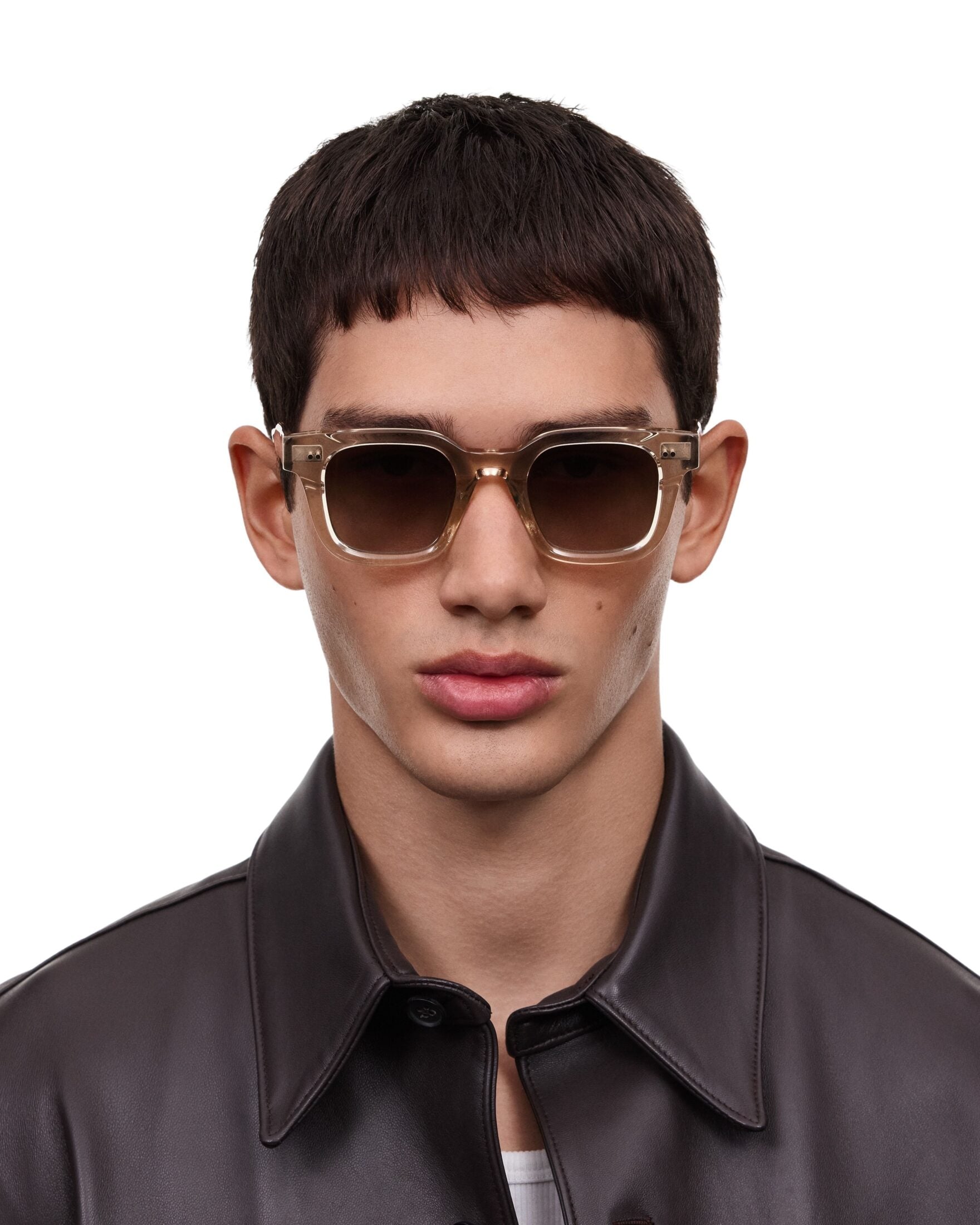 04 fra CHIMI. En moderne solbrille med markert, firkantet fasong som gir et tidløst og selvsikkert uttrykk. Beige innfatning kombinert med tonede glass gjør modellen både stilren og anvendelig til hverdagsbruk.