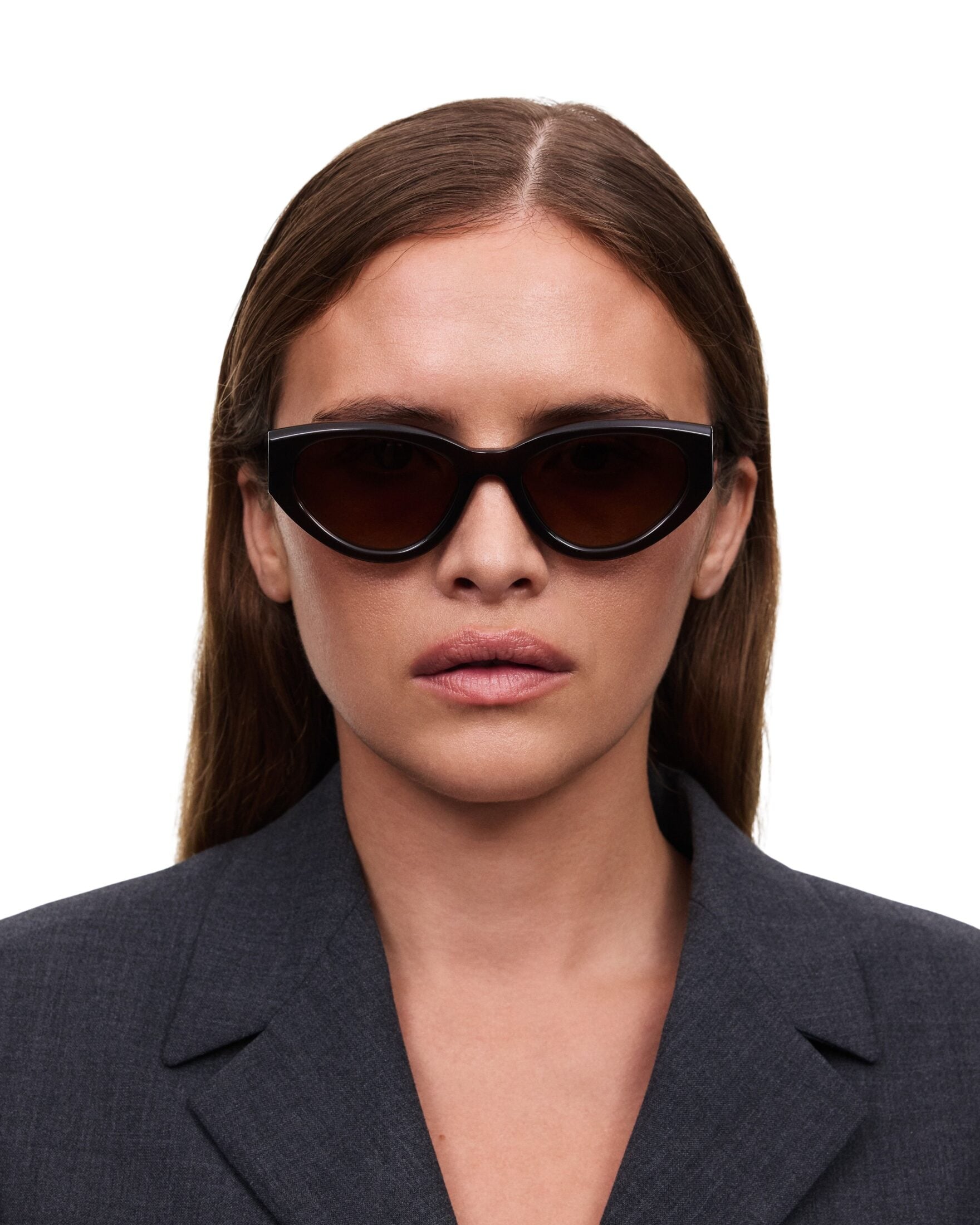 06 fra CHIMI. En myk, cat-eye-inspirert fasong som gir et elegant og feminint uttrykk. Den brune innfatningen kombinert med tonede glass gjør solbrillen perfekt for en moderne og sofistikert stil.