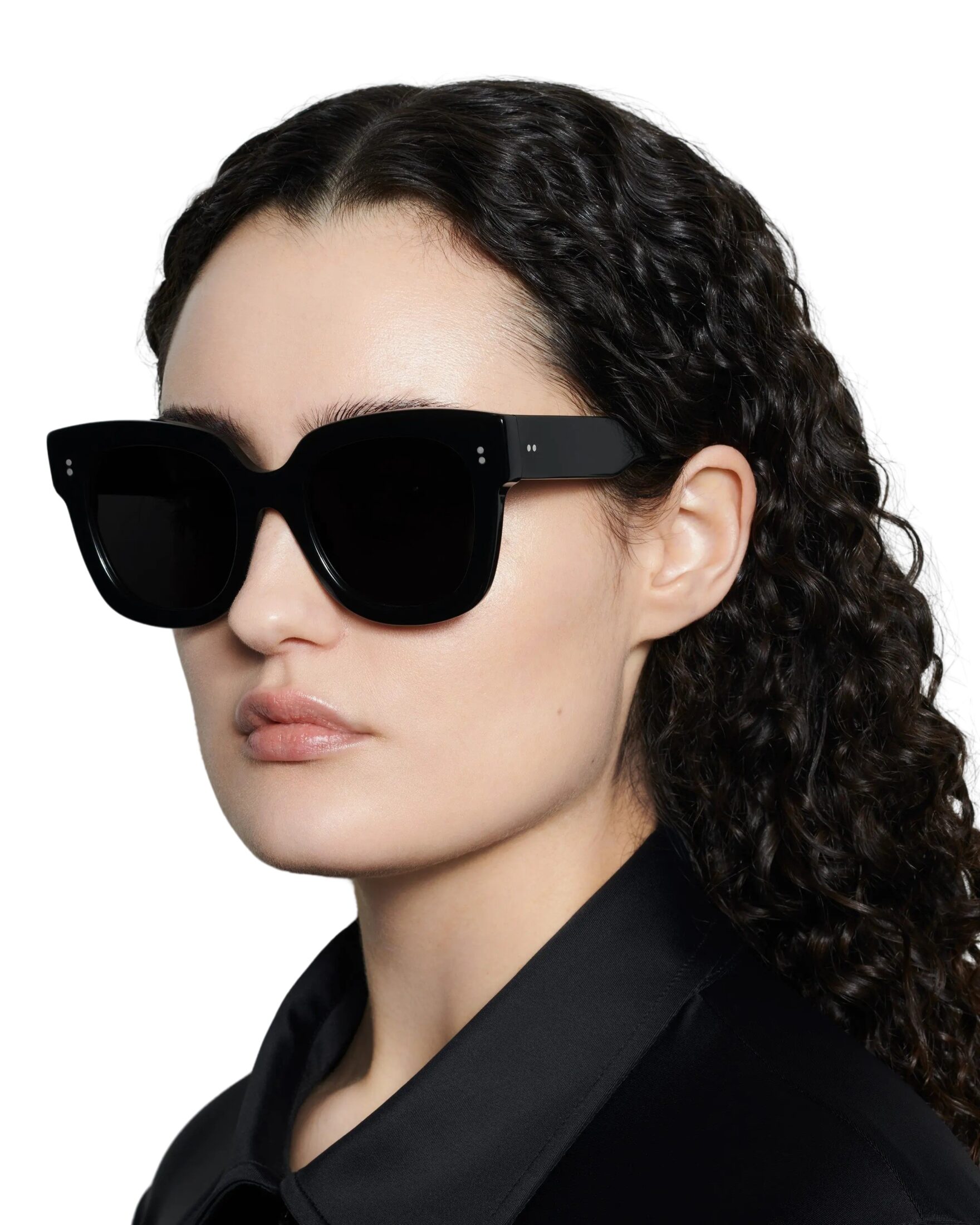 Solbriller fra Chimi med overdimensjonert design. Håndlaget av førsteklasses italiensk acetat med semiflate linser.