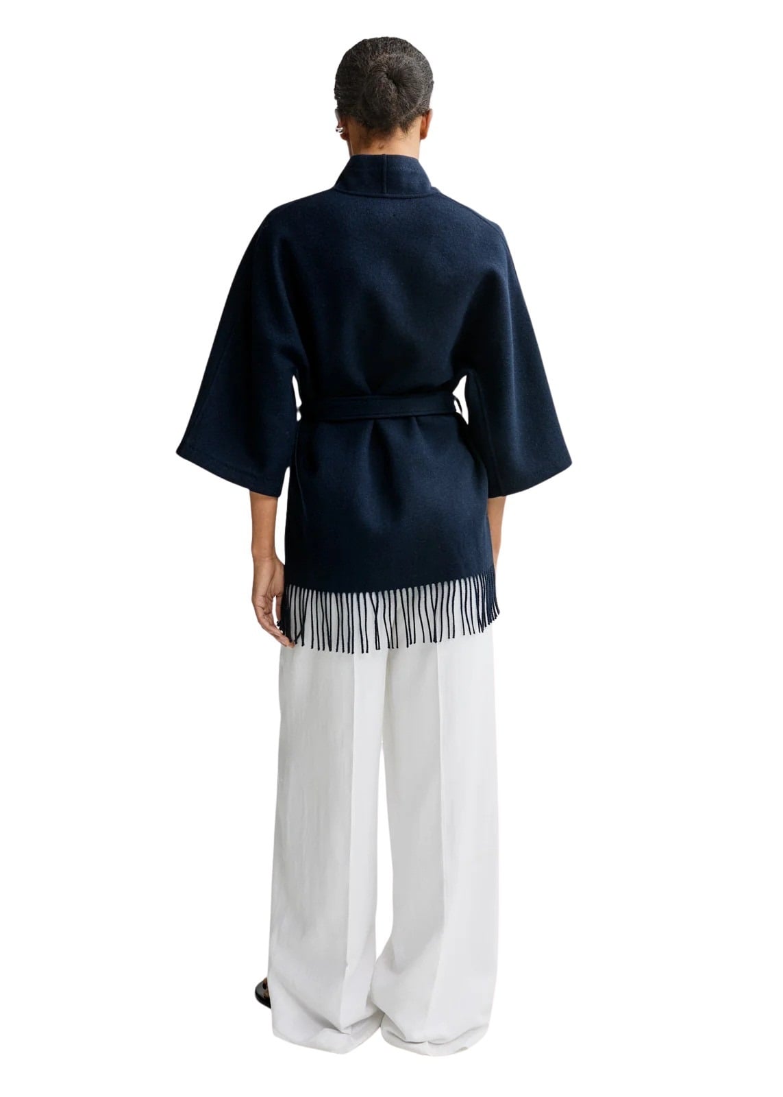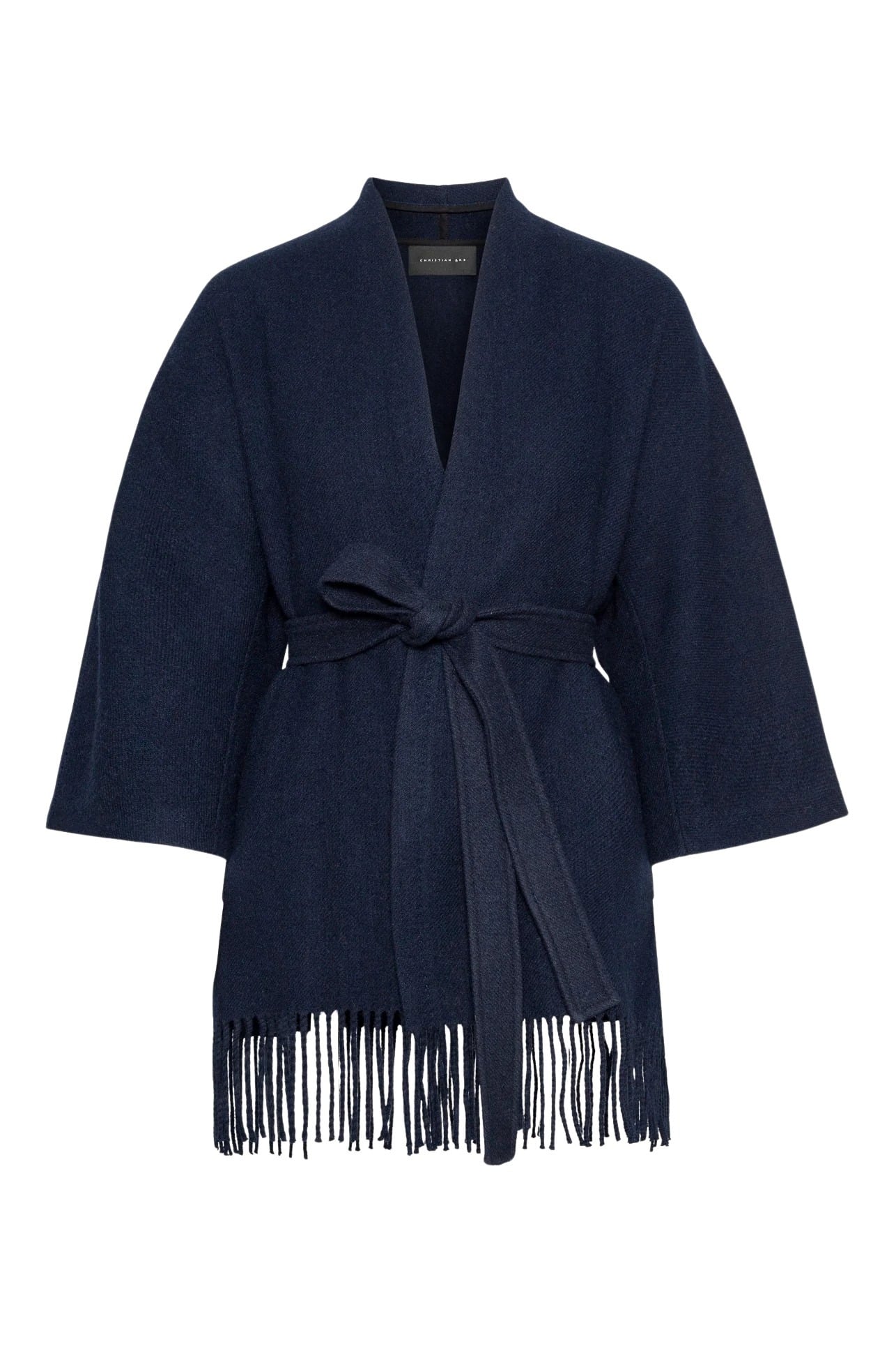 Akila Lambswool Jacket fra Christian Aks. En tidløs jakke i myk lammeull med et rent, elegant uttrykk. Den har belte i samme materiale for en feminin silhuett, praktiske innerlommer i livet og dekorative frynser nederst. Like fin å bruke inne som ute, med gjennomført innside avsluttet med bomullspiping.