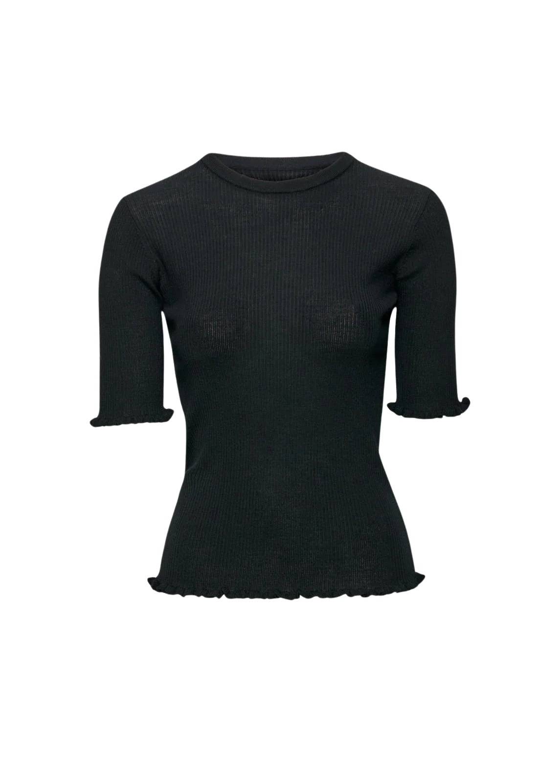 Milla Merino Knit fra Christian Aks. En ribbestrikket topp i myk merinoull med en tettsittende og flatterende passform. Avsluttet med delikate volangkanter nederst og på ermene for et feminint preg. Et komfortabelt og anvendelig plagg som enkelt kan styles opp eller ned.