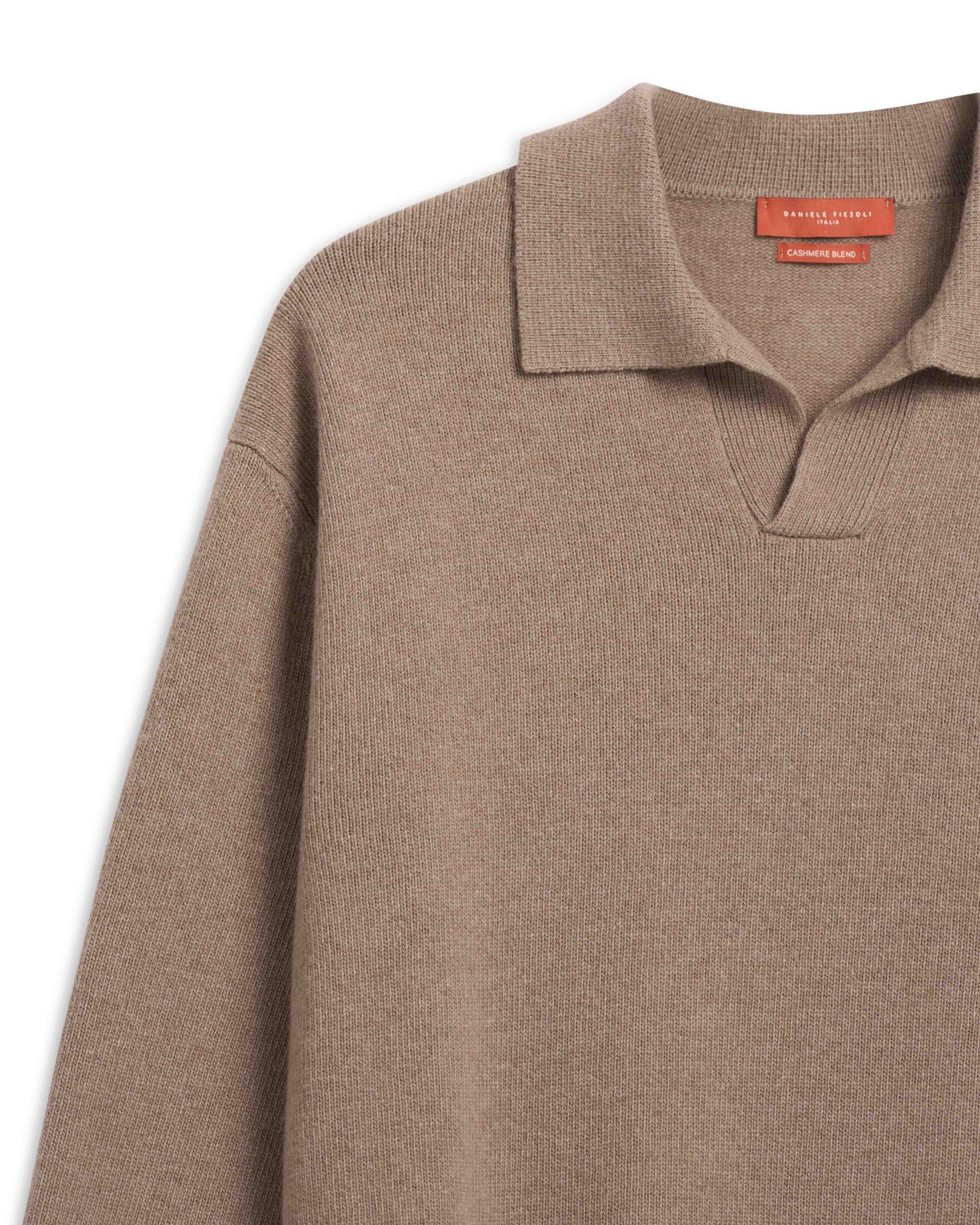 Cashmere Blend Polo Collar Sweater – Beige