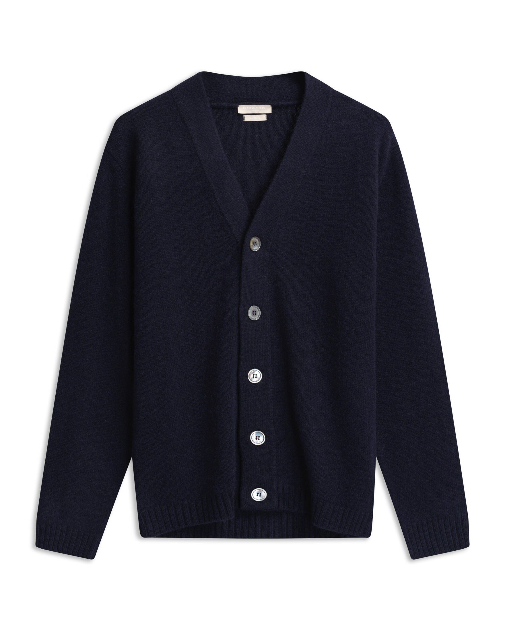 Cardigan til herre fra Daniele Fiesoli. Et tidløst plagg laget i 100% myk kasjmir. Klassisk silhuett med V-hals, ribbestrikkede kanter og elegante knapper i front. Den lette og varme kvaliteten gir en eksklusiv følelse og høy komfort, enten du bruker den over en skjorte på kontoret eller til en T-skjorte for et mer avslappet uttrykk.