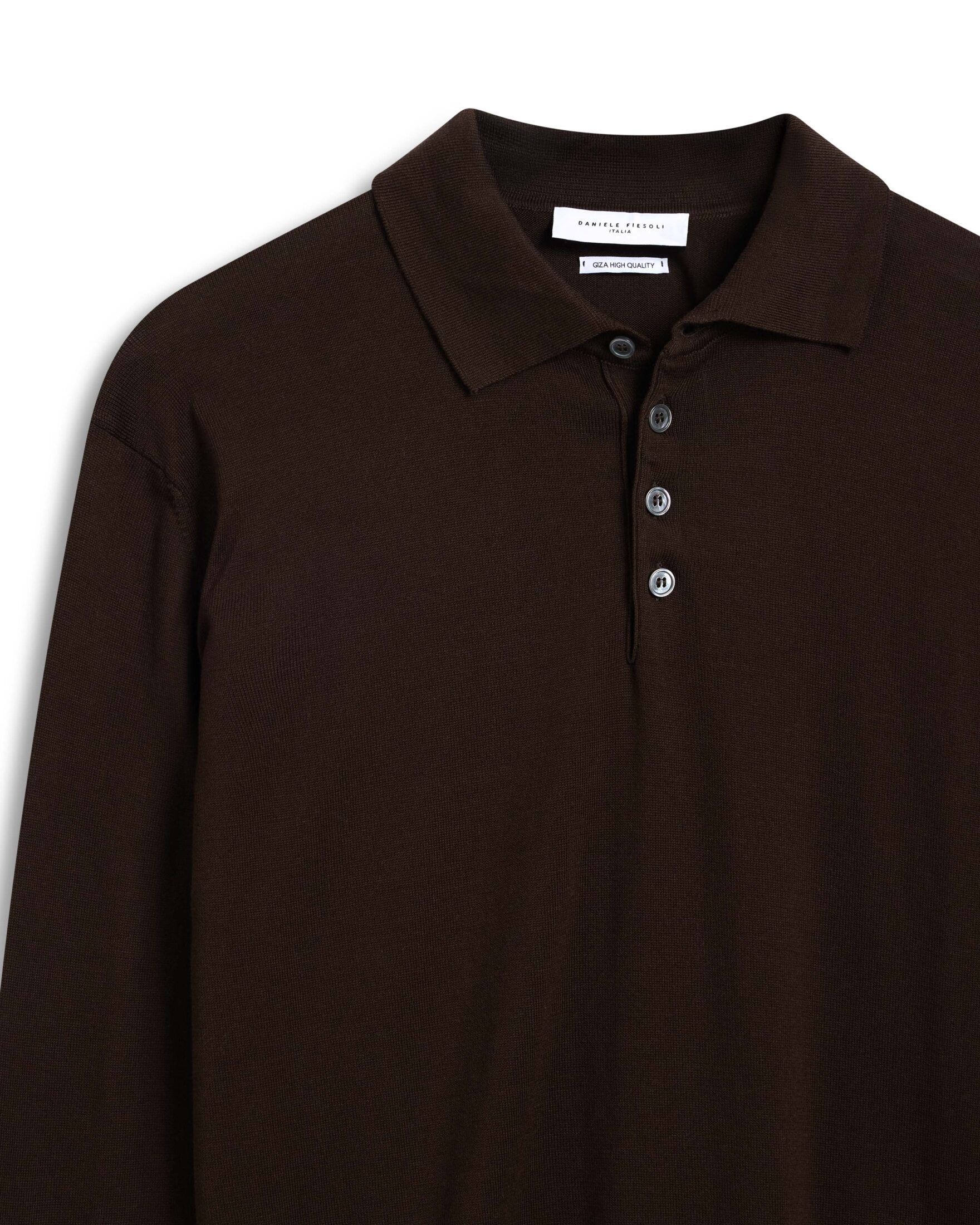 Pologenser til herre fra Daniele Fiesoli. Klassisk og stilren pologenser, strikket i myk og komfortabel bomull. Modellen har krage med knappestolpe og ribbestrikkede avslutninger som gir et tidløst og velkledd uttrykk. Perfekt alene eller under en blazer for en sofistikert, men avslappet stil.