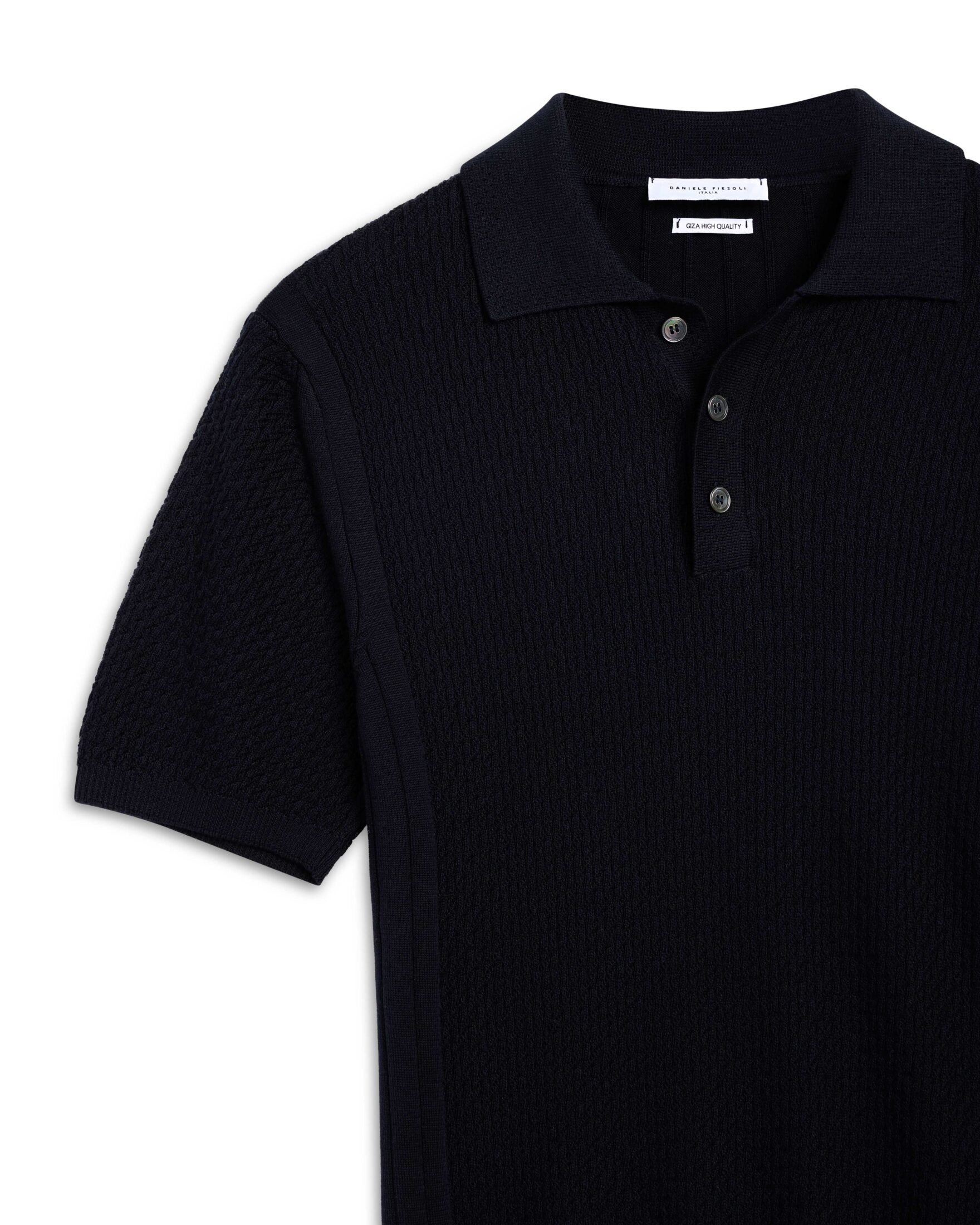 Eksklusiv poloskjorte til herre fra Daniele Fiesoli. Strikket i myk og pustende bomull. Den strukturstrikkede fronten gir dybde og karakter, mens krage og knappestolpe holder uttrykket klassisk. Et sofistikert valg til sommergarderoben. Perfekt til både chinos og lette dressbukser.