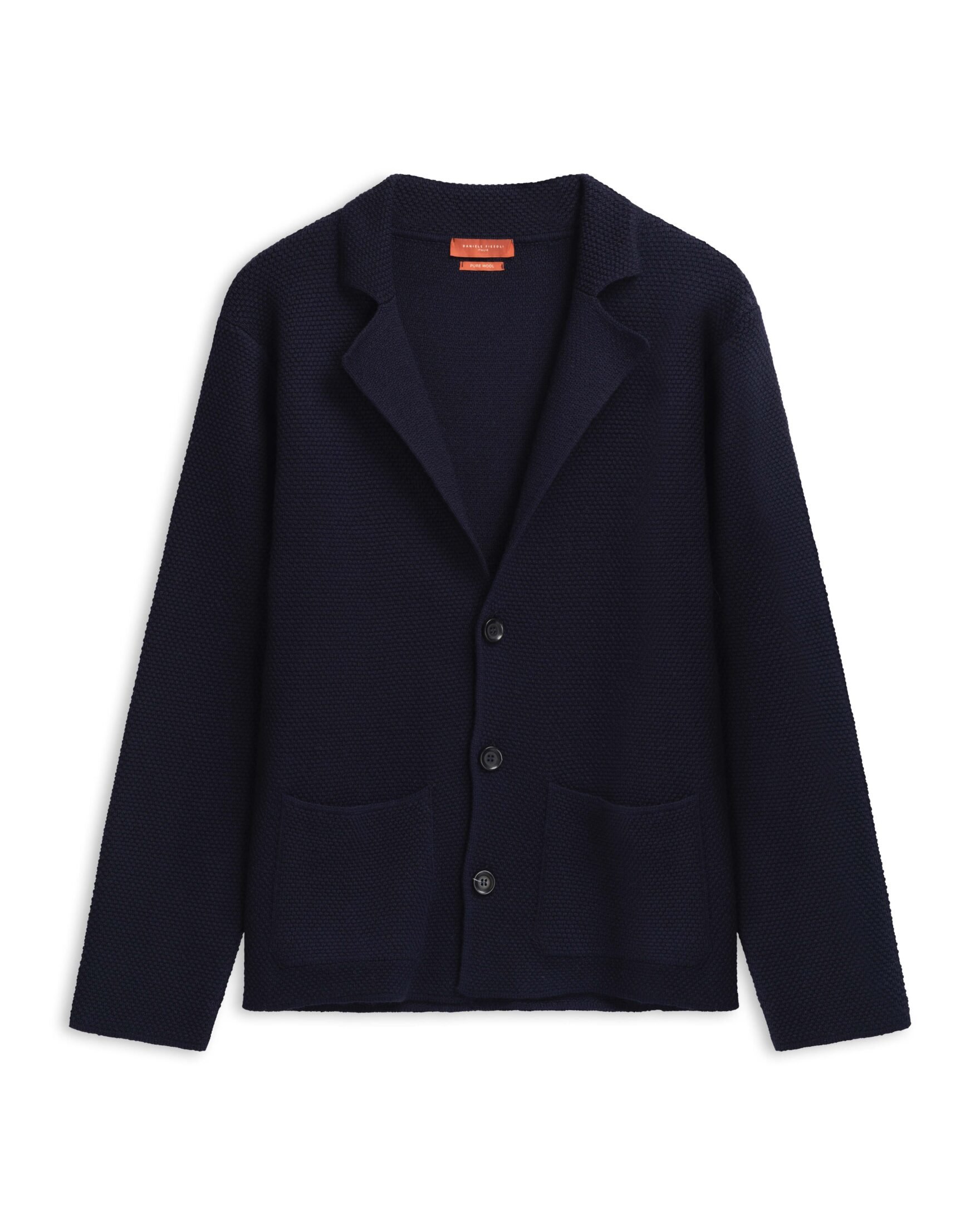 Elegant strikkejakke til herre fra Daniele Fiesoli laget i 100% ny ull. Jakken kombinerer komforten til en cardigan med stilen til en blazer. Den har en strukturert strikk, klassisk jakkeslag og to frontlommer som gir et avslappet, men sofistikert uttrykk. Et perfekt alternativ til den tradisjonelle dressjakken – like fin over en skjorte på kontoret som over en T-skjorte for en smart-casual stil.