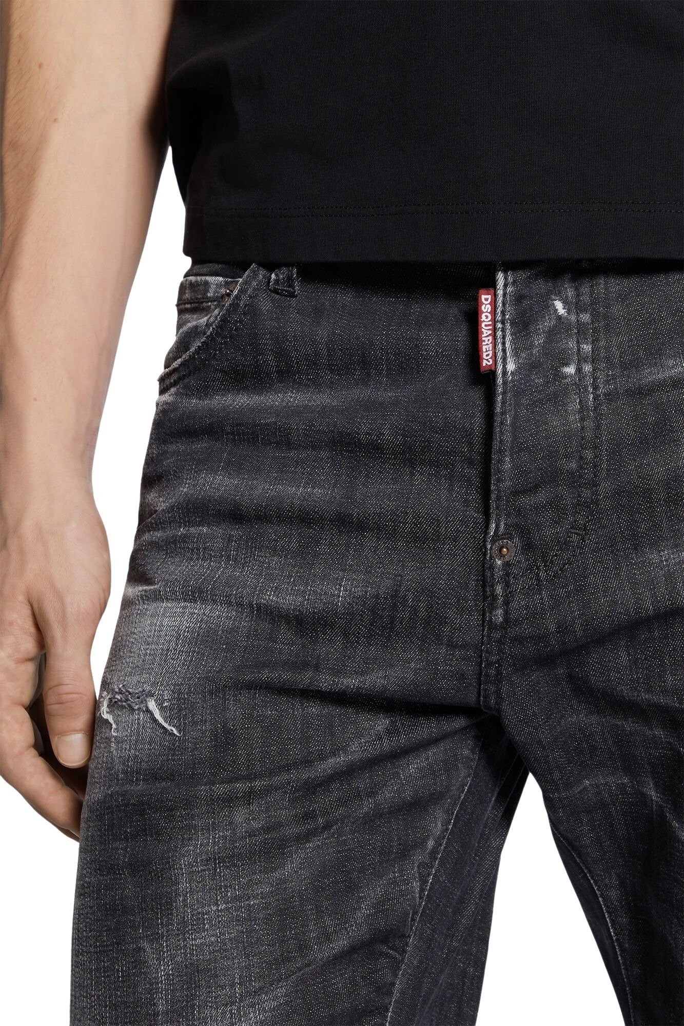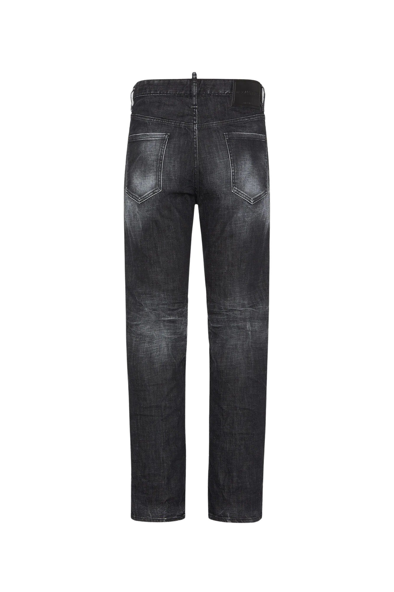 Jeans til herre fra Dsquared2. Laget i behagelig stretch-denim med mørk sort vask og rett passform. Jeansen har slitte detaljer og den ikoniske røde Dsquared2-etiketten foran og en logopatch bak fullfører designet. Perfekt for en avslappet, stilfull look.