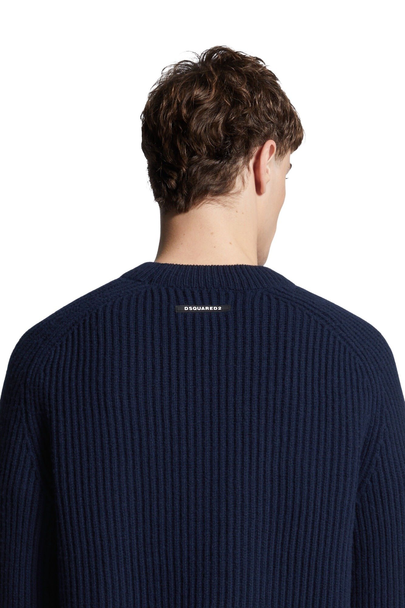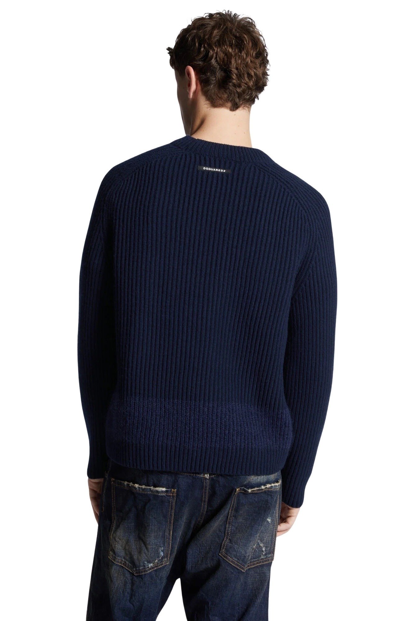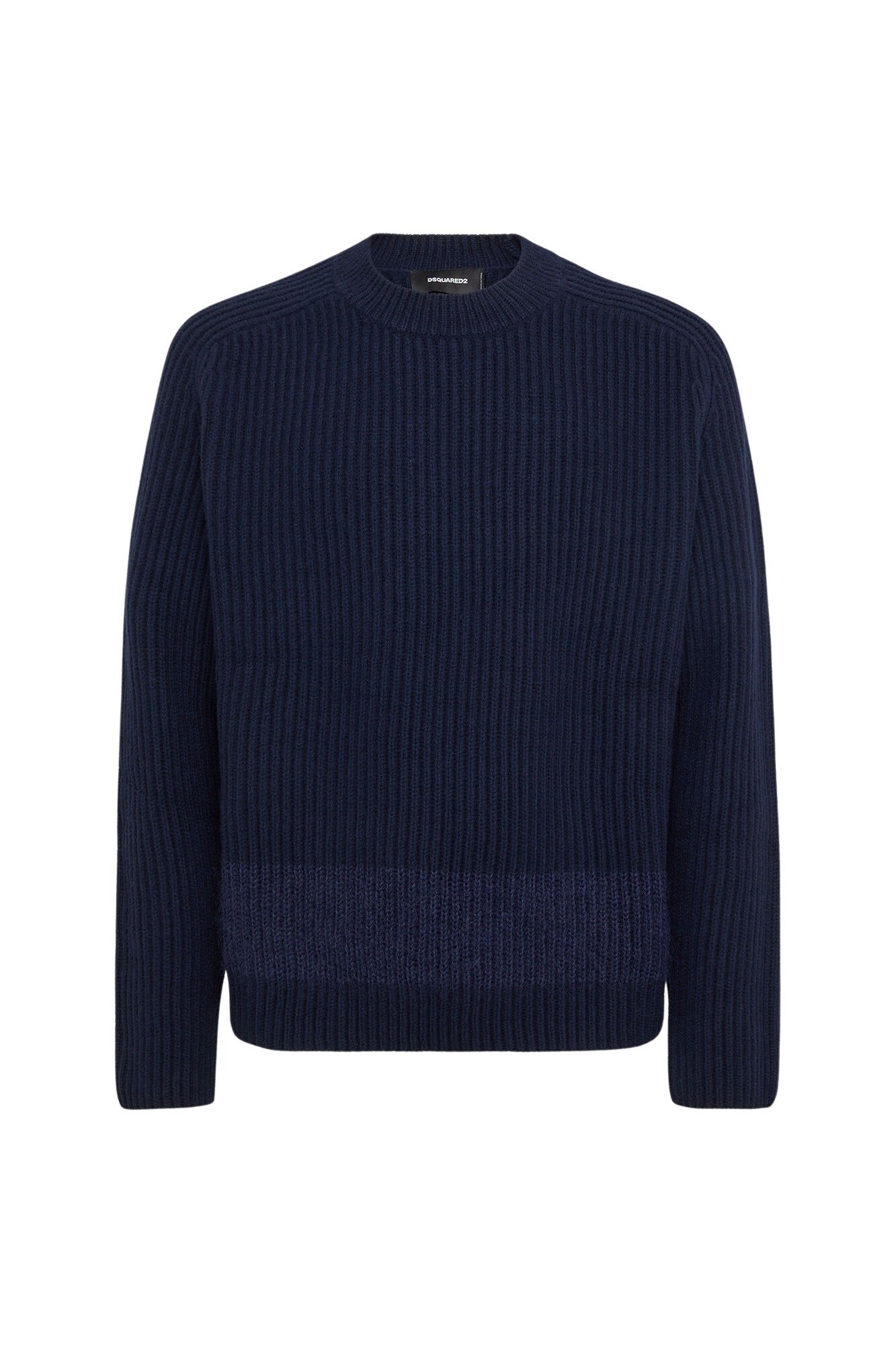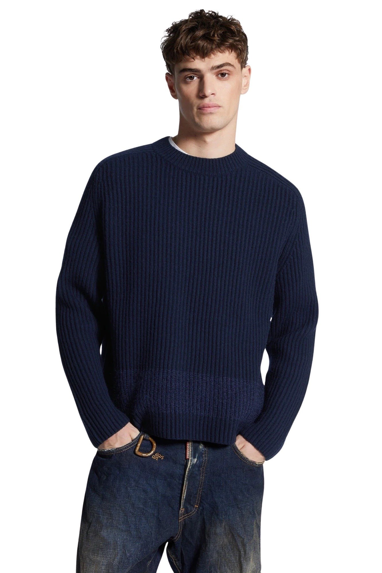 Genser til herre fra Dsquared2. Laget i en behagelig ullblanding med ribbestrikket tekstur. Klassisk genser med rund hals og kontraststripe i melange for en iøynefallende detalj.