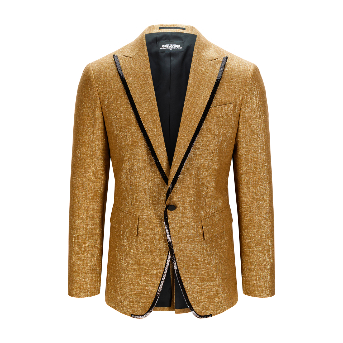 Pen gullfarget blazer i ullblanding fra Dsquared. Blazeren har en smalnet passform og kommer med en knapp i front, klafflommer og peaked lapels for en klassisk look.